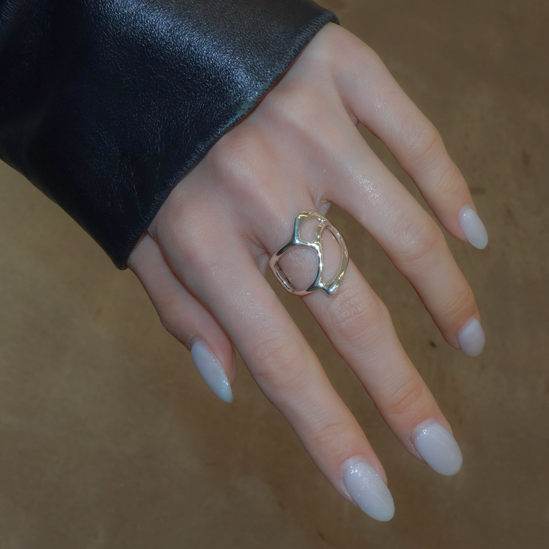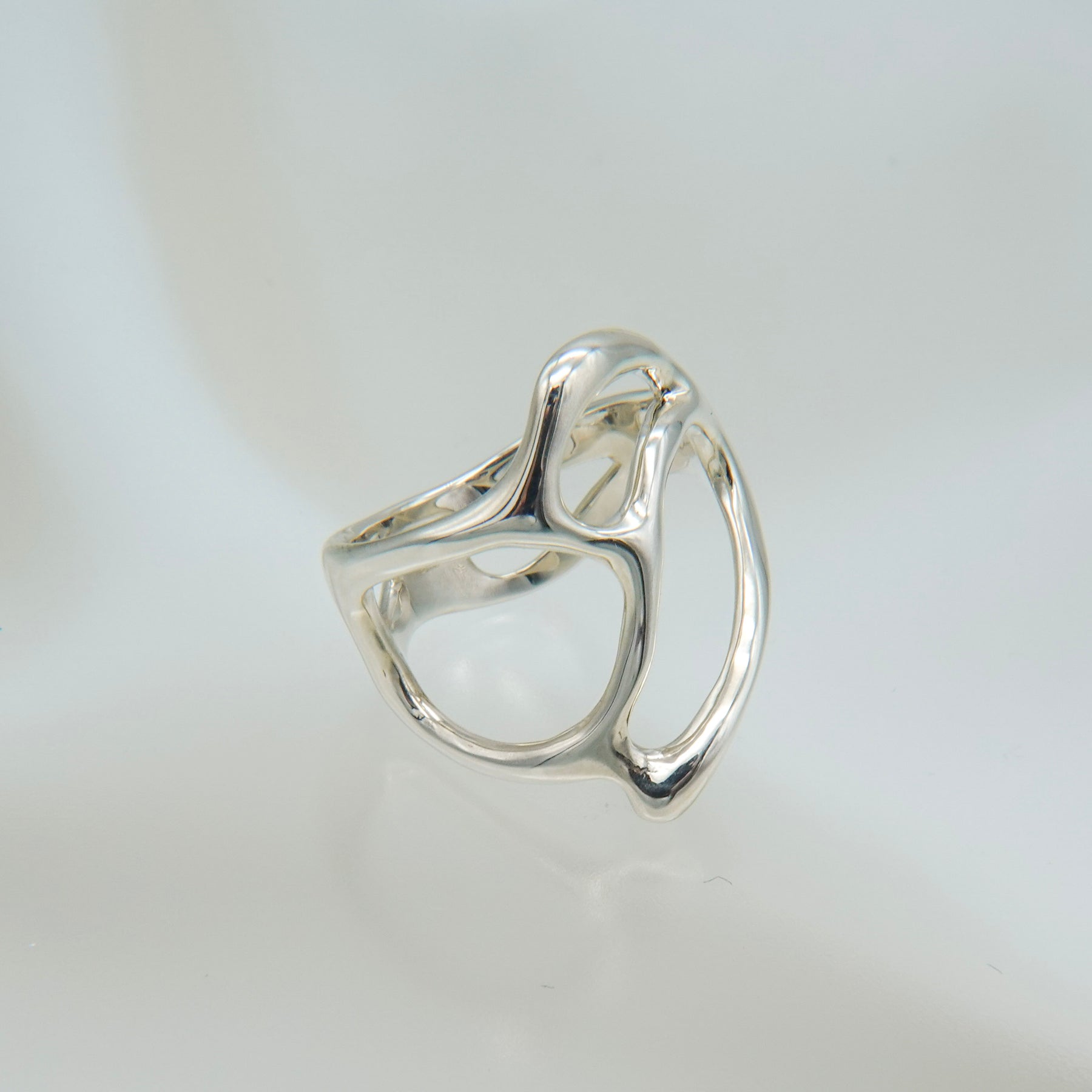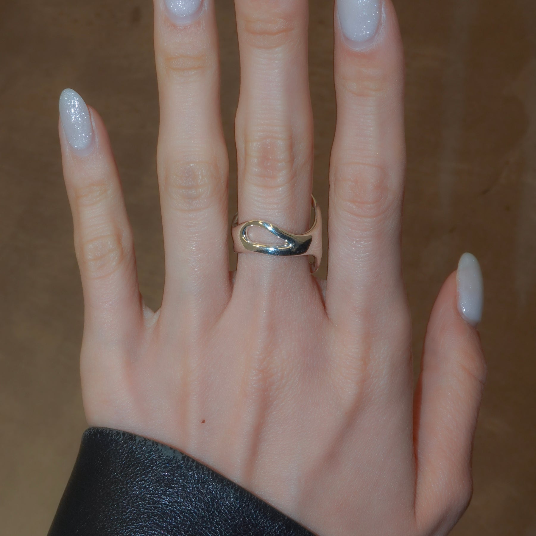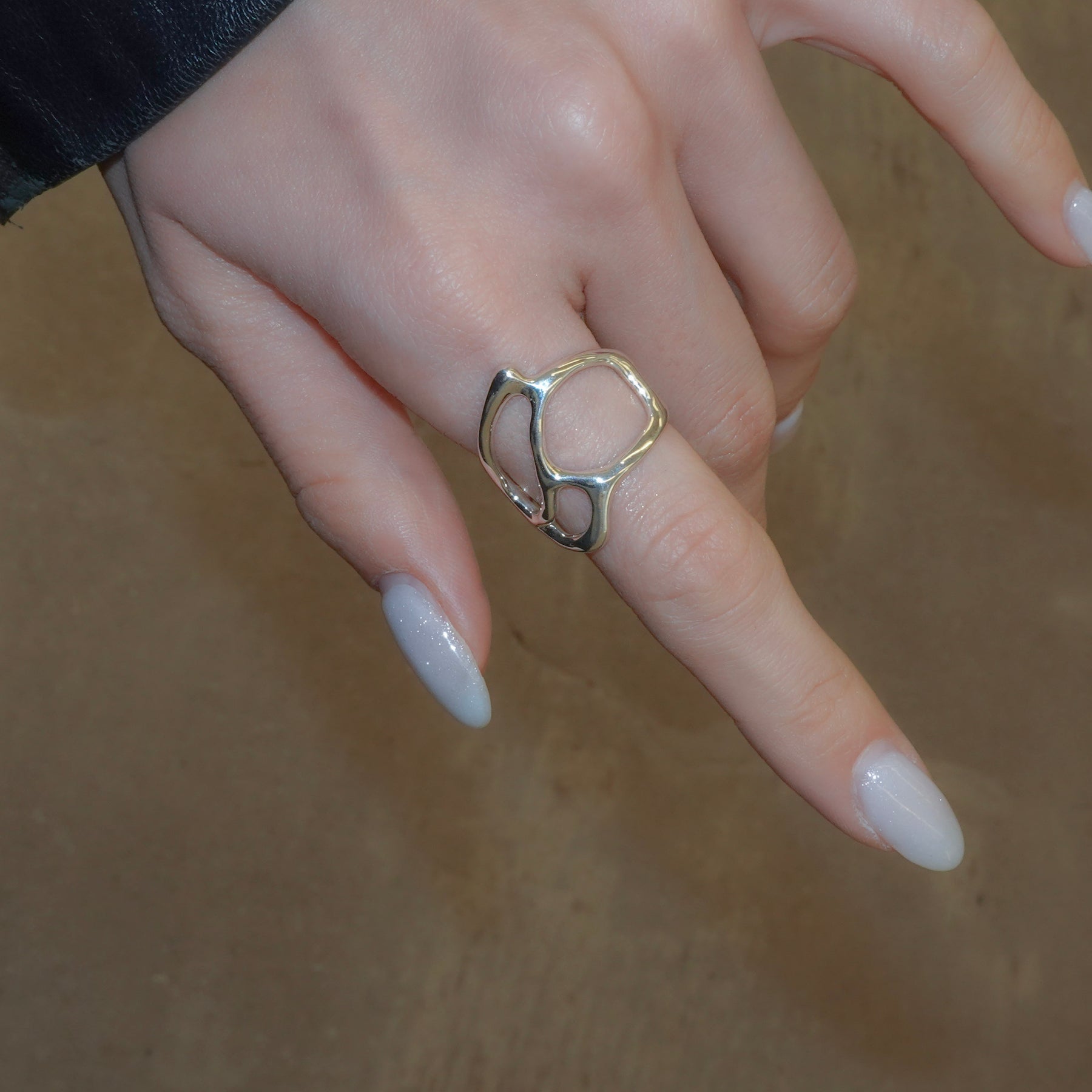輪郭のみを描くようなオープンフォルムが印象的な、立体的なボリュームを持つリングです。