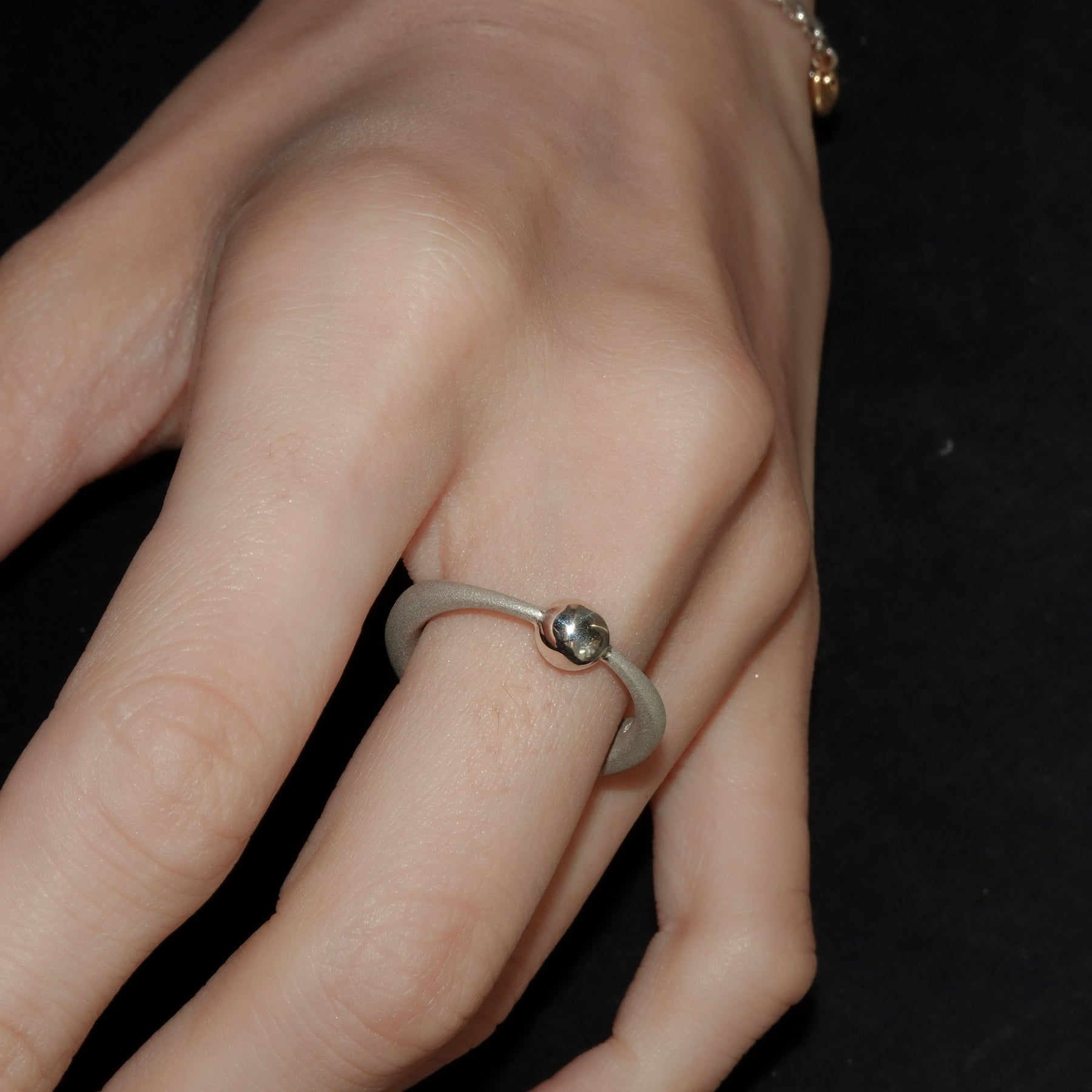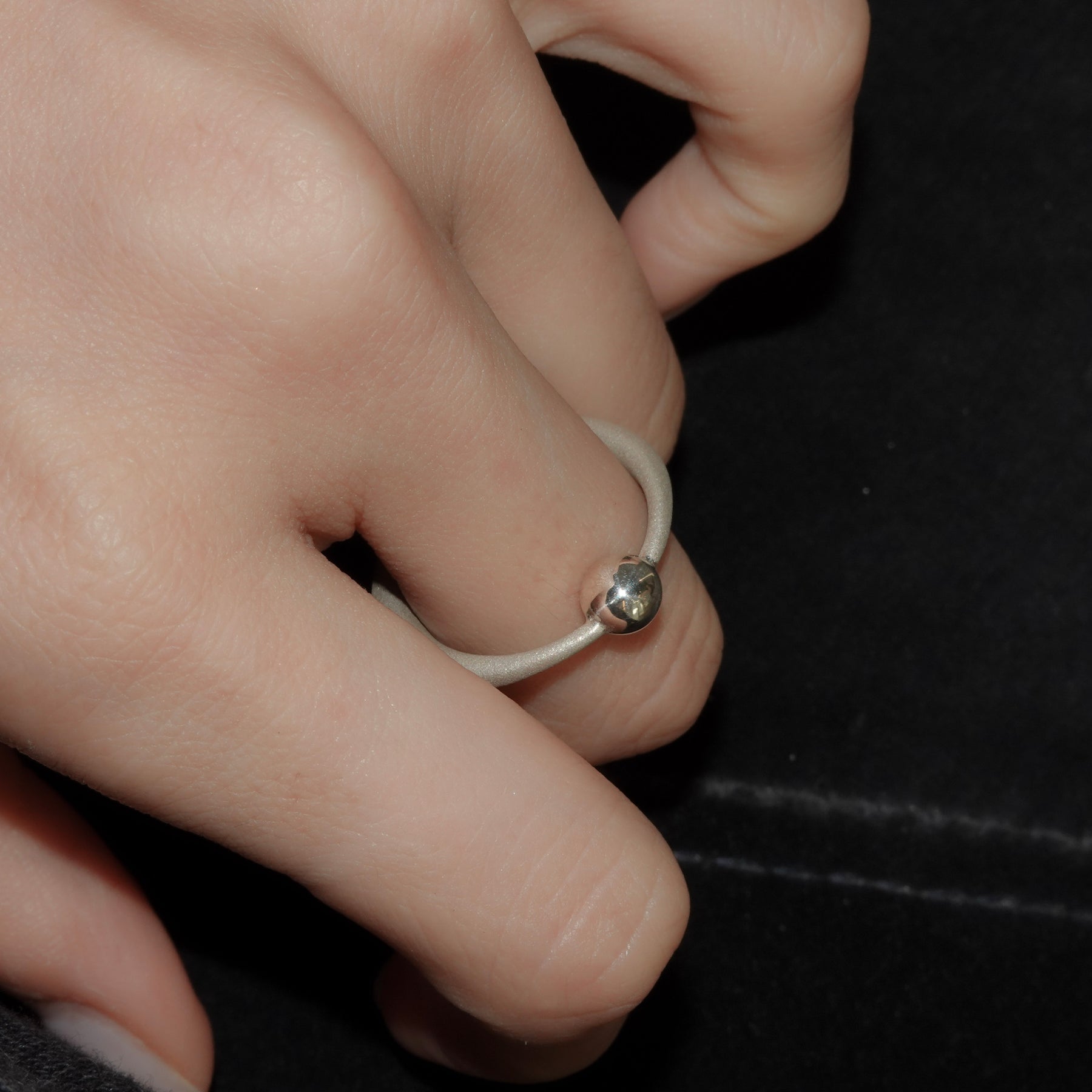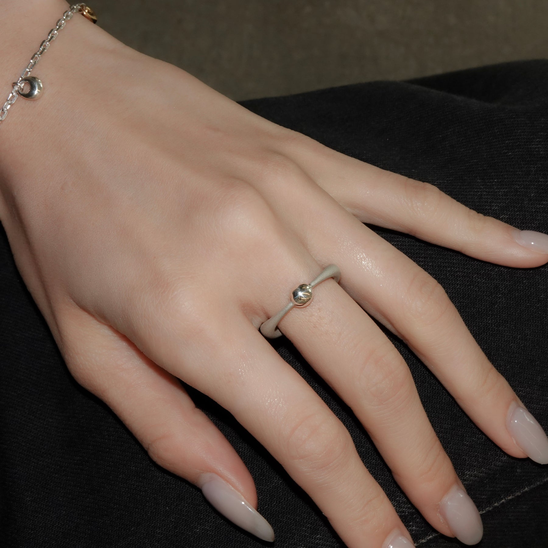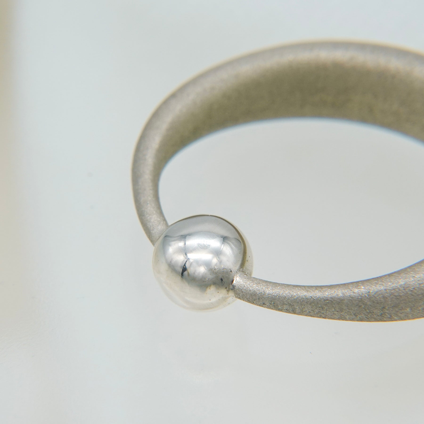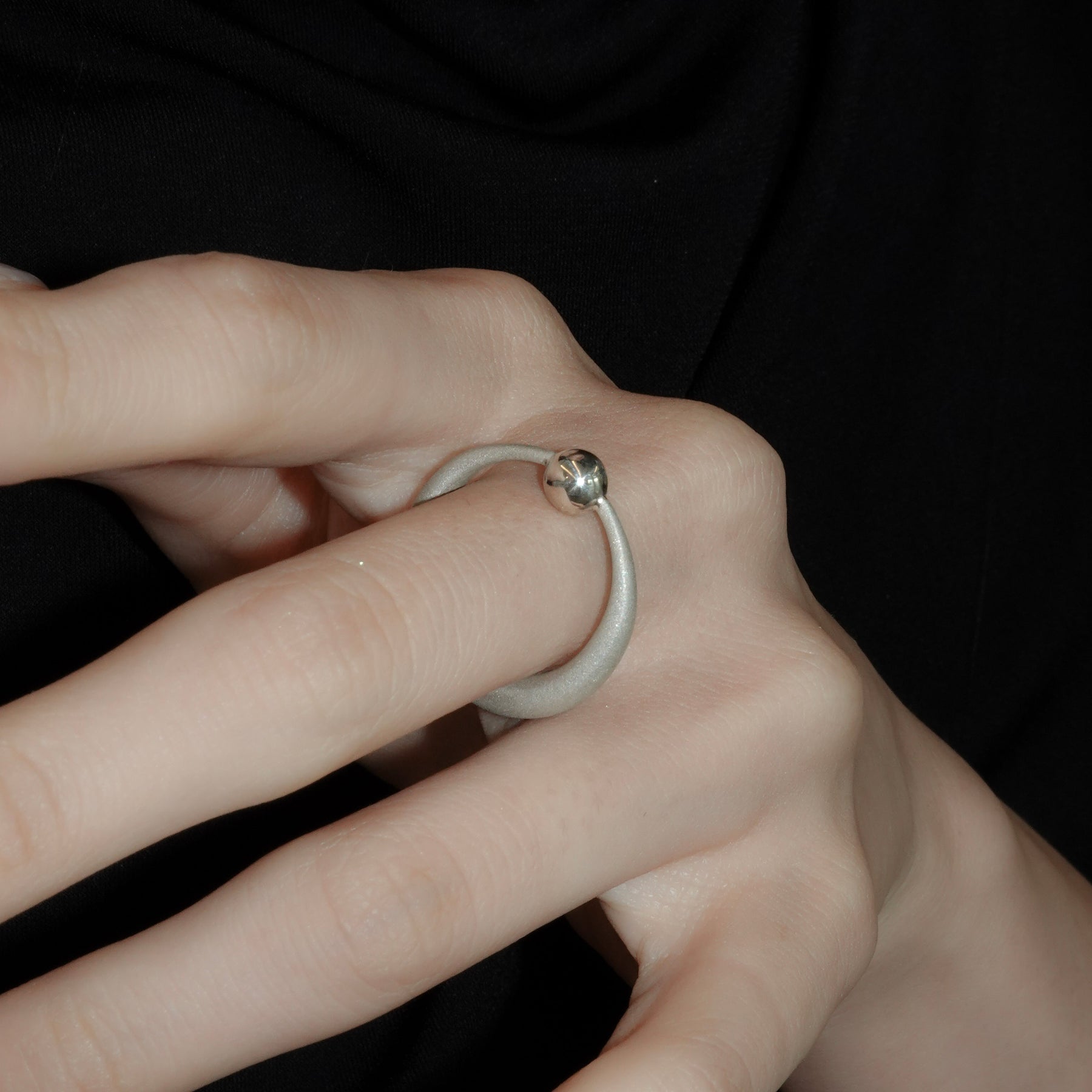 鏡面に揺れる、もう一つの自分。曖昧な感情、無言の心象、それらがかたちを持ったとき、 人は静かに“自分”に出会う。 この相は、感情の裏と表、理性と衝動の狭間を映し出す—— ひとつのかたちにふたつの顔を持つ、沈黙のジュエリー。 三日月型のリングに、鏡面仕上げの球体を添えたデザイン。 月光のようなマットな質感と光を映す鏡面が対比的。 リバーシブル仕様となっており、柔らかさと鋭さ、静と動を気分で切り替えられます。 構造自体が“揺れる自我”を象徴するような、密やかで哲学的な一本。