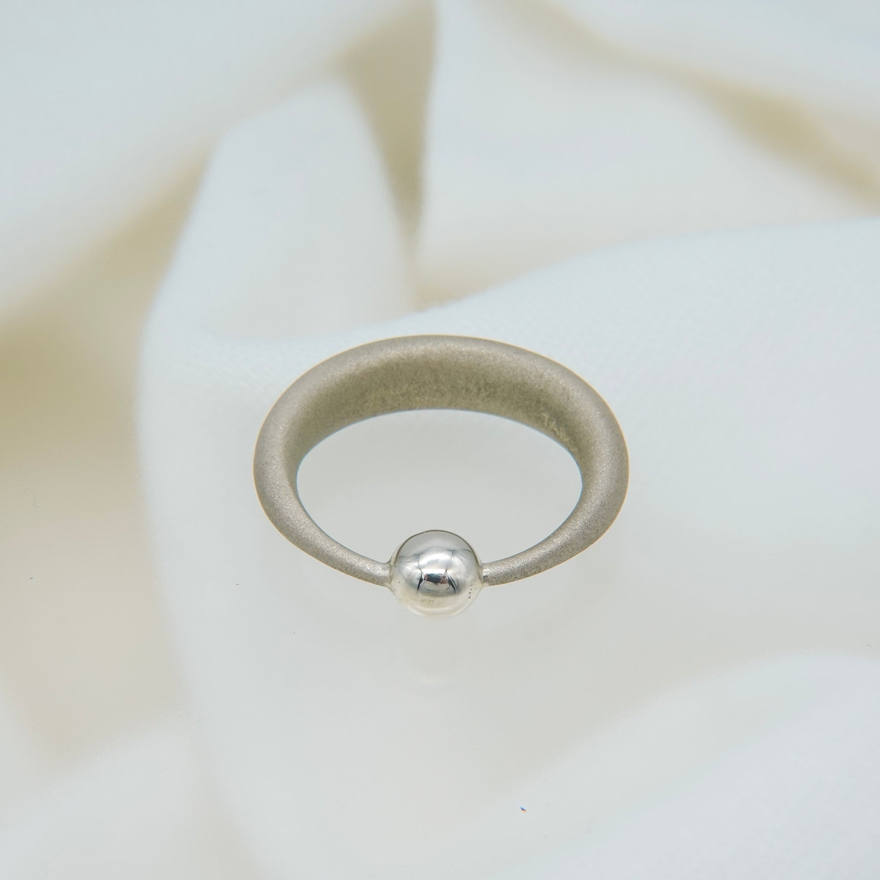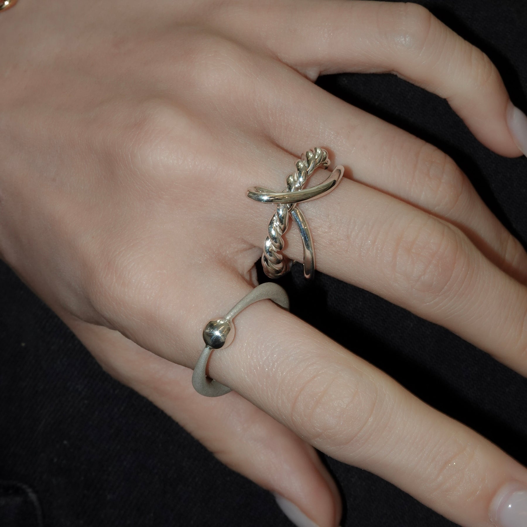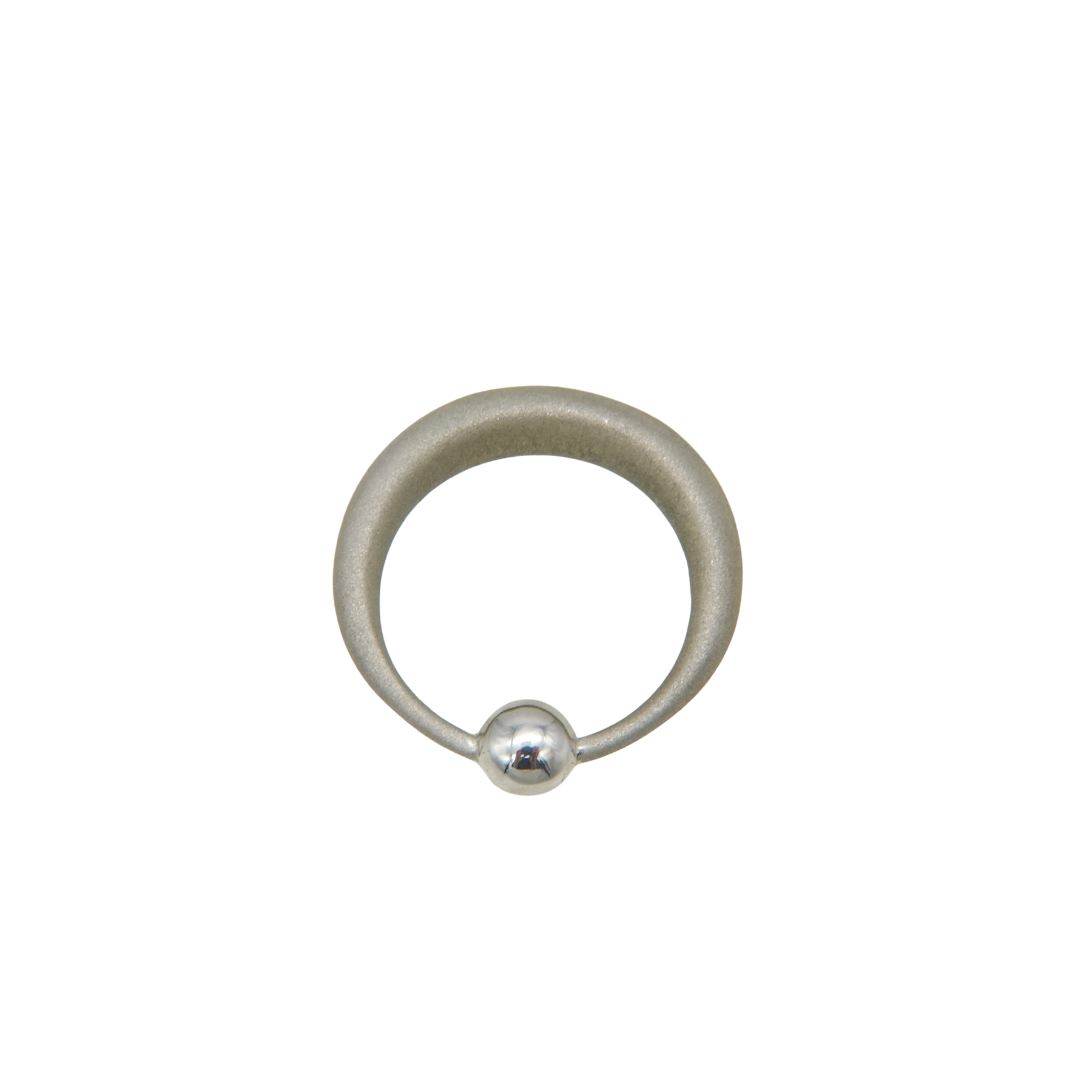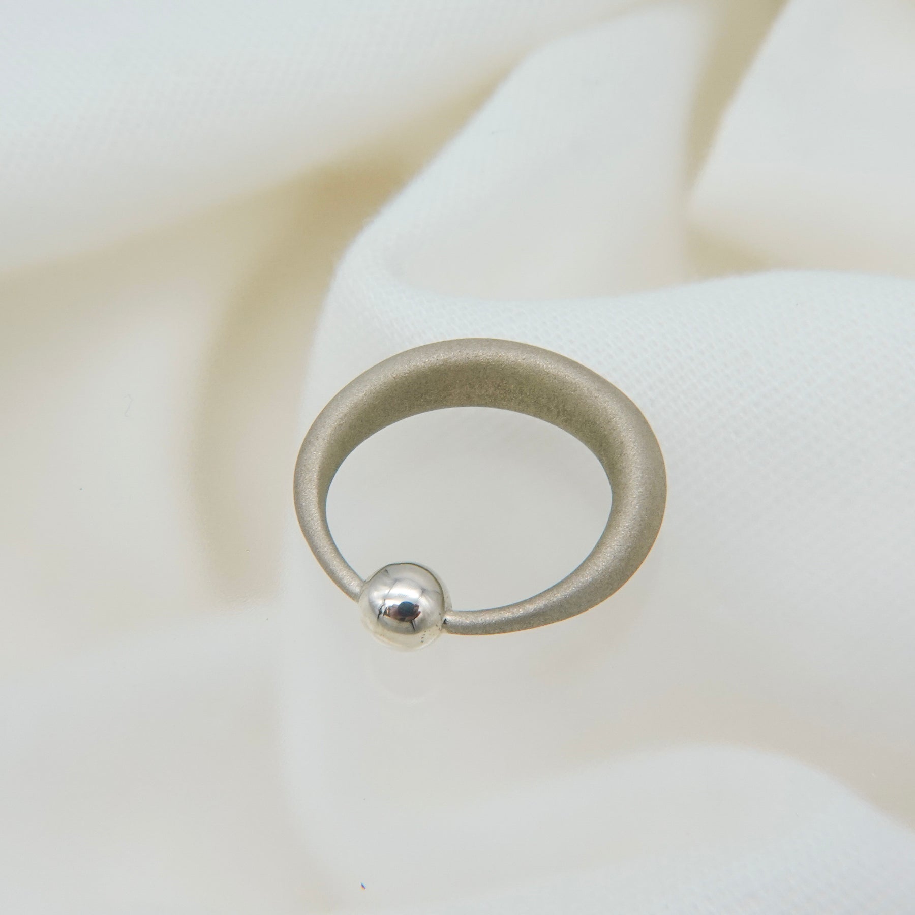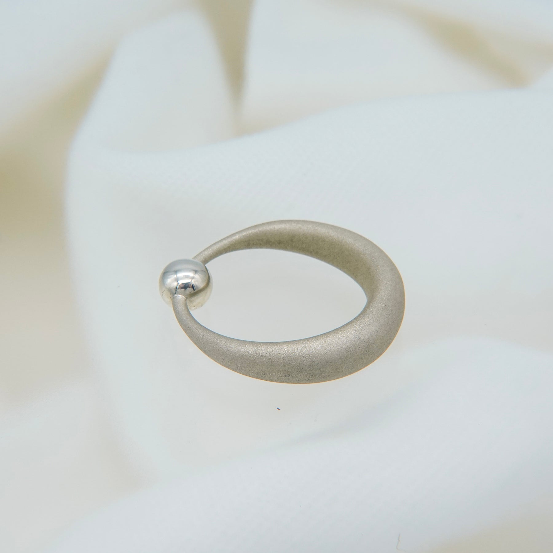 鏡面に揺れる、もう一つの自分。曖昧な感情、無言の心象、それらがかたちを持ったとき、 人は静かに“自分”に出会う。 この相は、感情の裏と表、理性と衝動の狭間を映し出す—— ひとつのかたちにふたつの顔を持つ、沈黙のジュエリー。 三日月型のリングに、鏡面仕上げの球体を添えたデザイン。 月光のようなマットな質感と光を映す鏡面が対比的。 リバーシブル仕様となっており、柔らかさと鋭さ、静と動を気分で切り替えられます。 構造自体が“揺れる自我”を象徴するような、密やかで哲学的な一本。