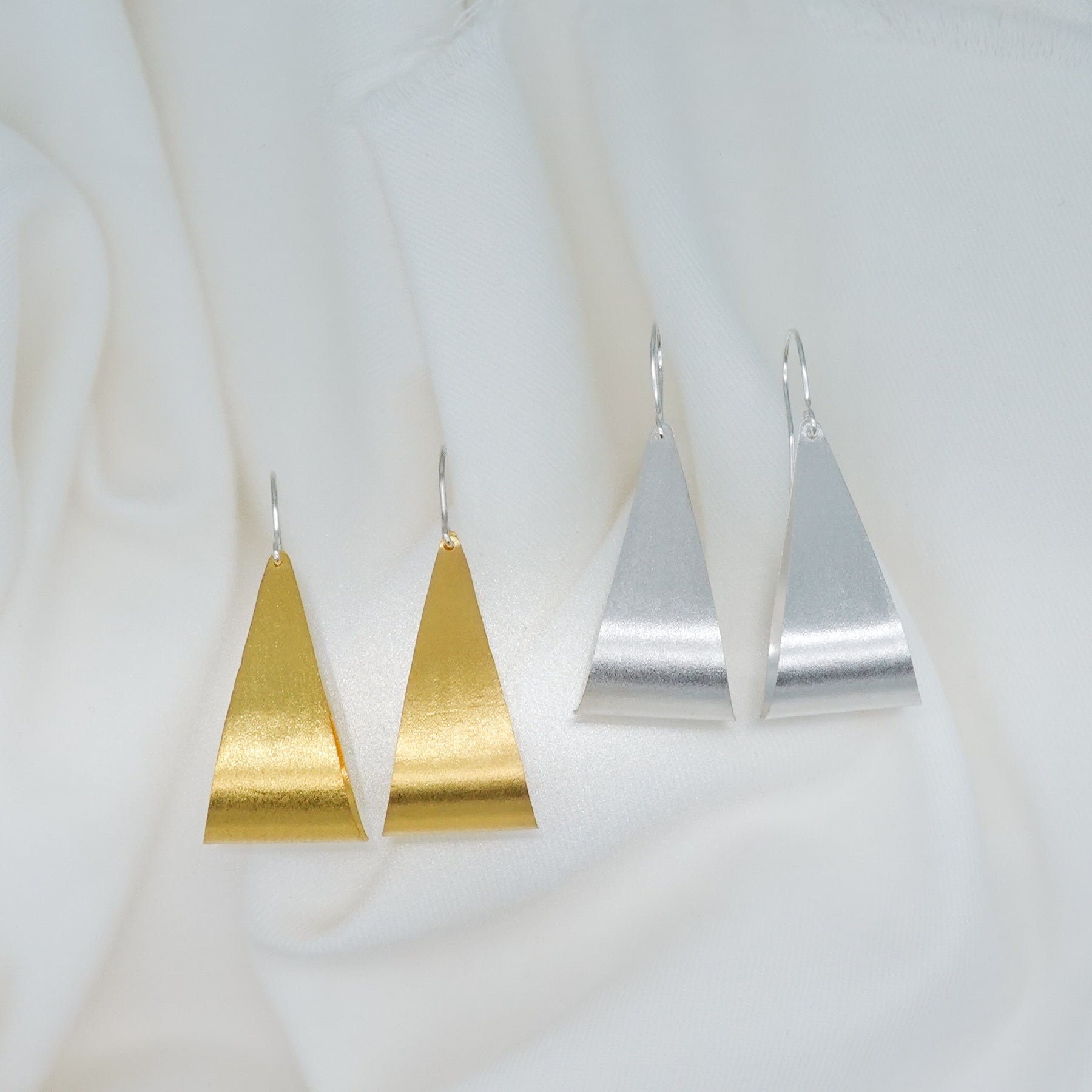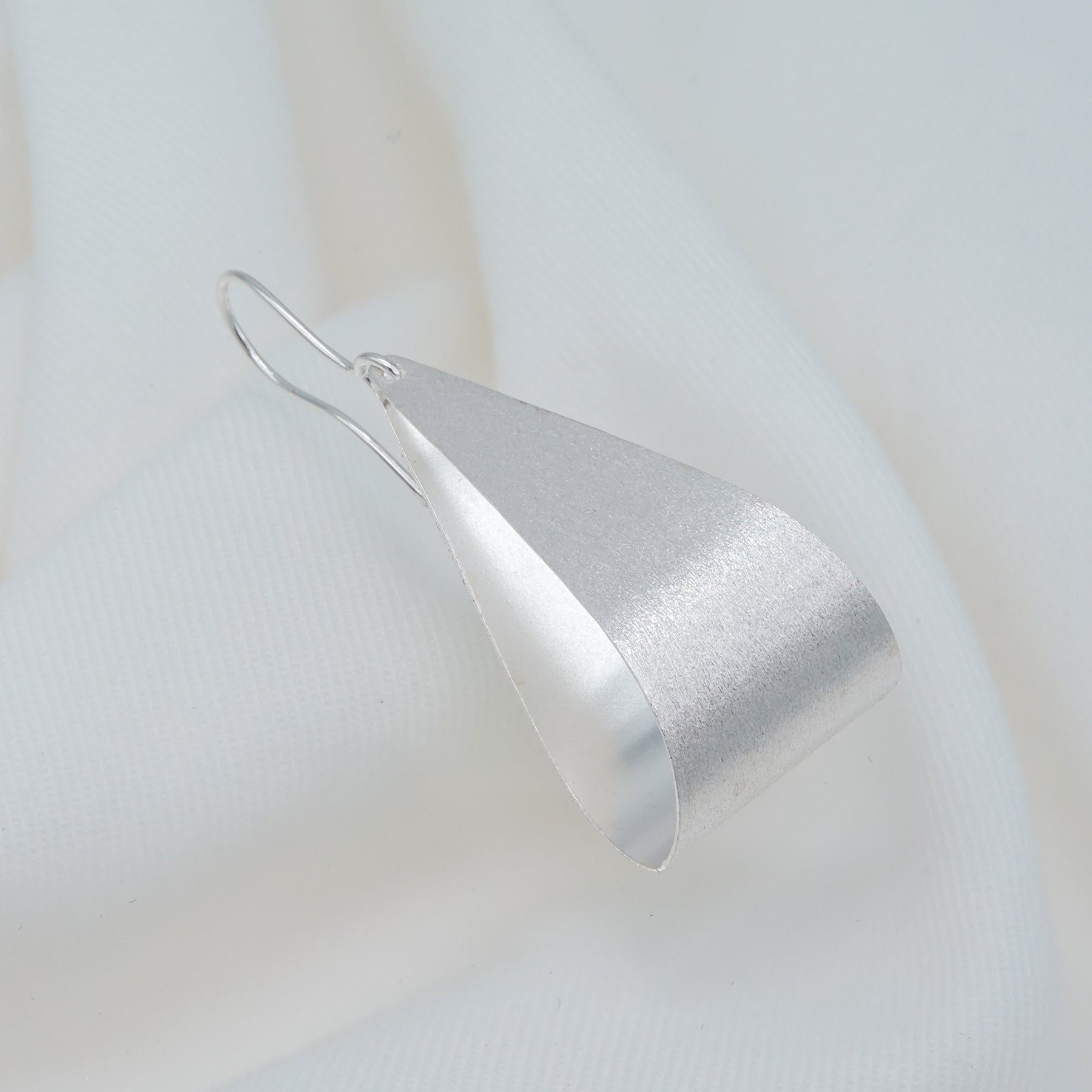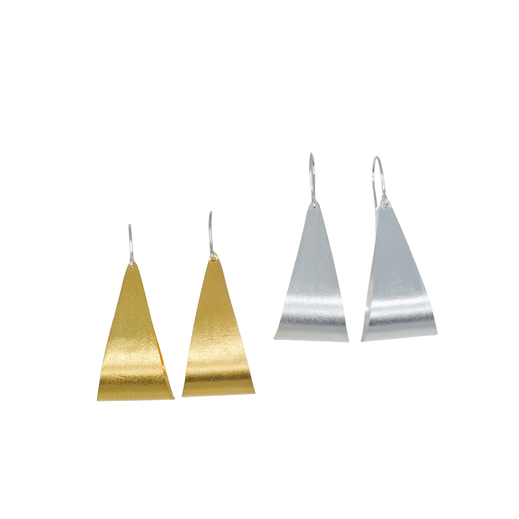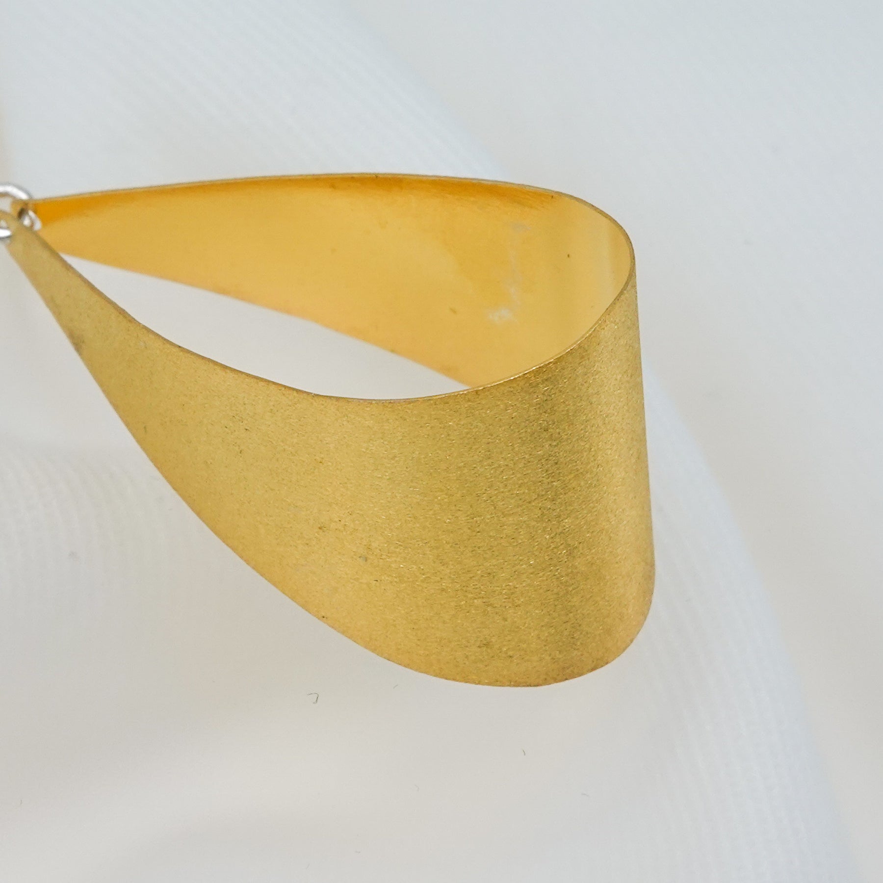 極限まで薄いプレートを丸く曲げた、ふわふわと宙に舞う風船を彷彿とさせるピアス。表面はマット仕上げで、大ぶりなモチーフながら落ち着いた印象です。
