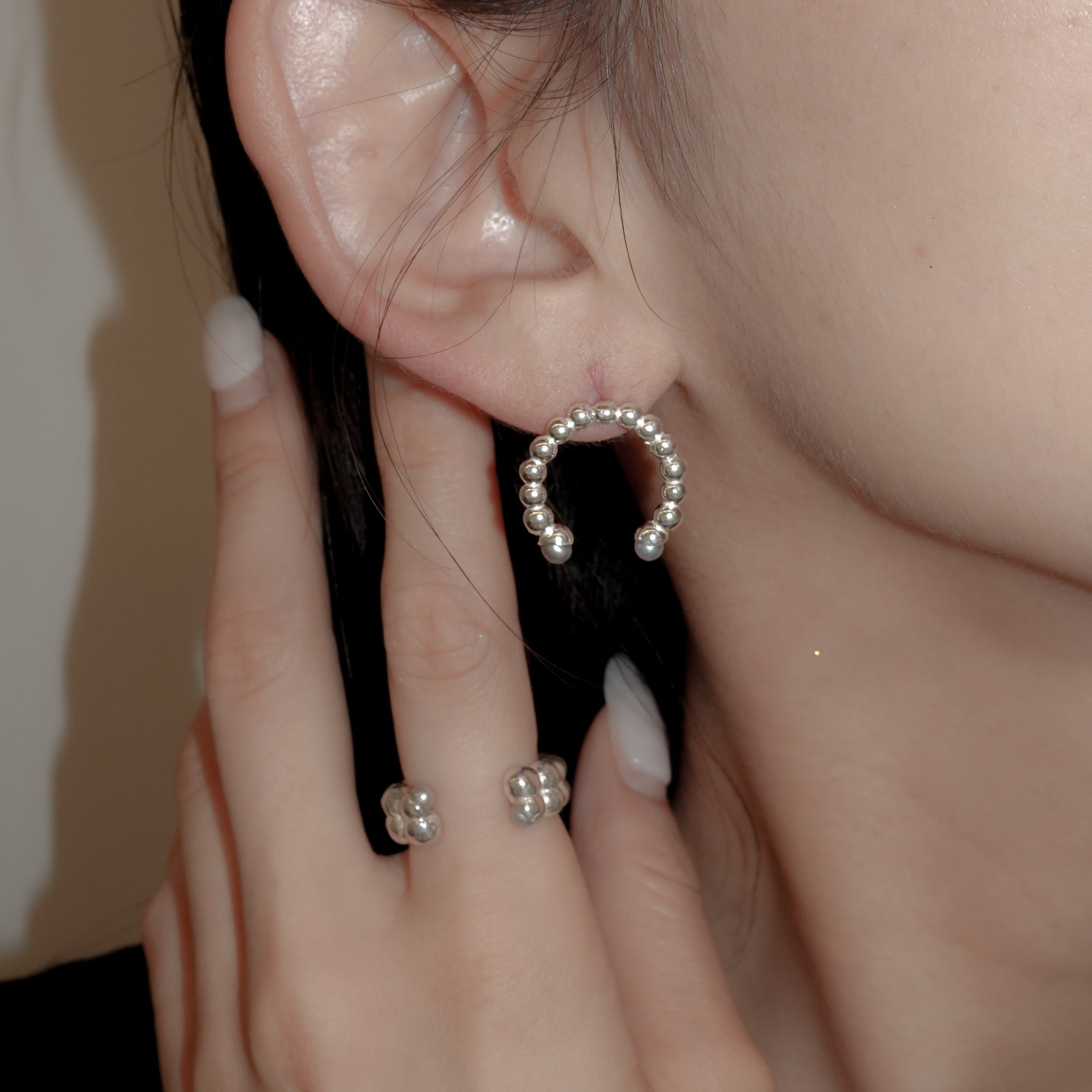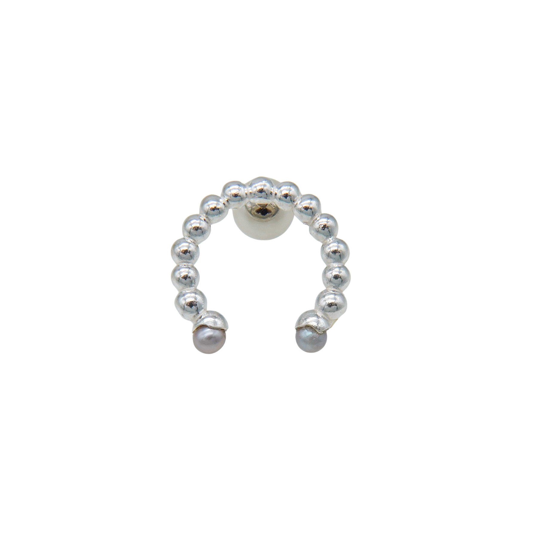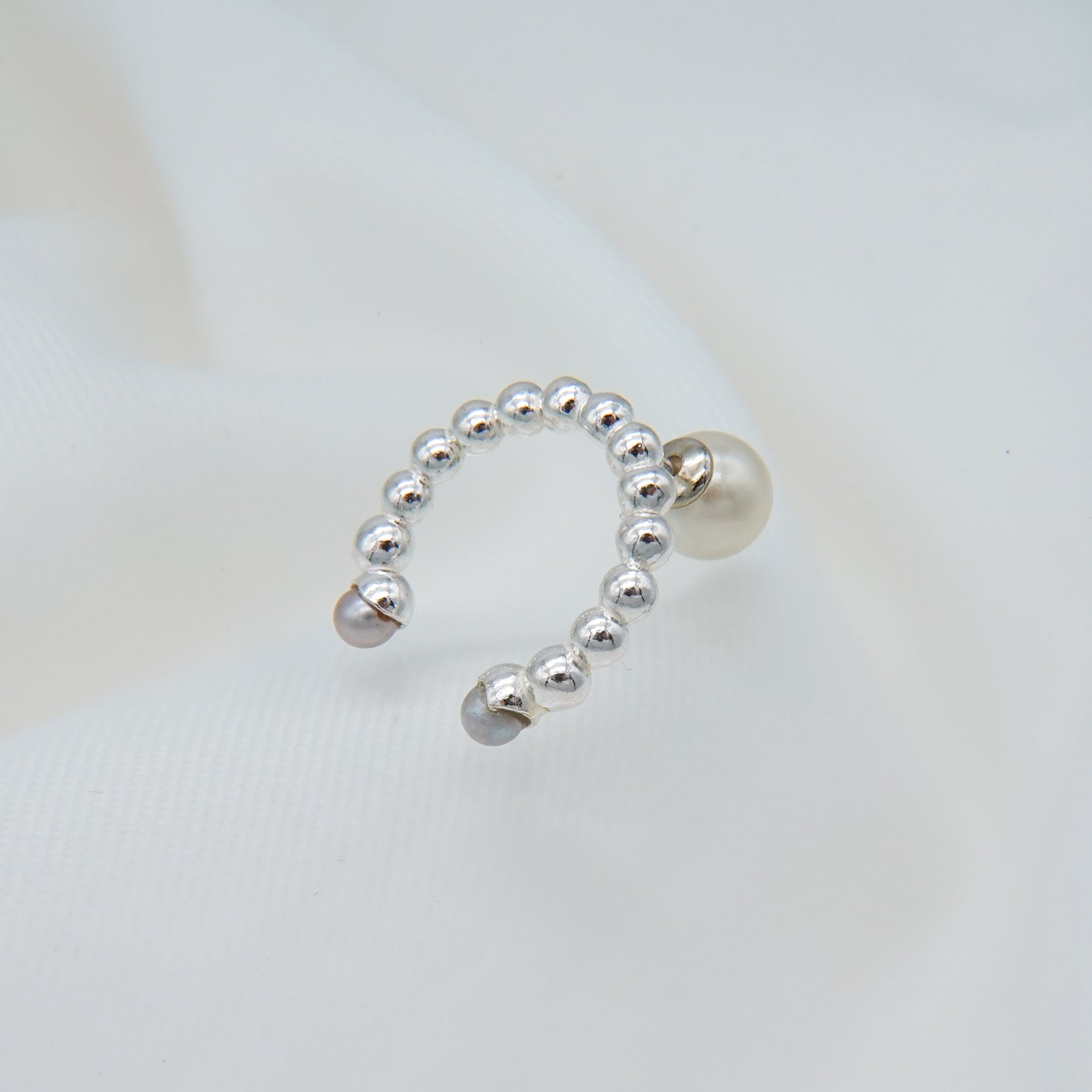 ミニマルな球体が連なり、耳元に軽やかなリズムを生むピアス。端にあしらった小さなパールが、静かな個性を引き立てます。 こちらのアイテムは片耳販売となります。