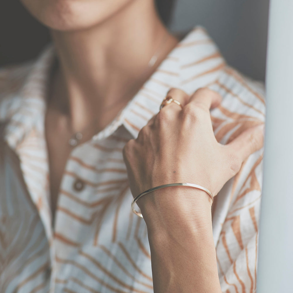 シンプルで日常に溶け込むデザインと、一流の職人たちによるこだわり抜かれたやわらかなカーブ、繊細な輝き、身体により添う着け心地を味わうことができる。