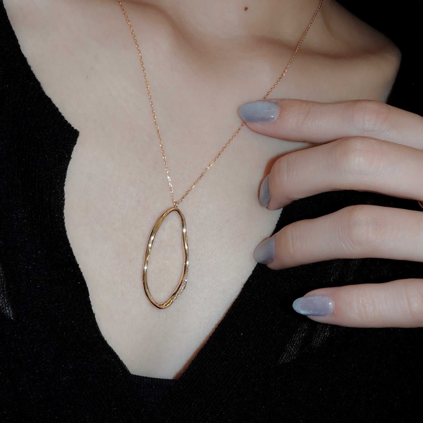 つや消しとダイヤモンドの輝きがロングチェーンできらめきます。