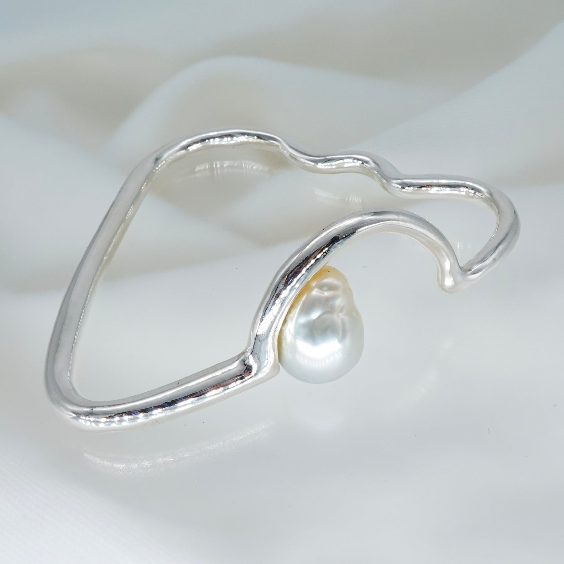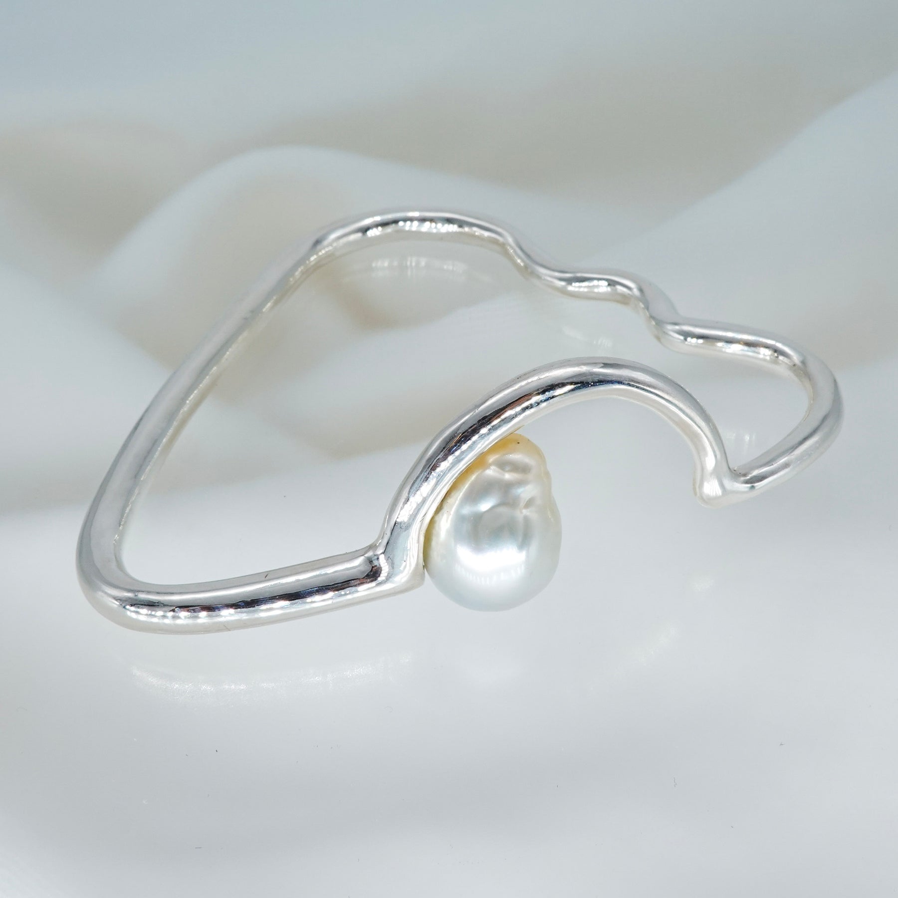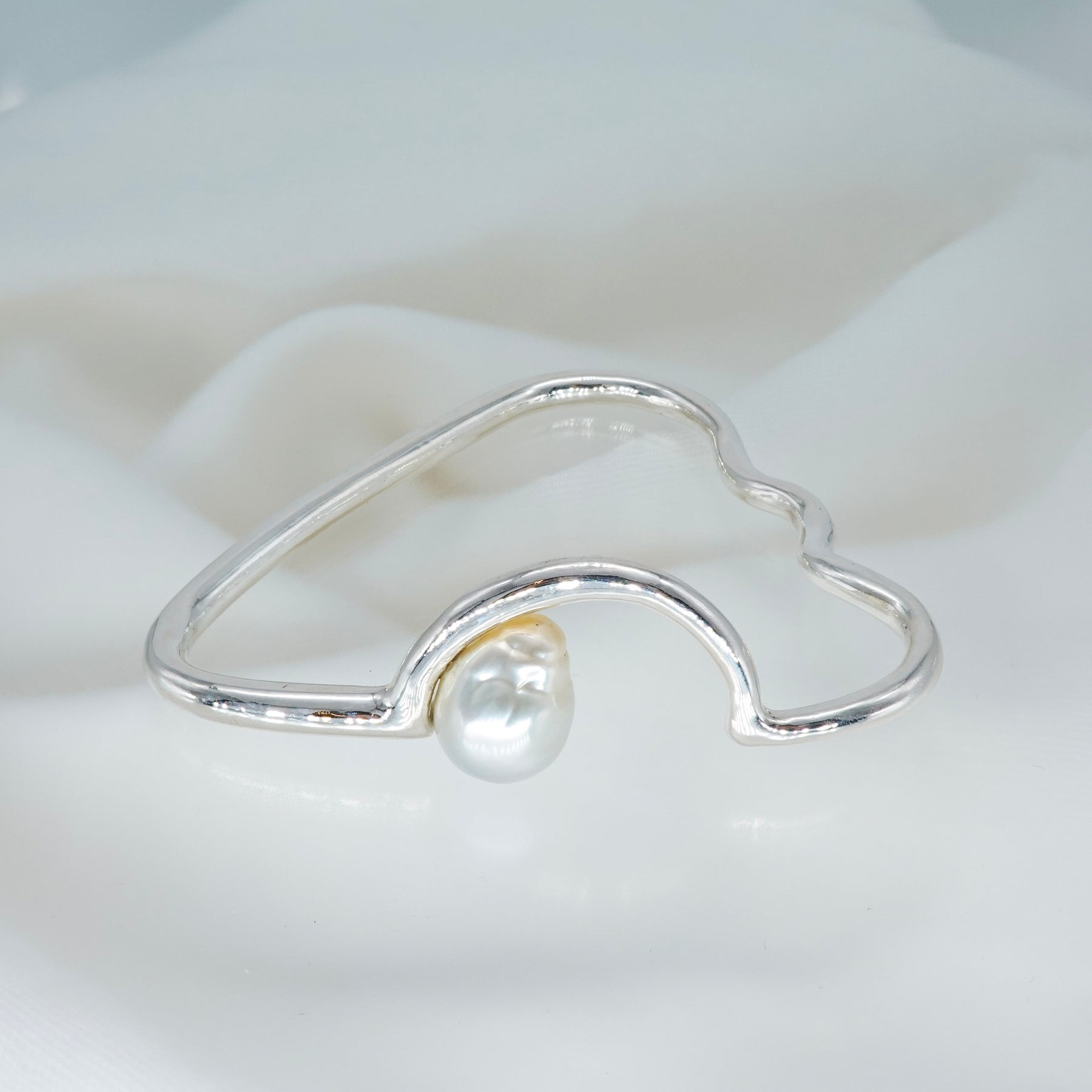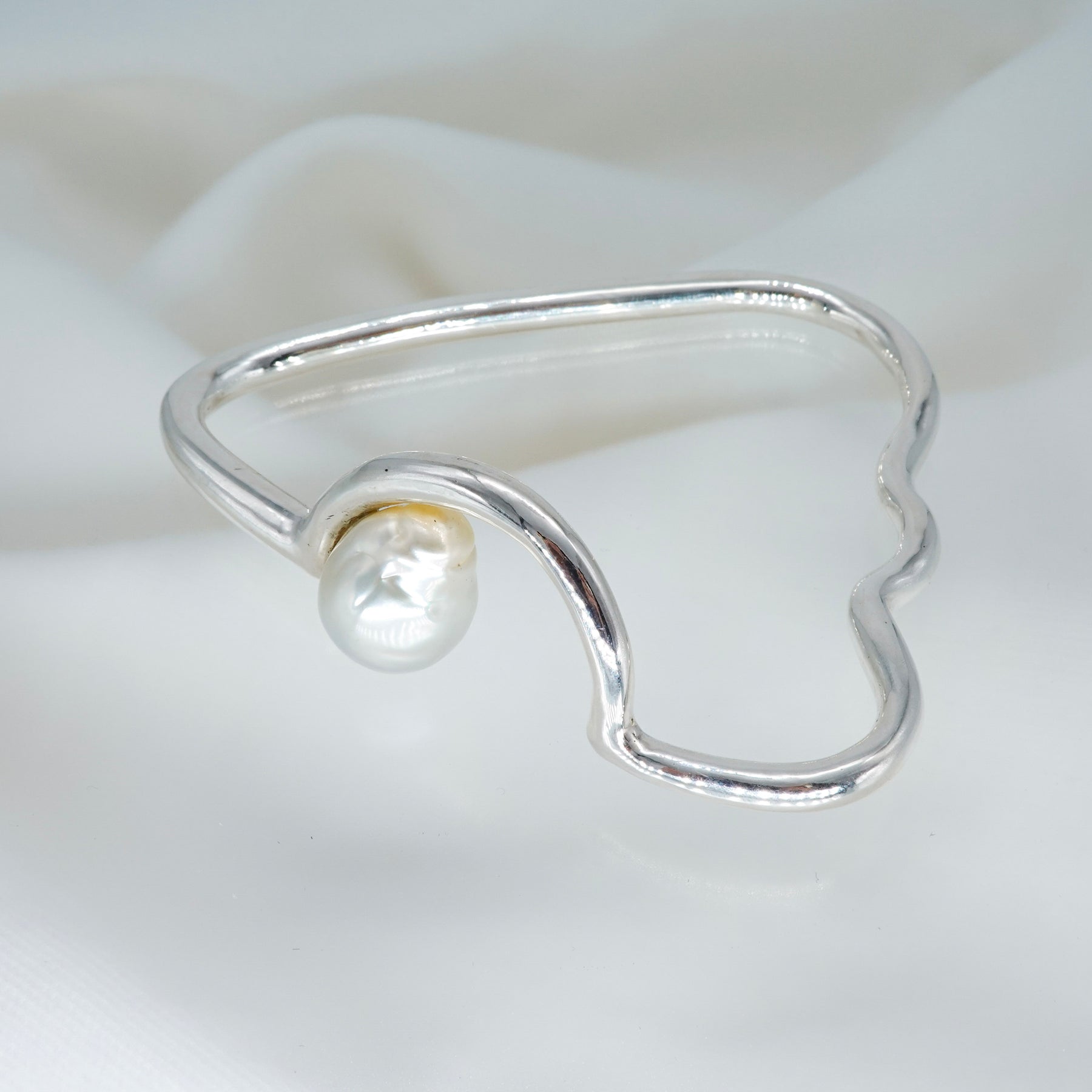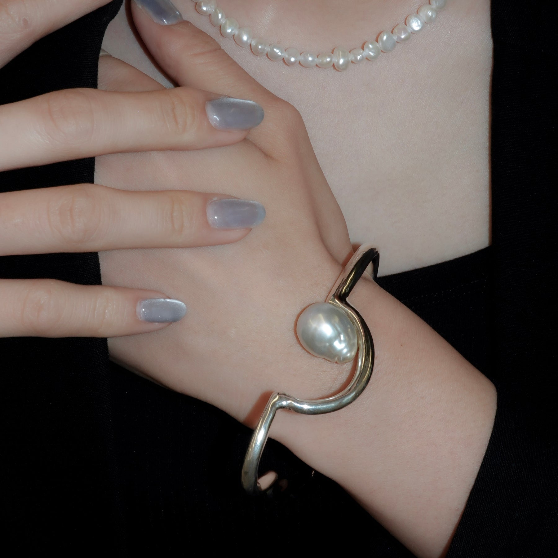 バロックパールがあしらわれた個性抜群のフォルムのバングル。