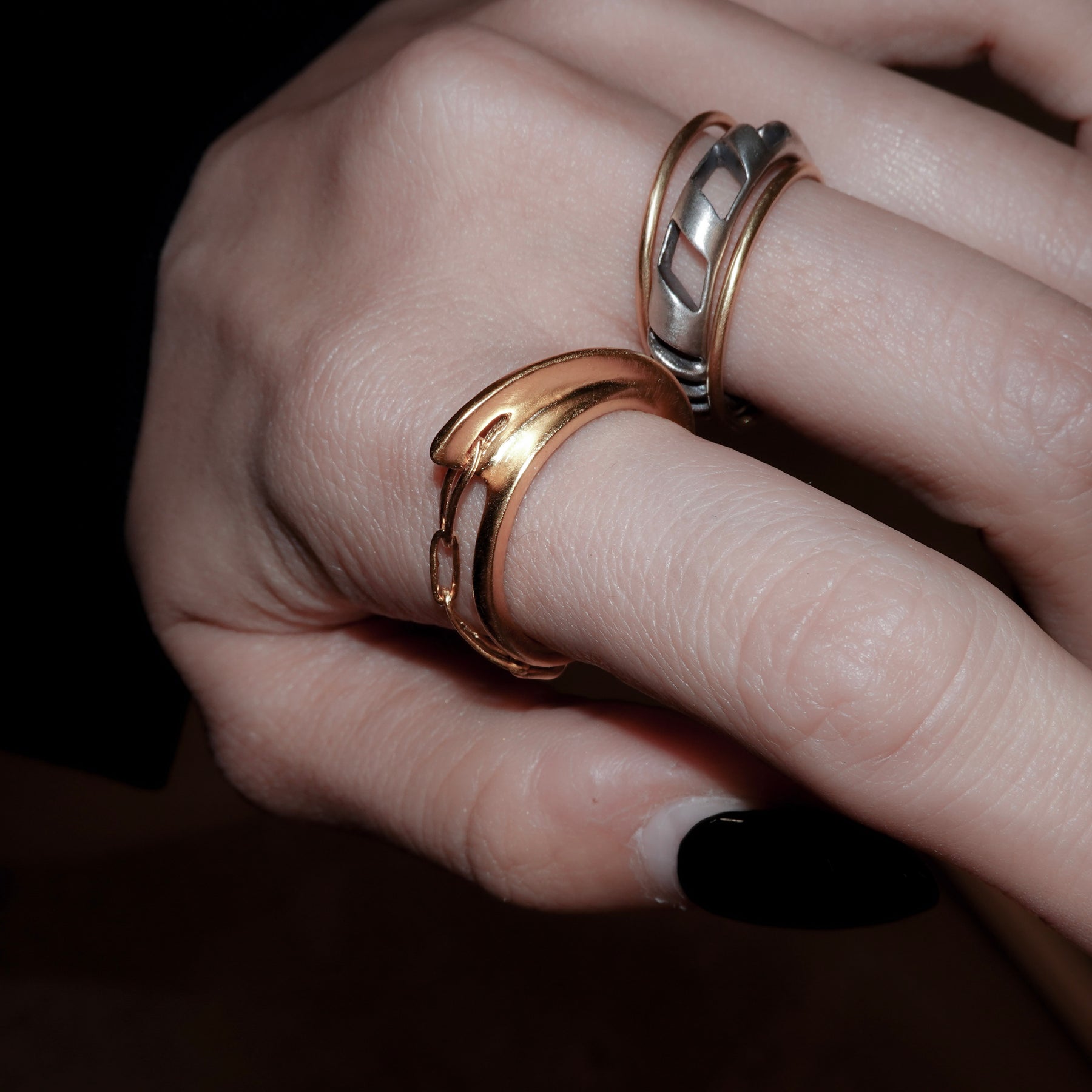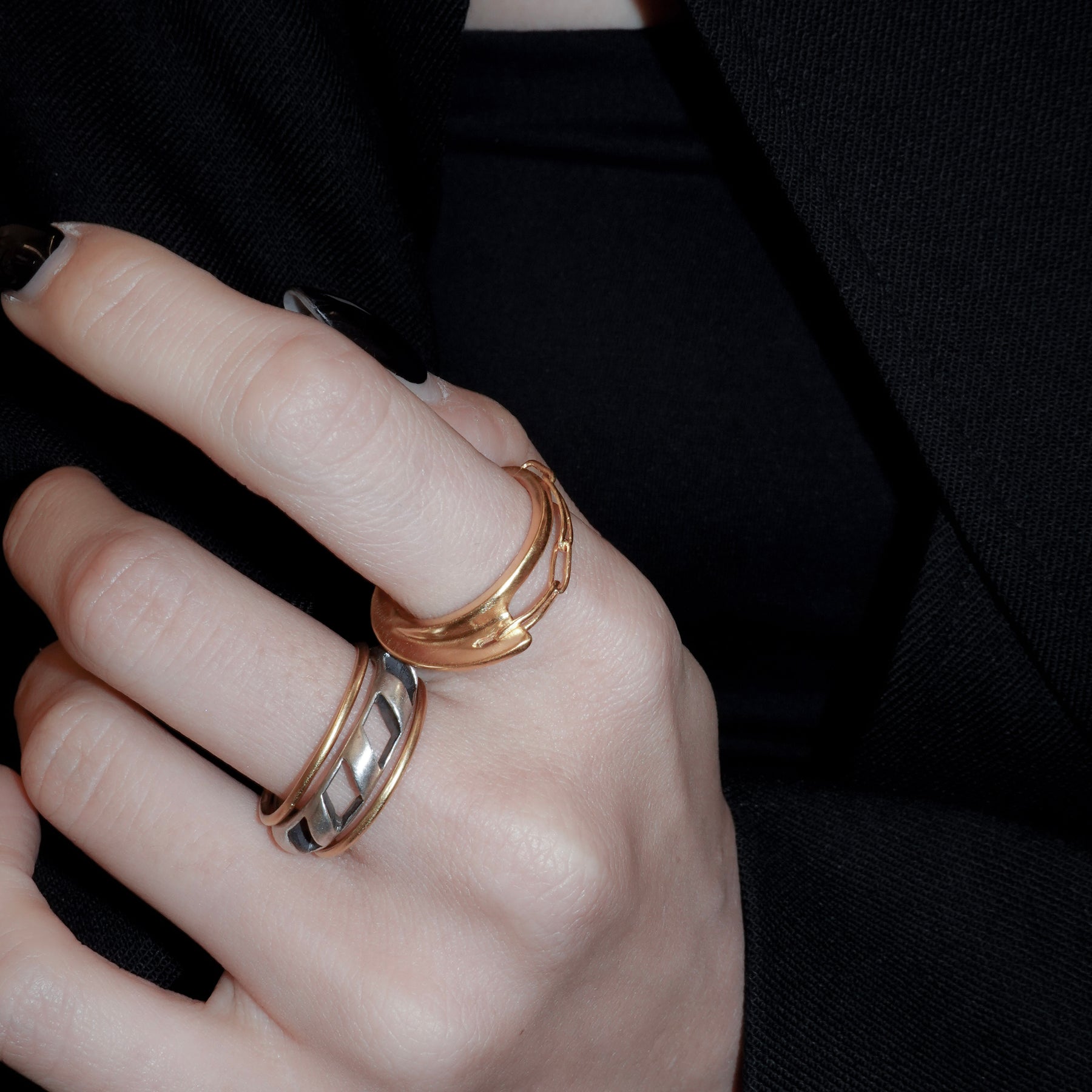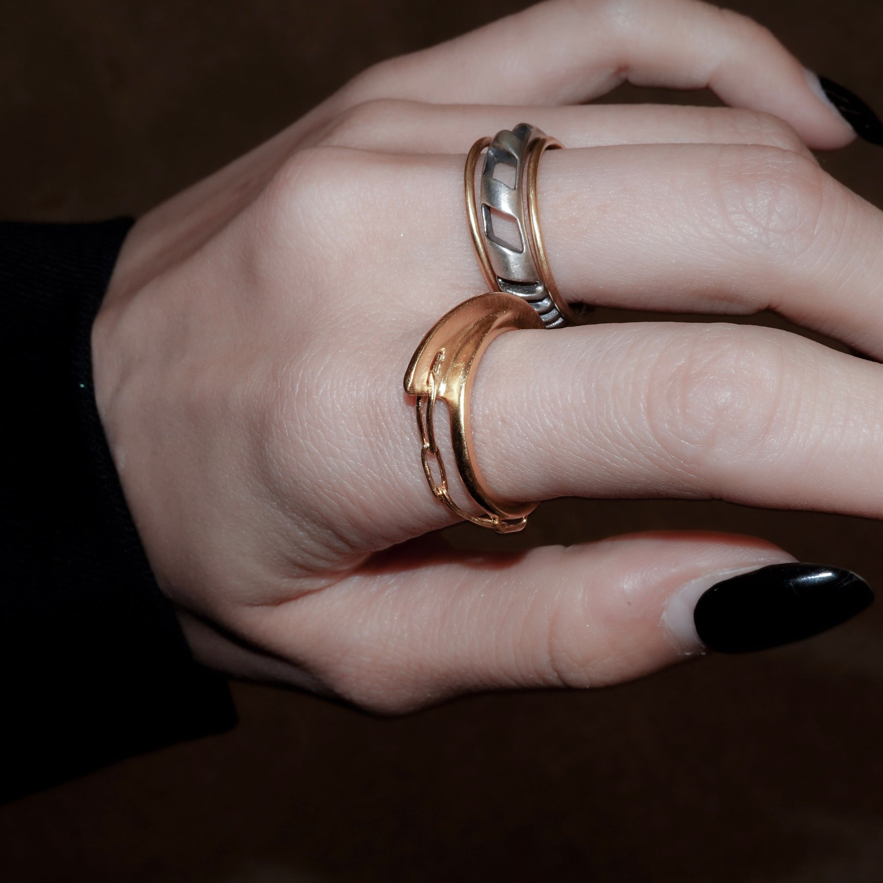 ざっくりとしたチェーンがデザインのポイントになっているリング。仕上げの質感はツヤ、マットよりお選びいただけます。