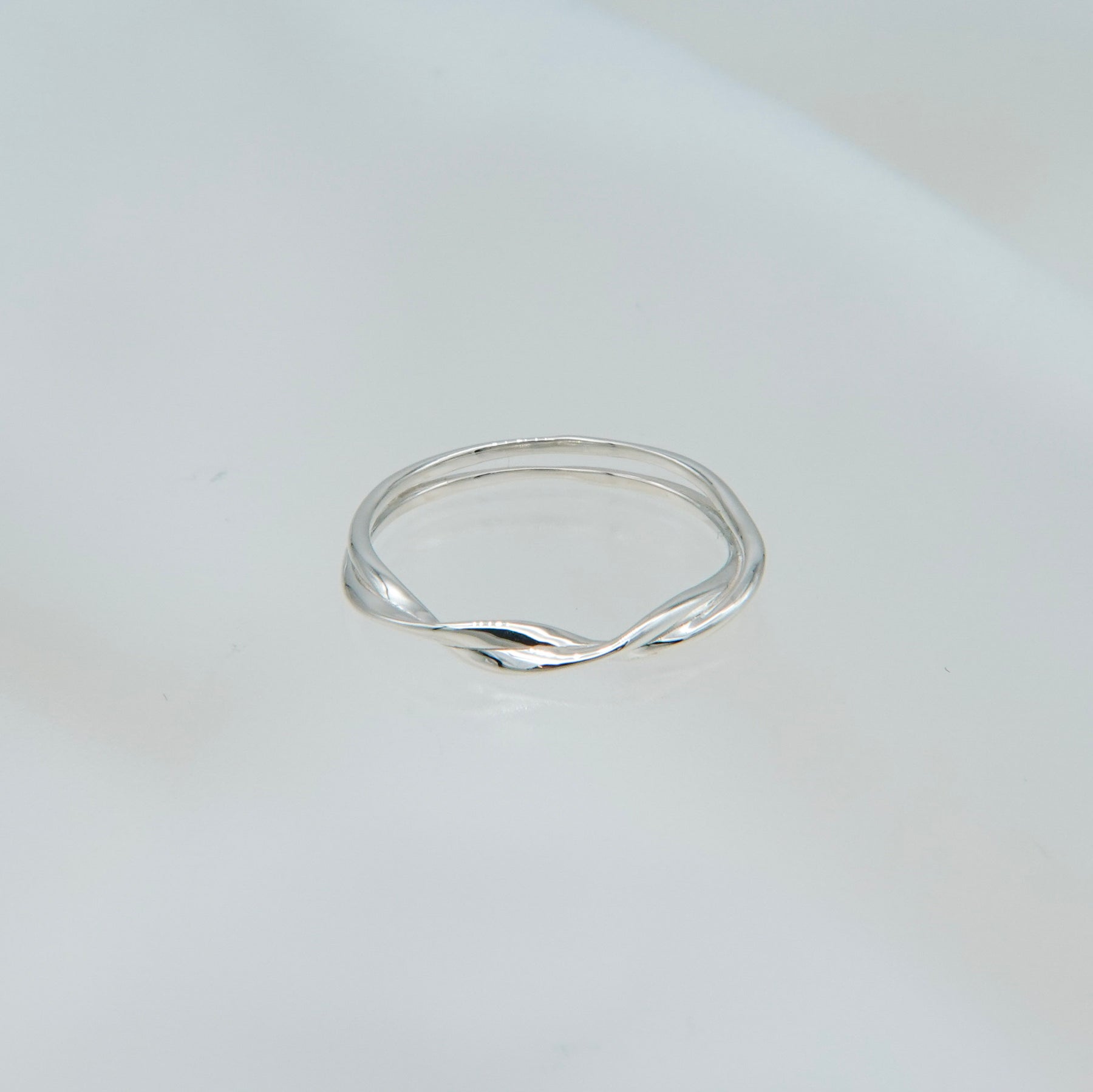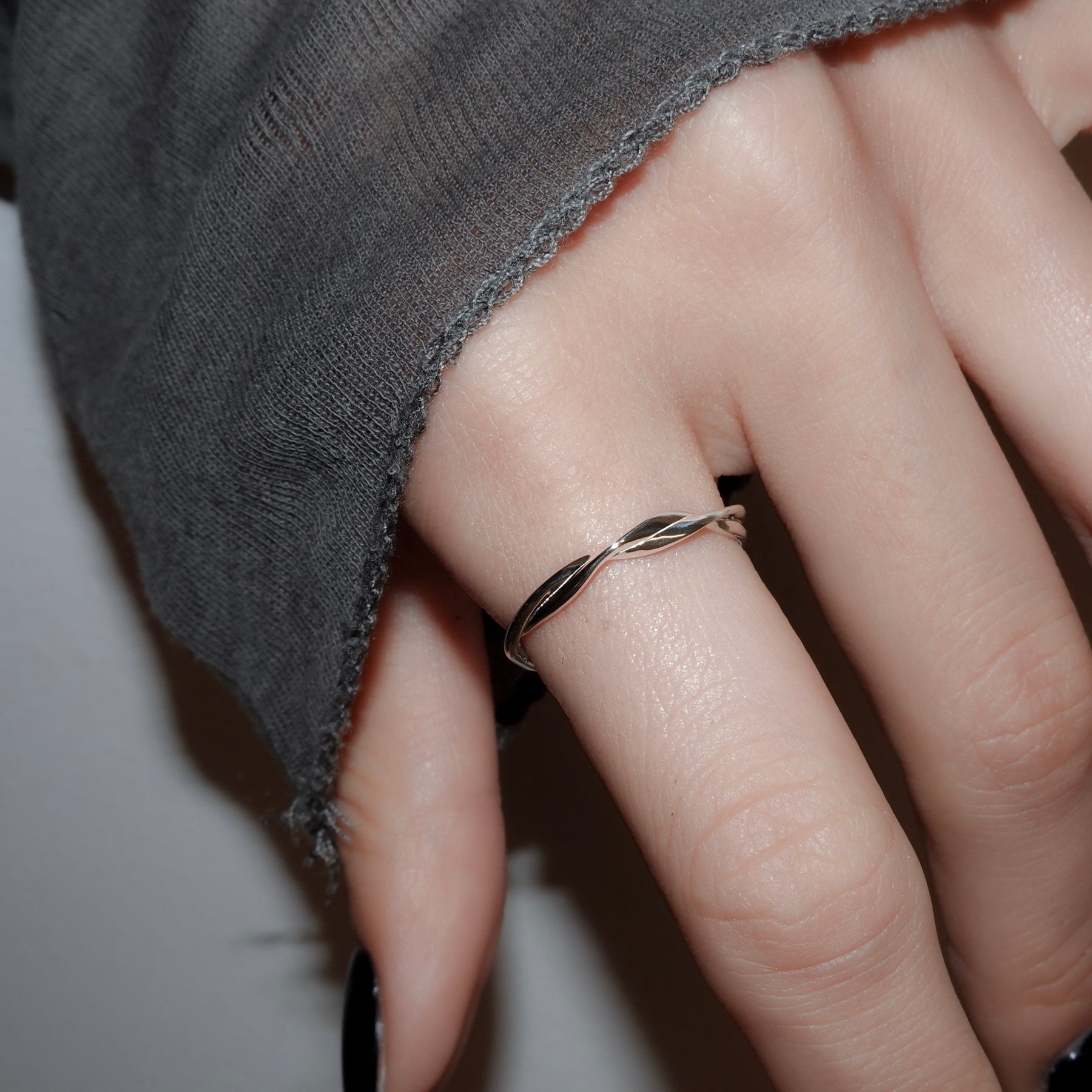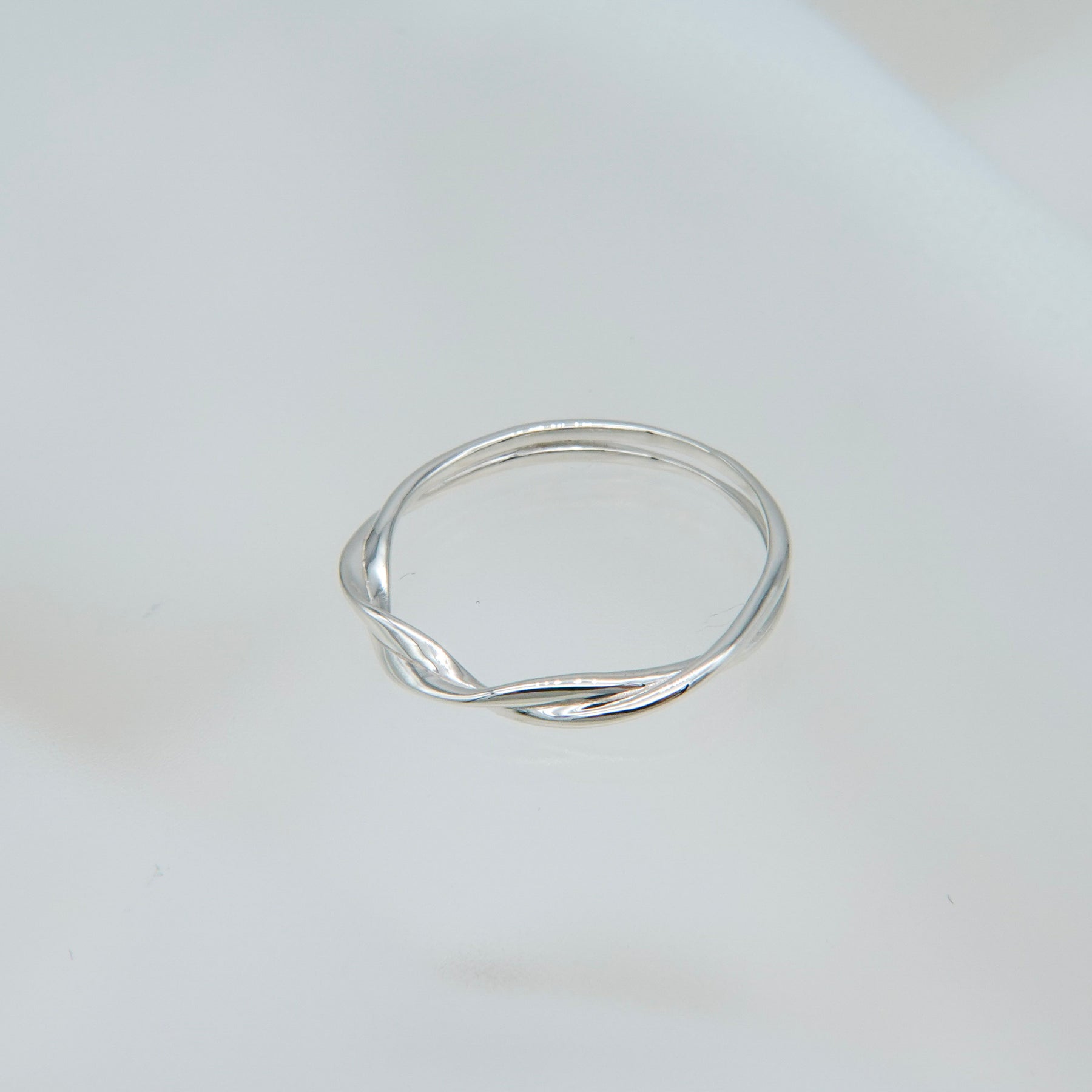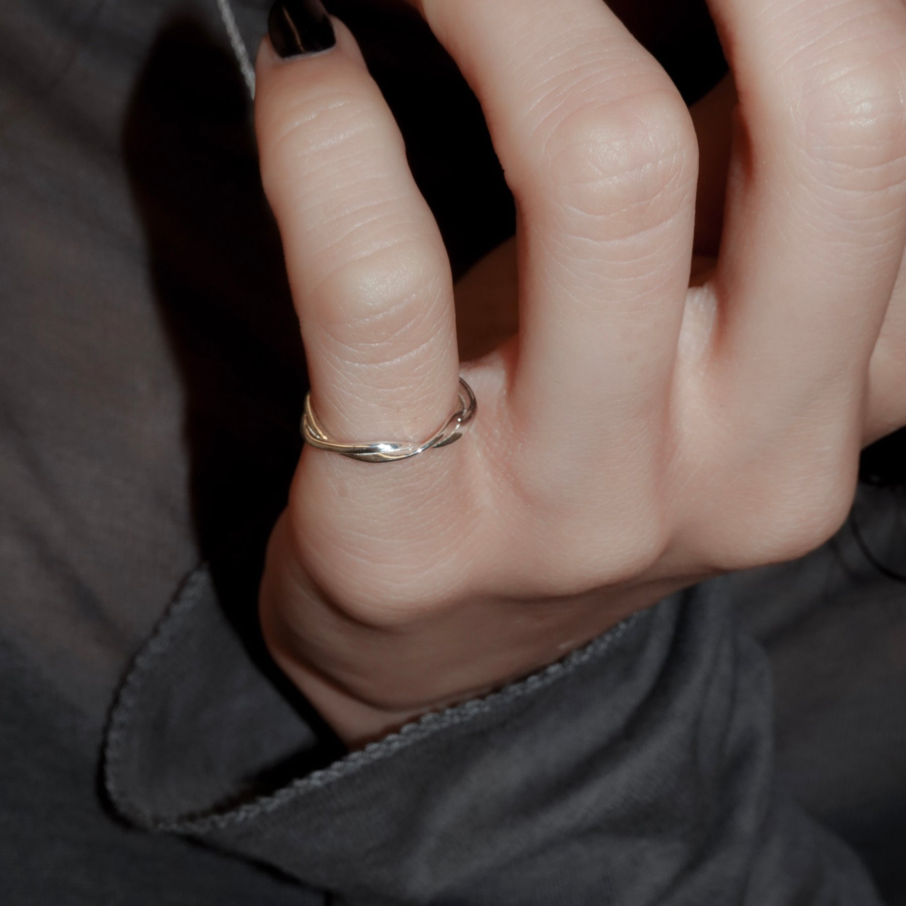 交差した二本の曲線がシンプルながらも、優しく個性を演出するデザイン。様々なコーディネートに組み込みやすく、ピンキーリングとしてもお勧めです。