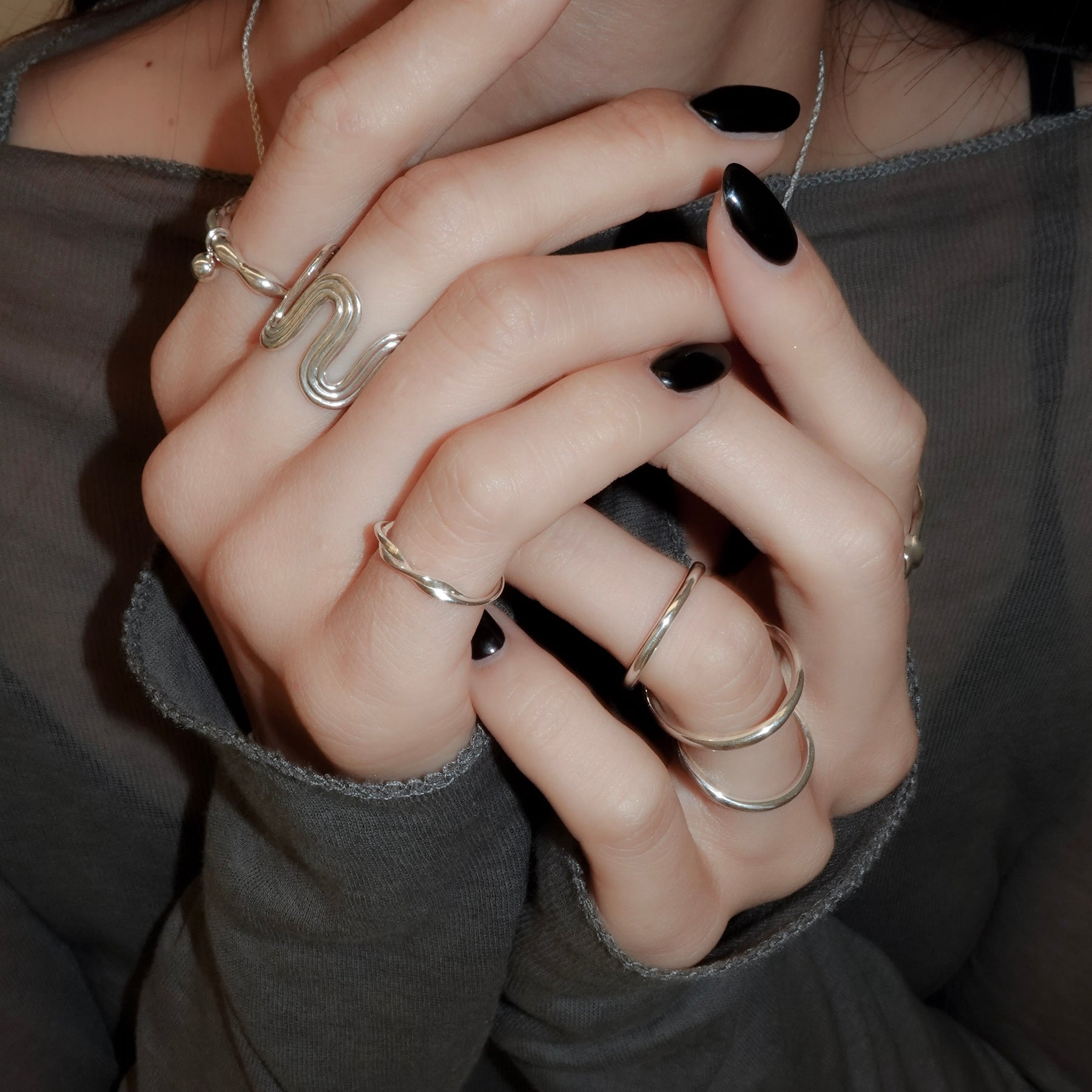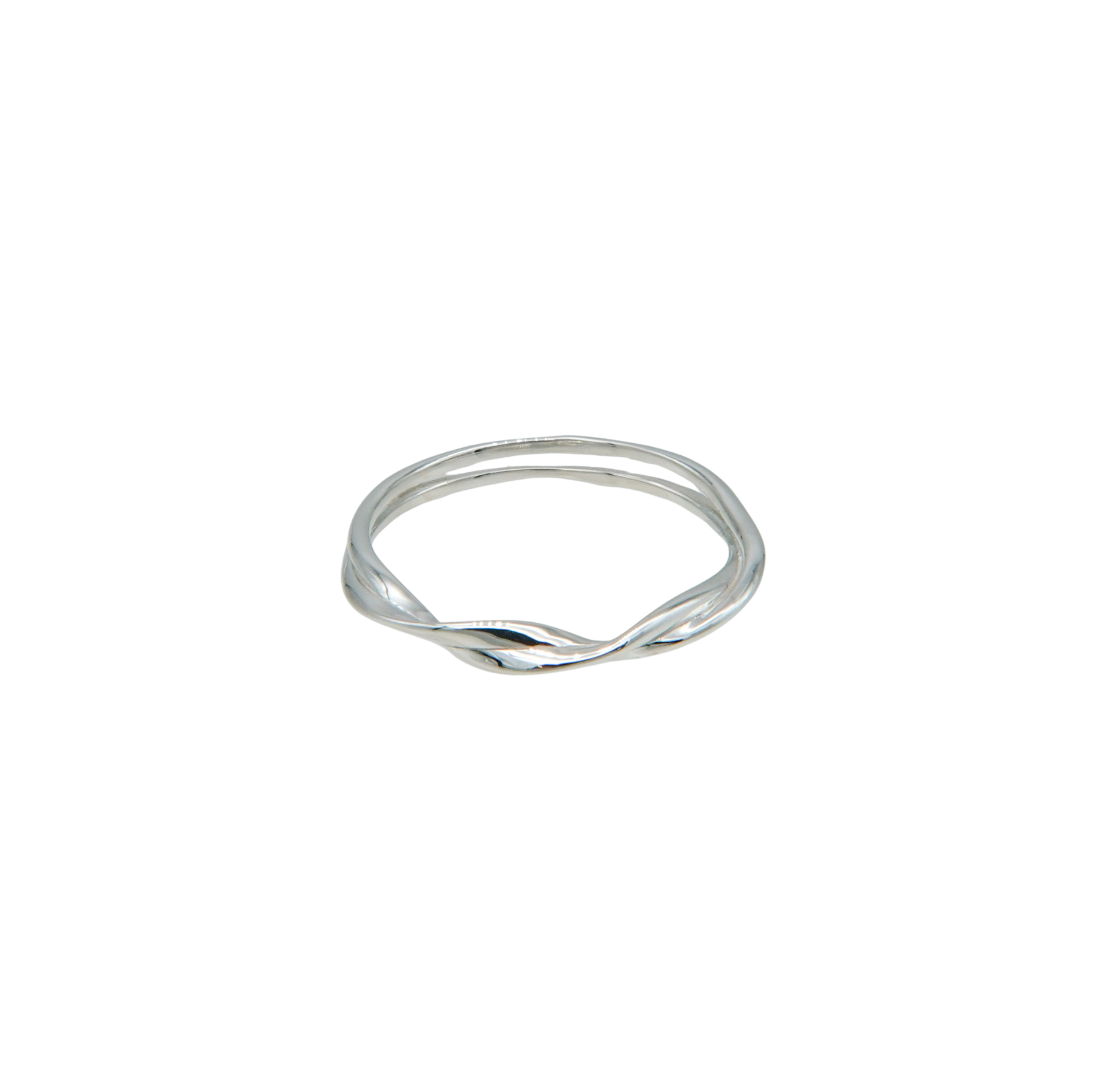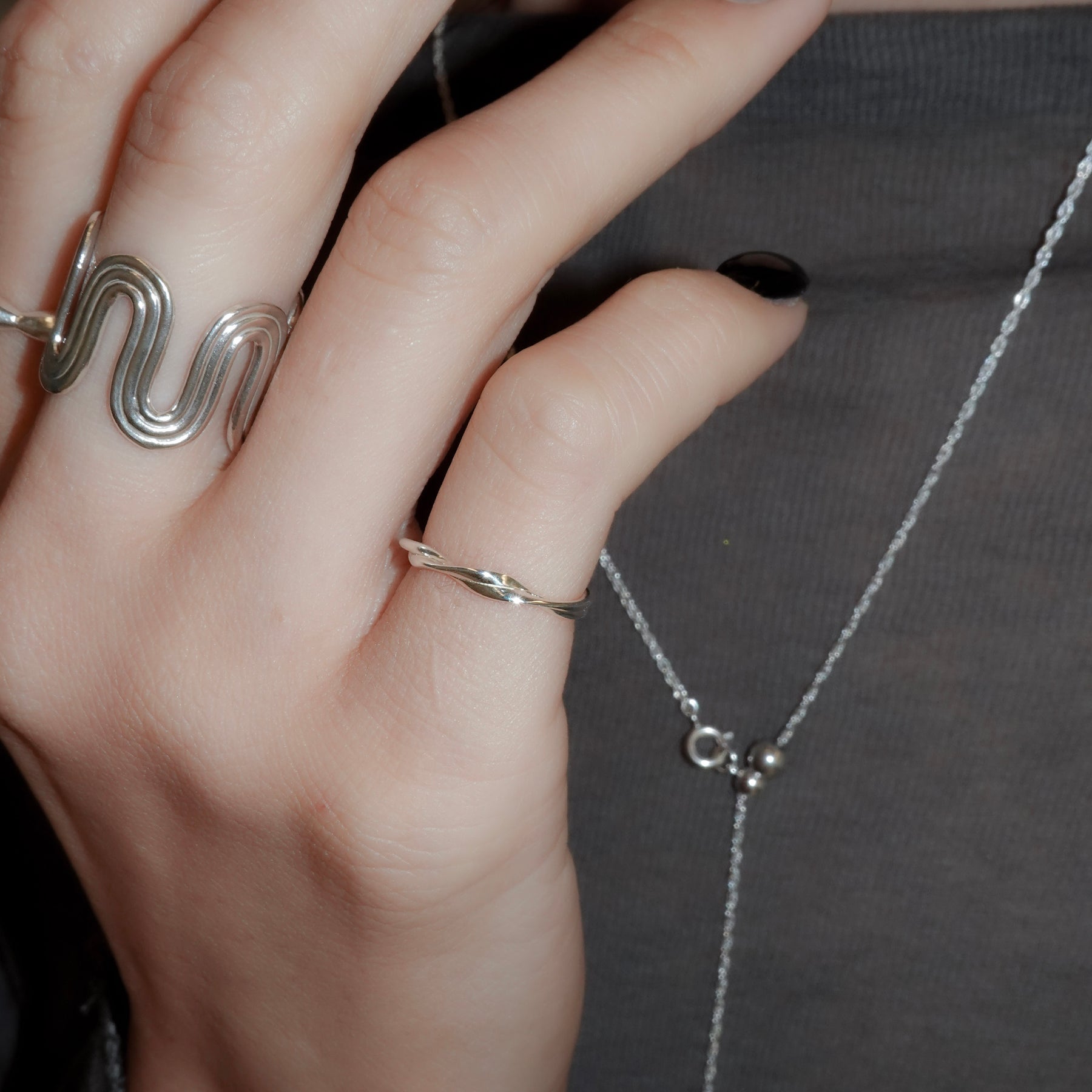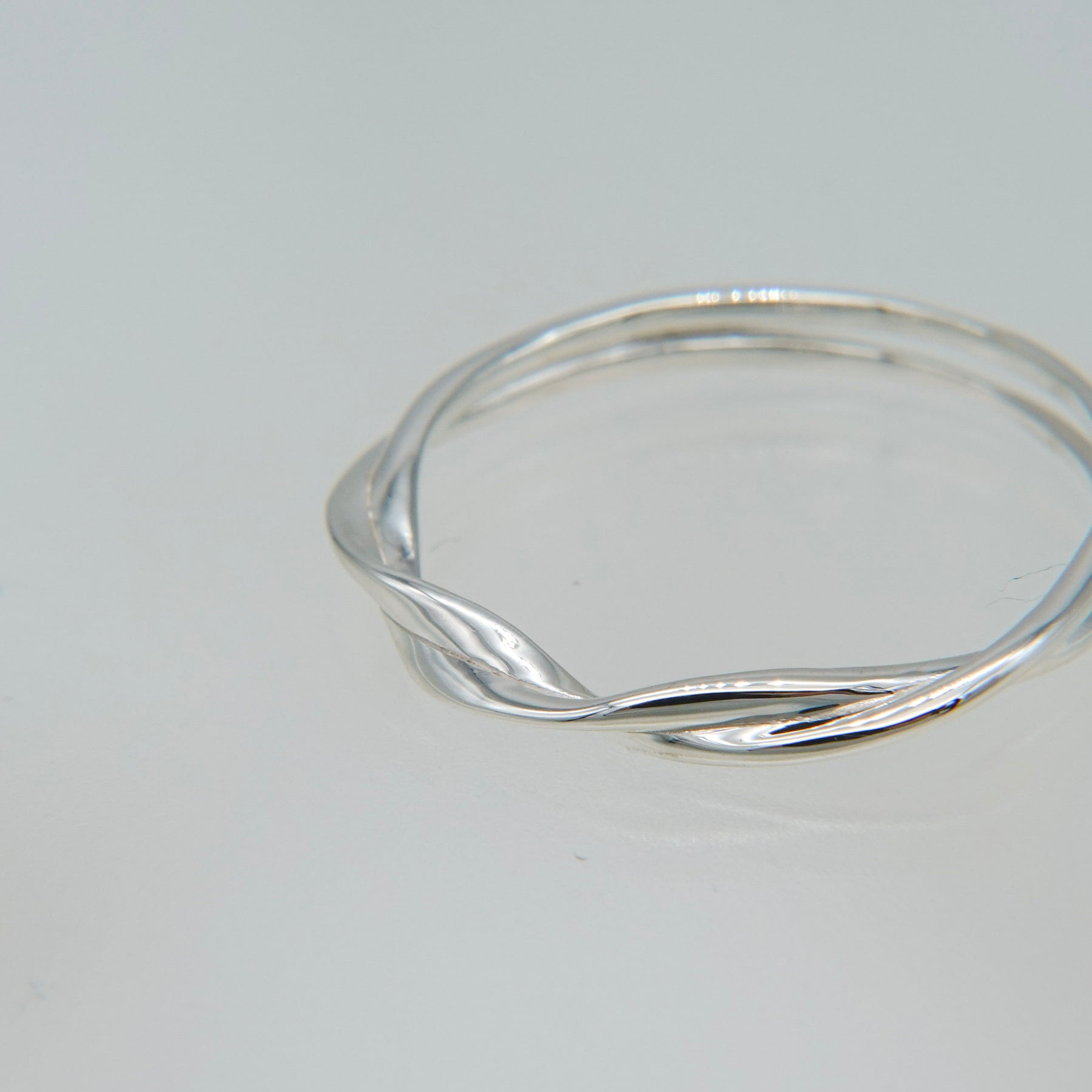 交差した二本の曲線がシンプルながらも、優しく個性を演出するデザイン。様々なコーディネートに組み込みやすく、ピンキーリングとしてもお勧めです。