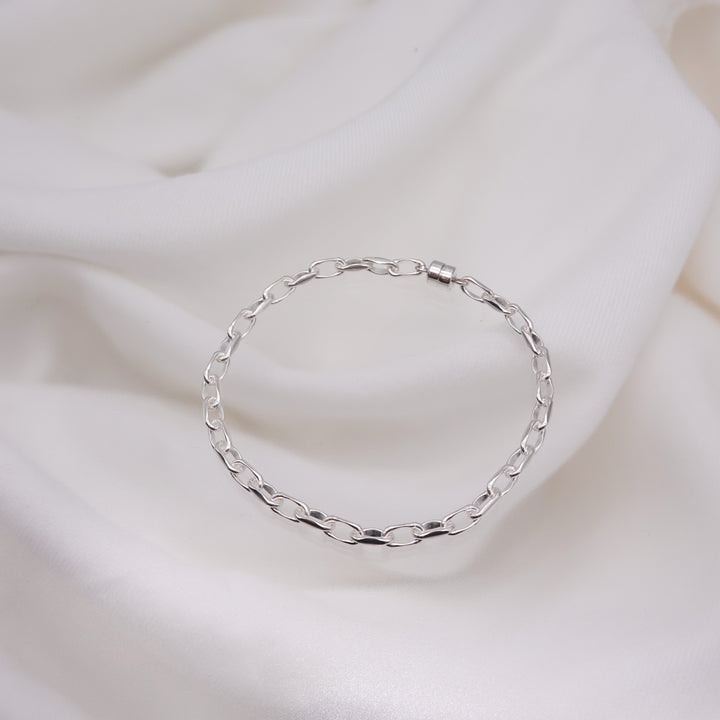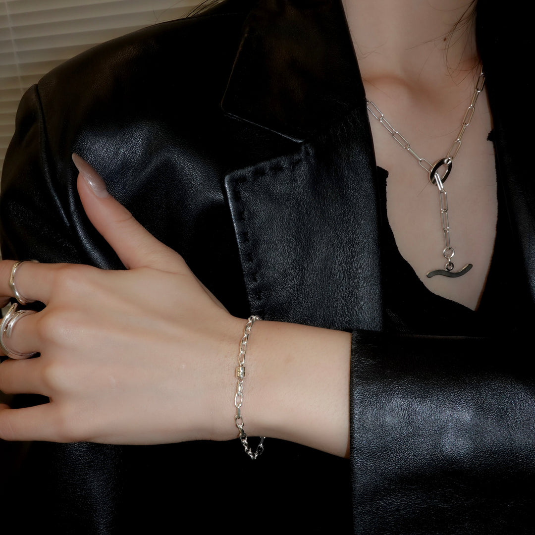 スクエア、ラウンド、ダイヤモンド、多彩なフォルム が織りなす、遊び心のあるデザインのブレスレット。