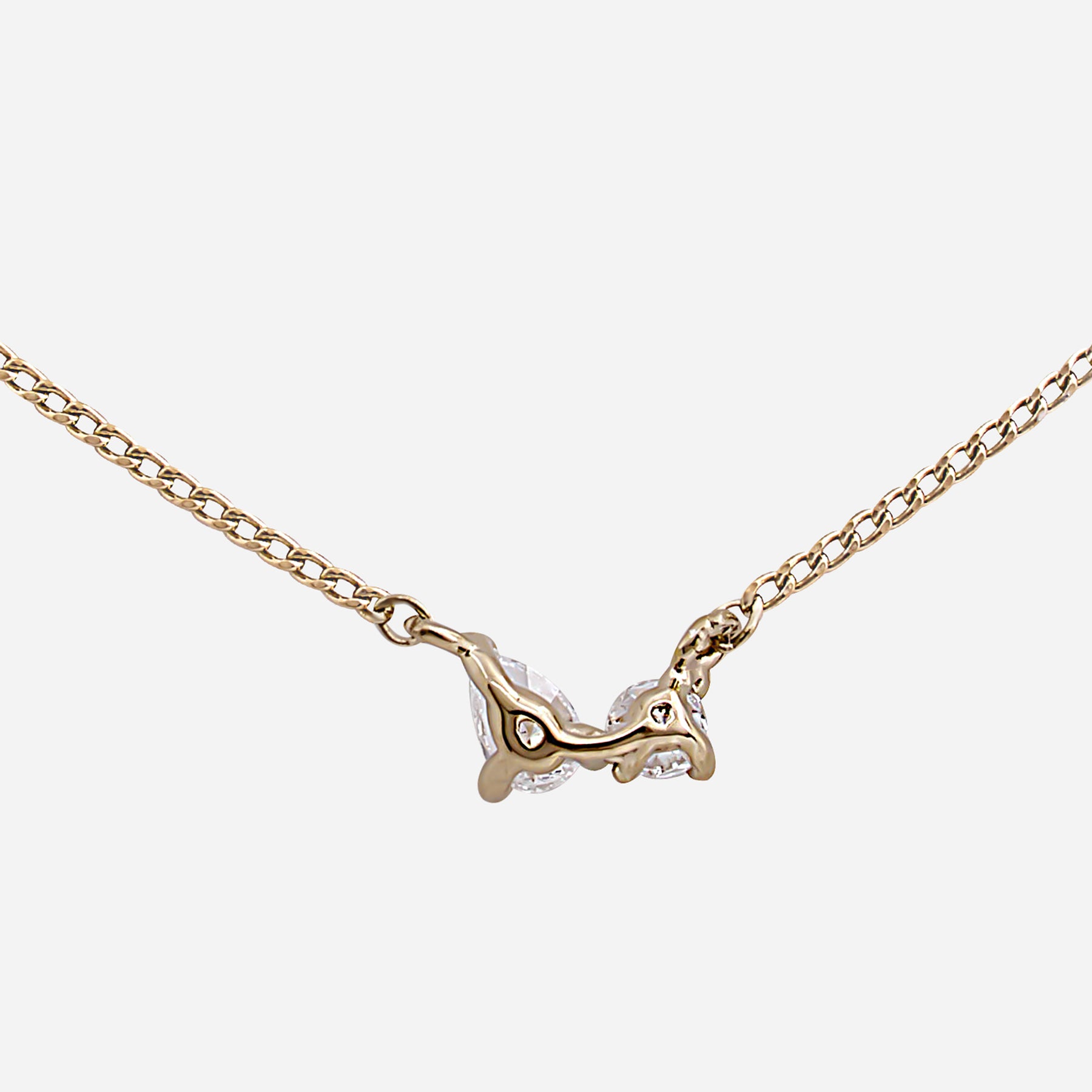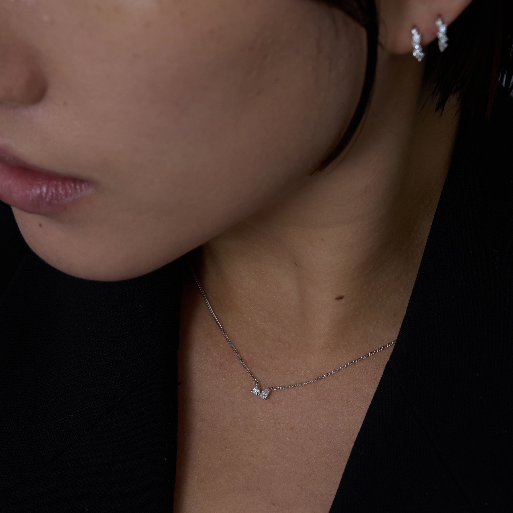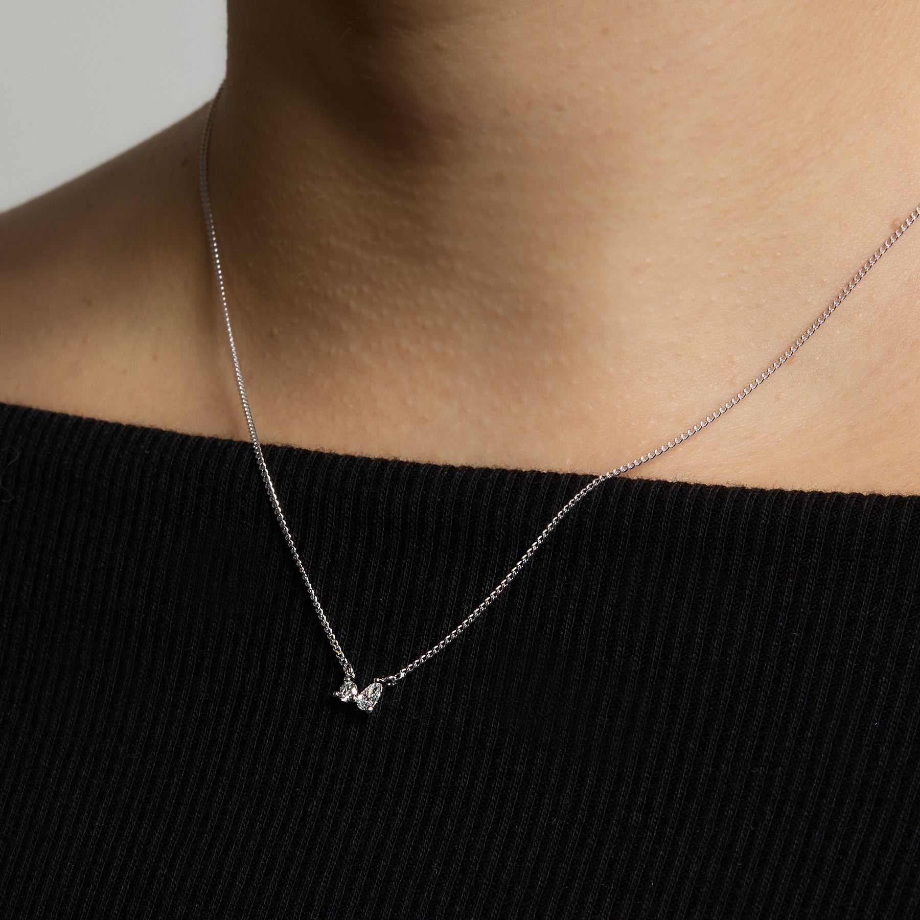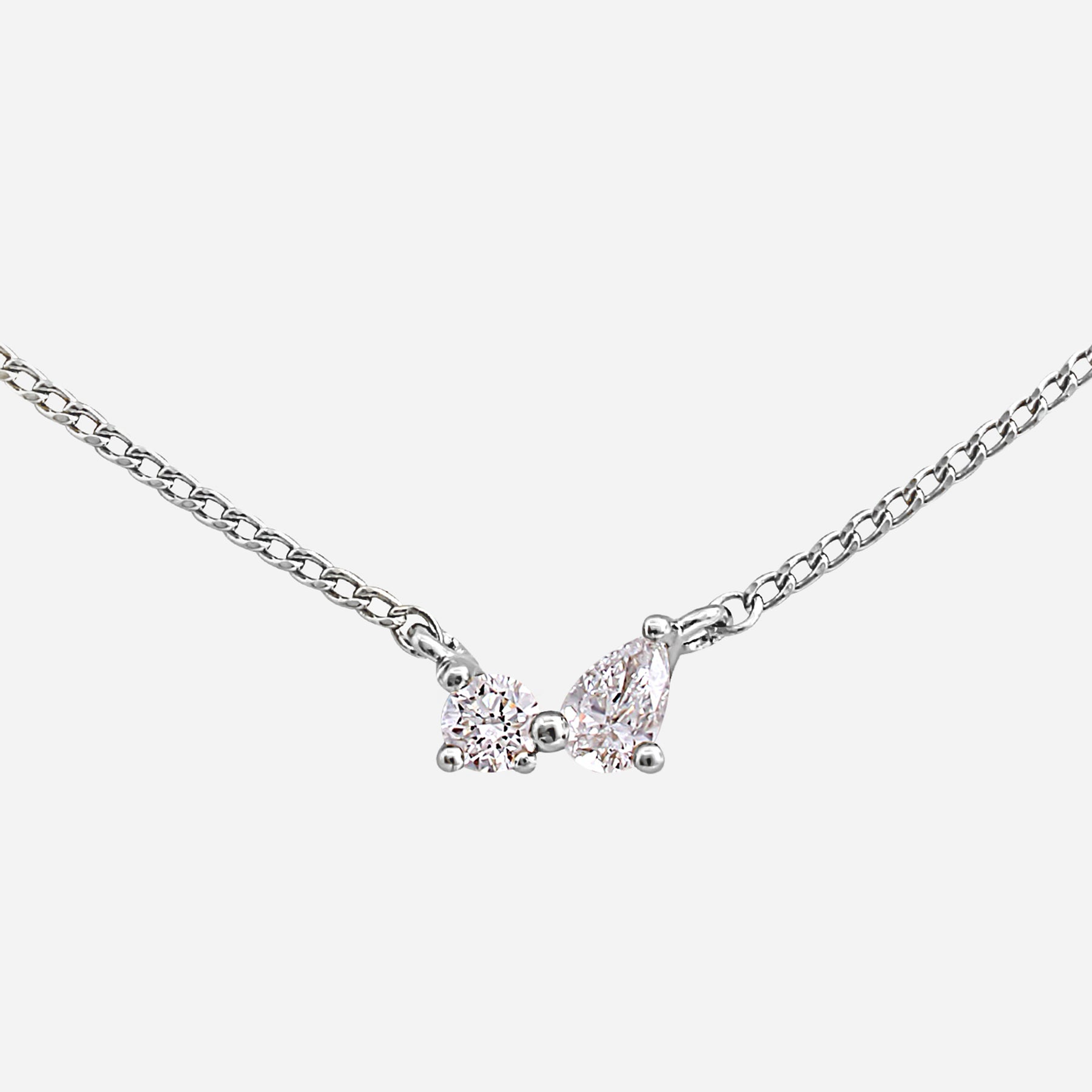 ラウンドとペアシェイプの2粒のモアサナイトが力強く輝くネックレスです。