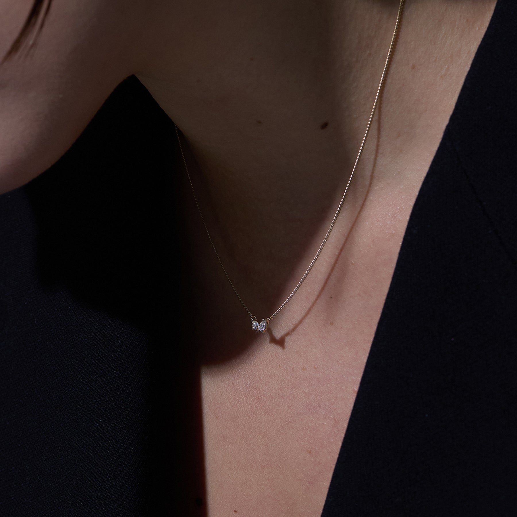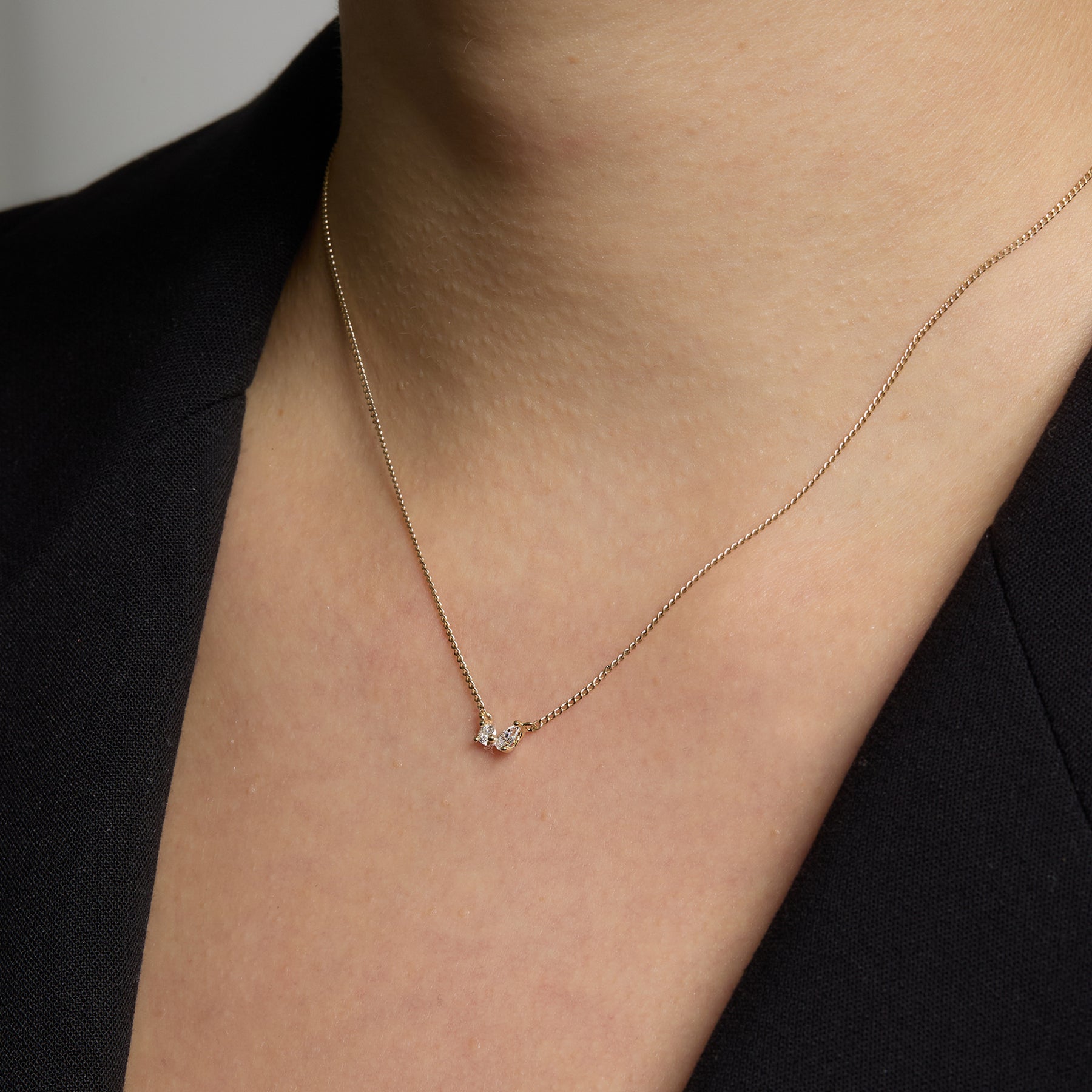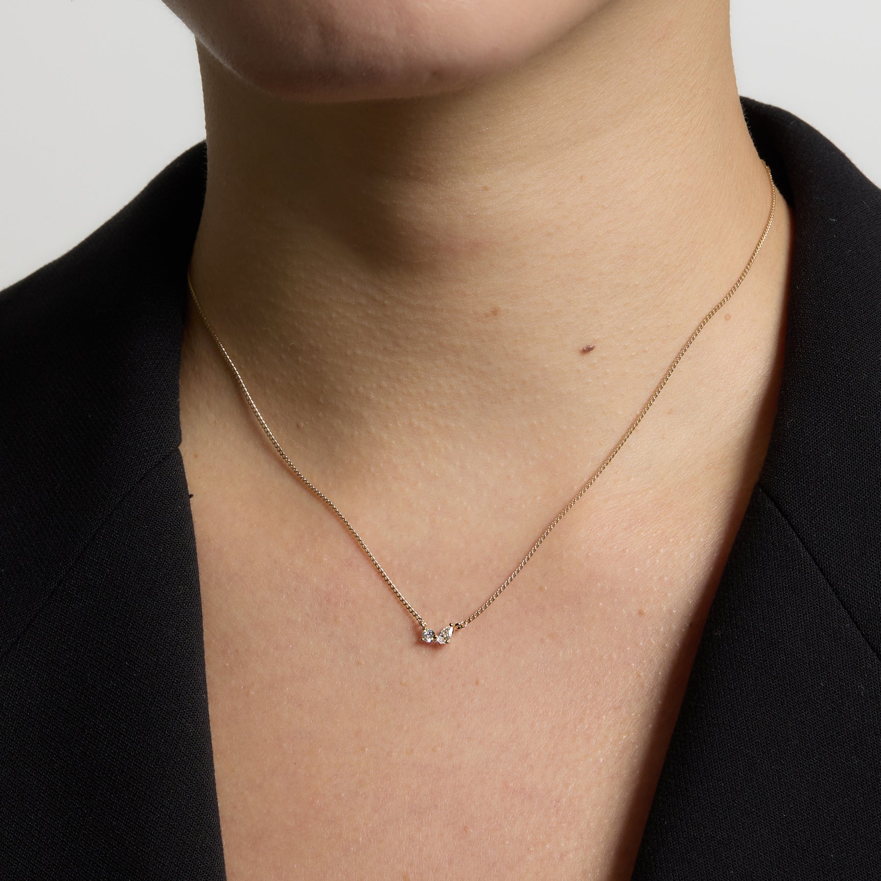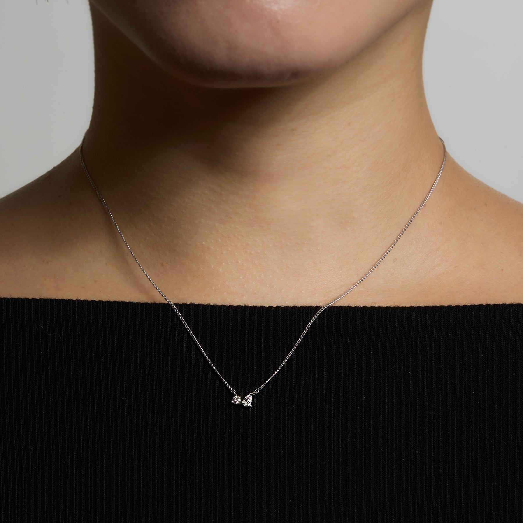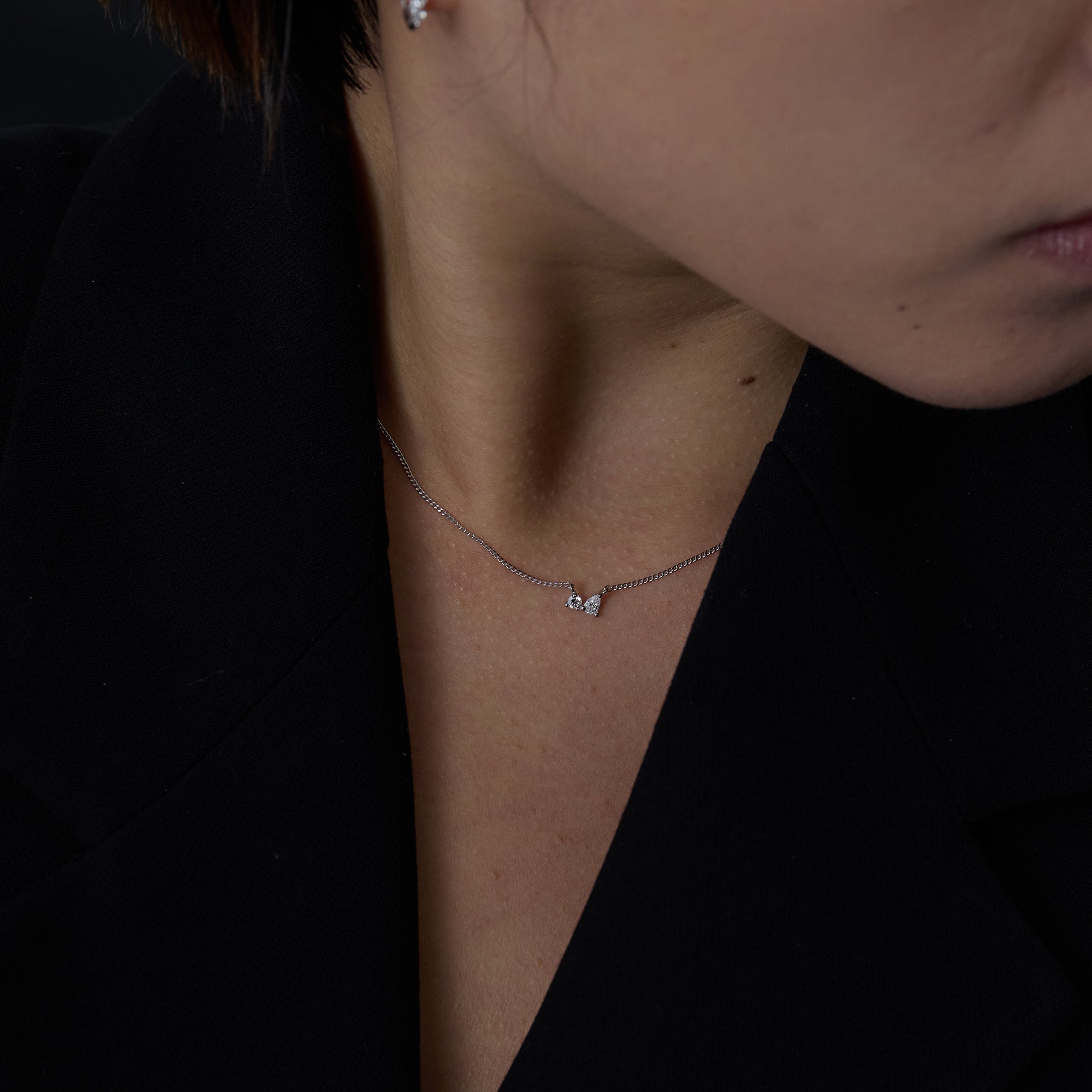 ラウンドとペアシェイプの2粒のモアサナイトが力強く輝くネックレスです。