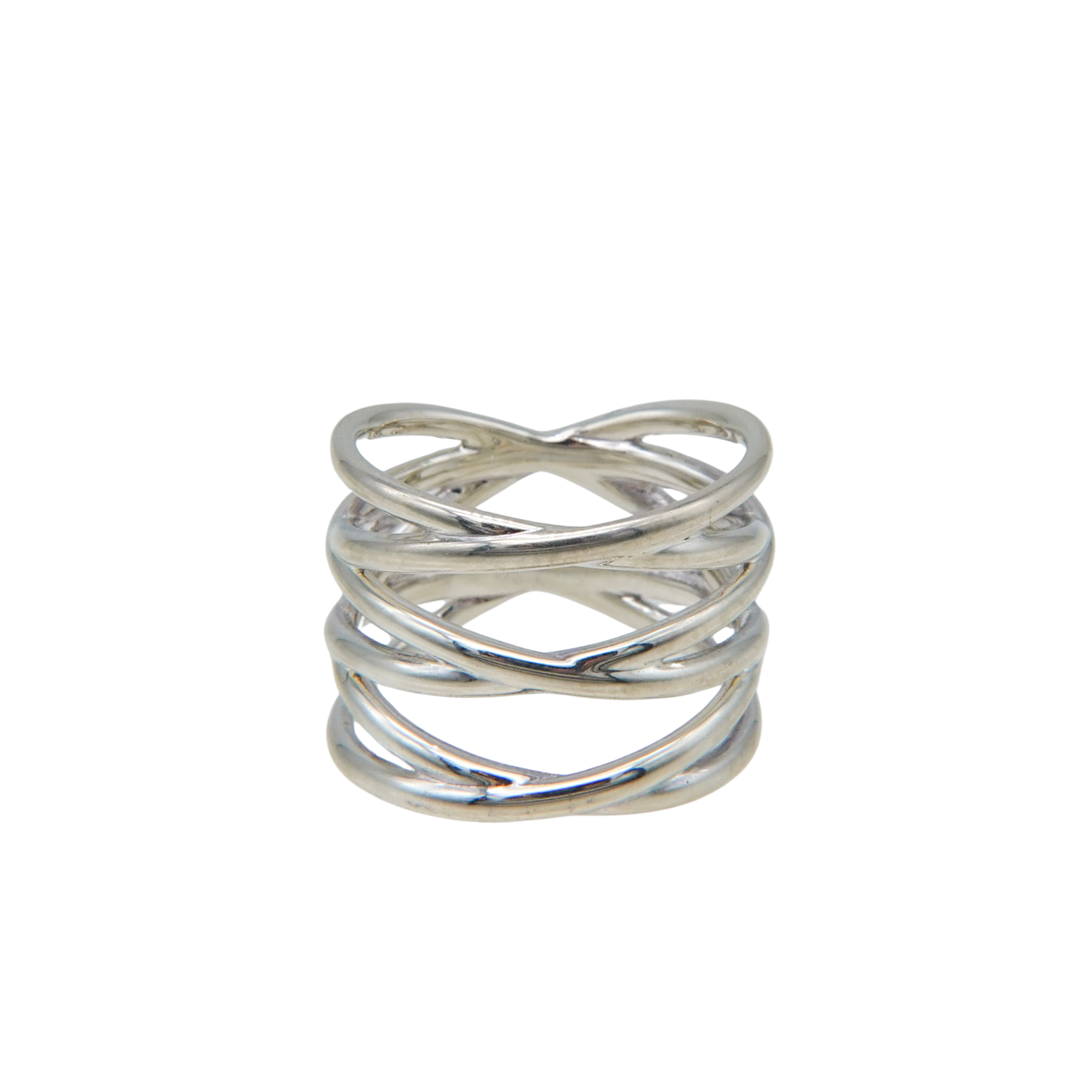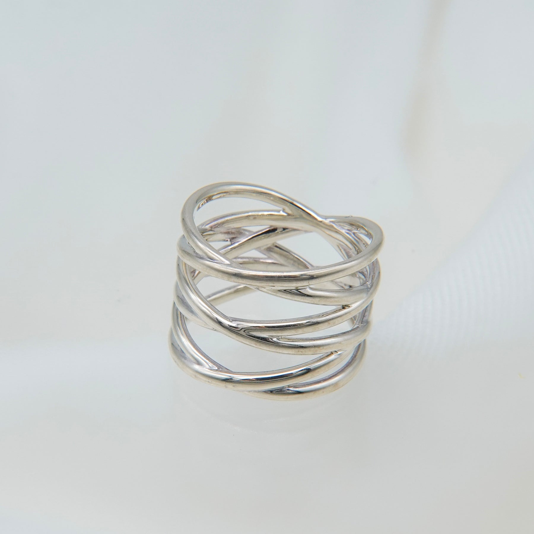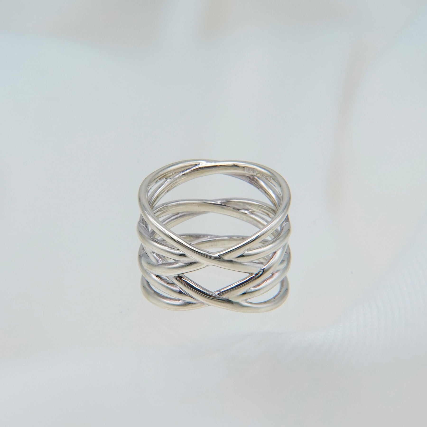 コルセットのレースアップを表現したファランジリング。指元を引き締めるように繊細に編み込まれたデザインは、コーディネートにも取り入れやすい仕上がり。幅広でスタイリッシュな存在感を放ちます。