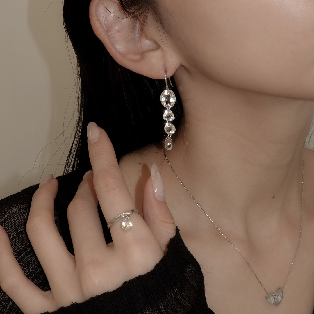 オーバル、ラウンド、トリリアンシェイプのホワイトトパーズを組み合わせたキャンディのようなピアス。