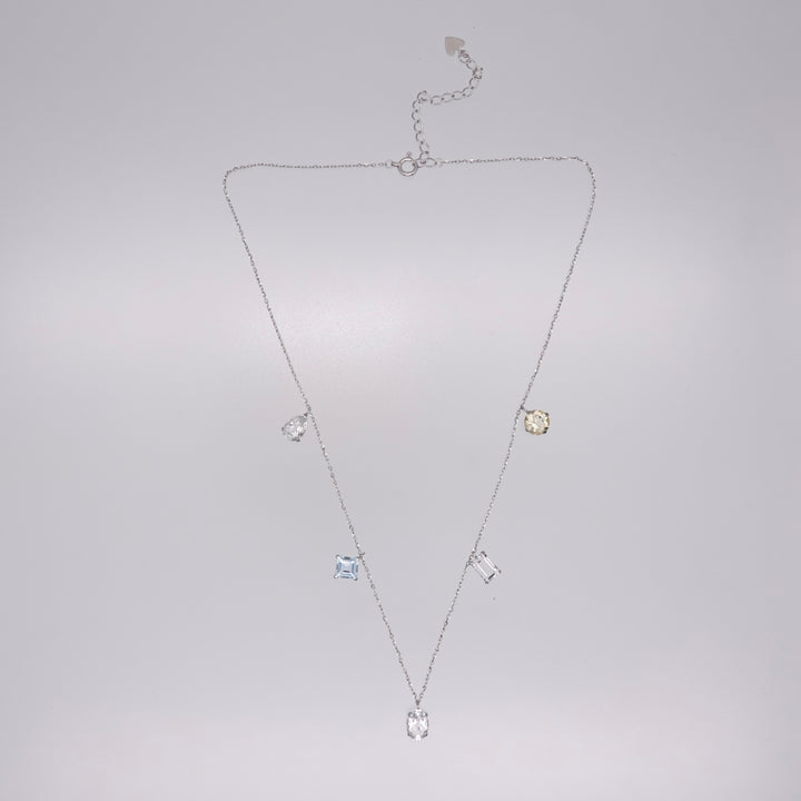 STARRY NECKLACE_10KWG x Lemon Quartz x White Topaz x Blue Topaz