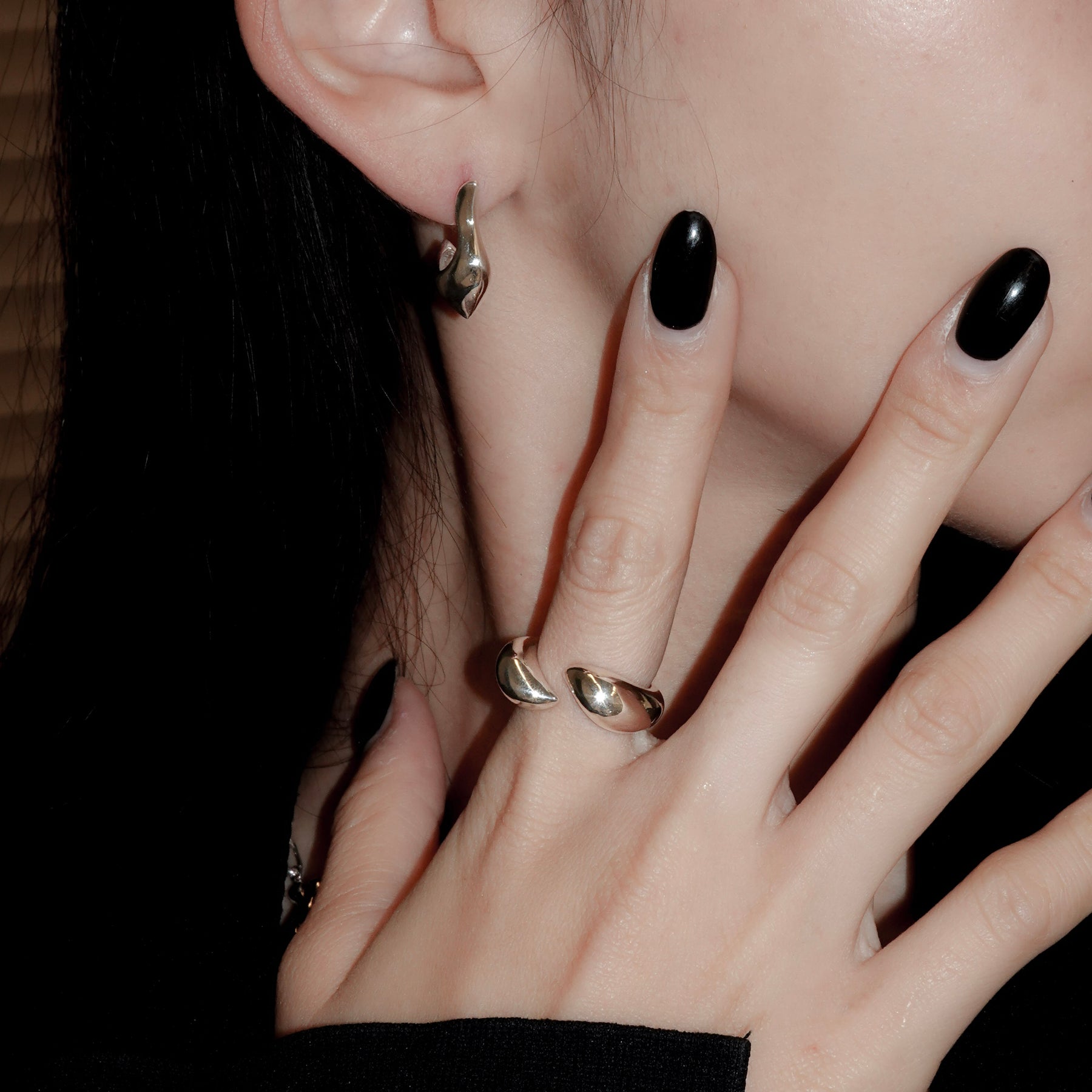 妖しい光を纏う牙と棘のフェティッシュな造形美により、光の軌跡を描くようなフォルムが特徴のピアスです。