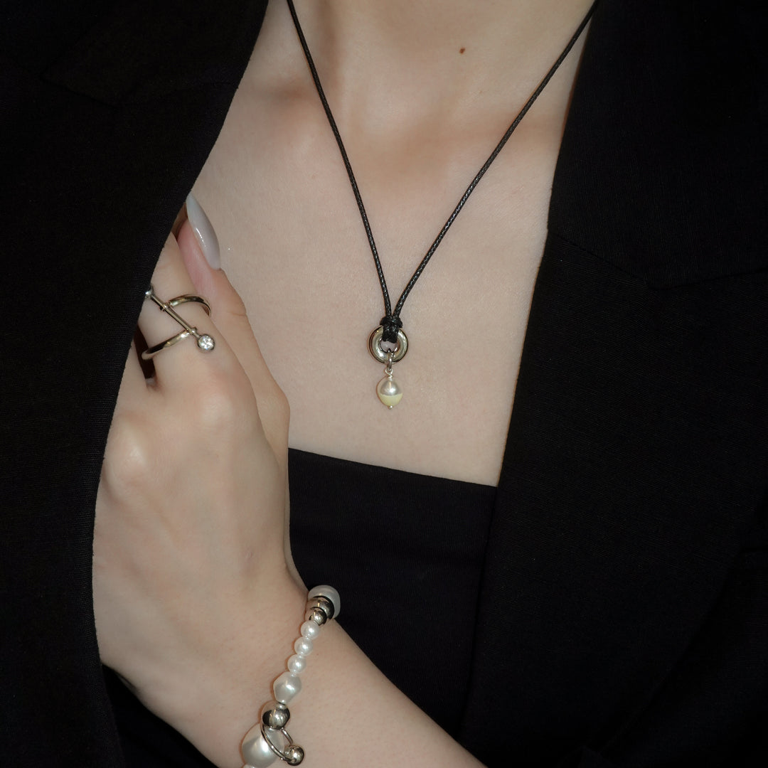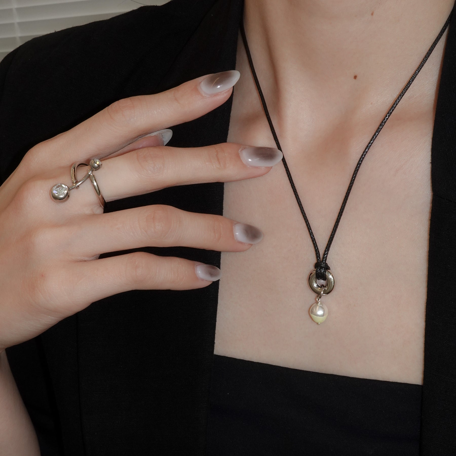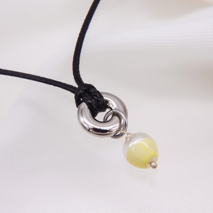 クリスタルパールの半分がイエローにカラーリングされたコードネックレス。