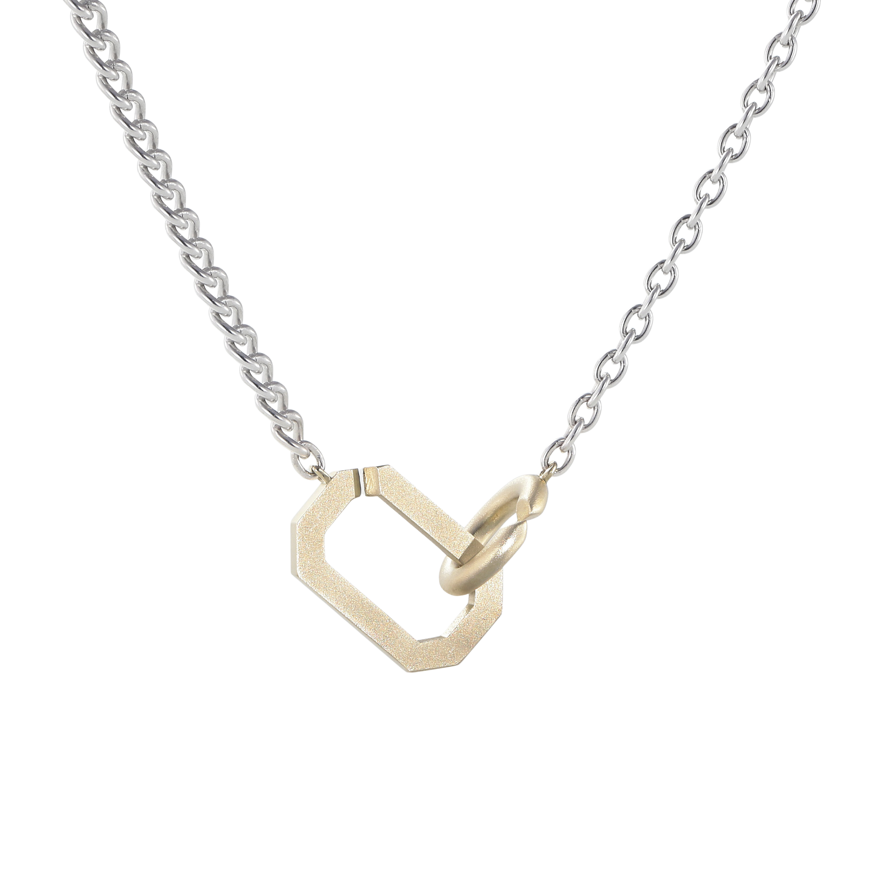 フレキシブルなネックレス。シルバーのチェーンにゴールドの落ち着いた輝きがプラスされ色々な角度で楽しめます。ゴールドのパーツには、細部にこだわる職人技が詰まっています。