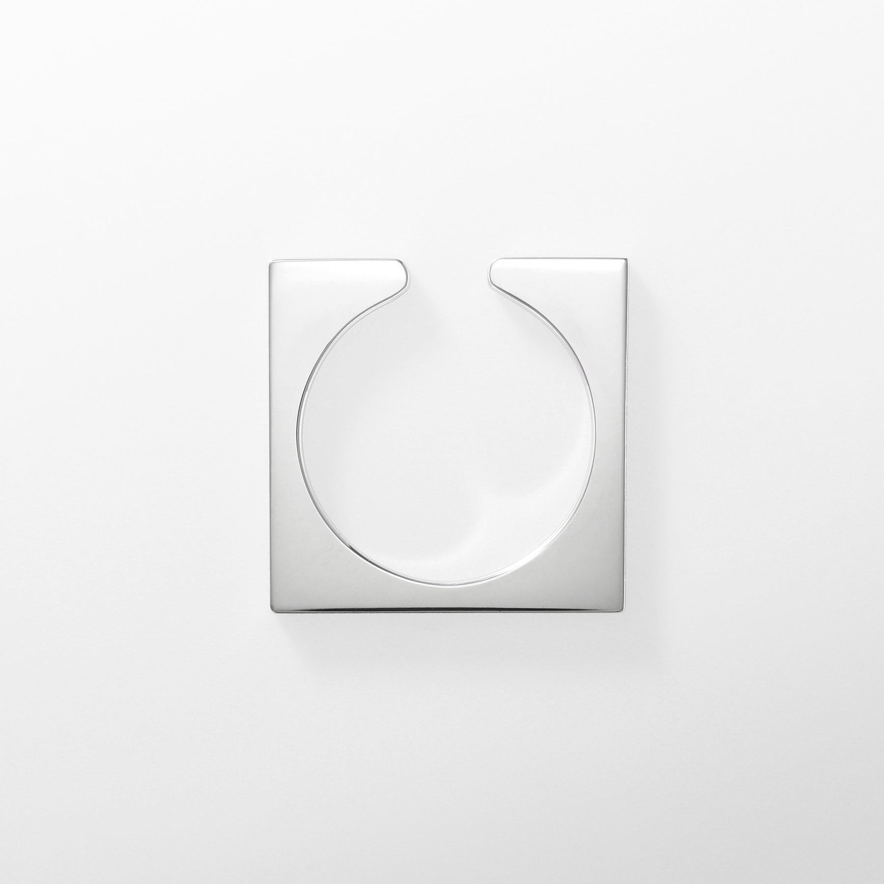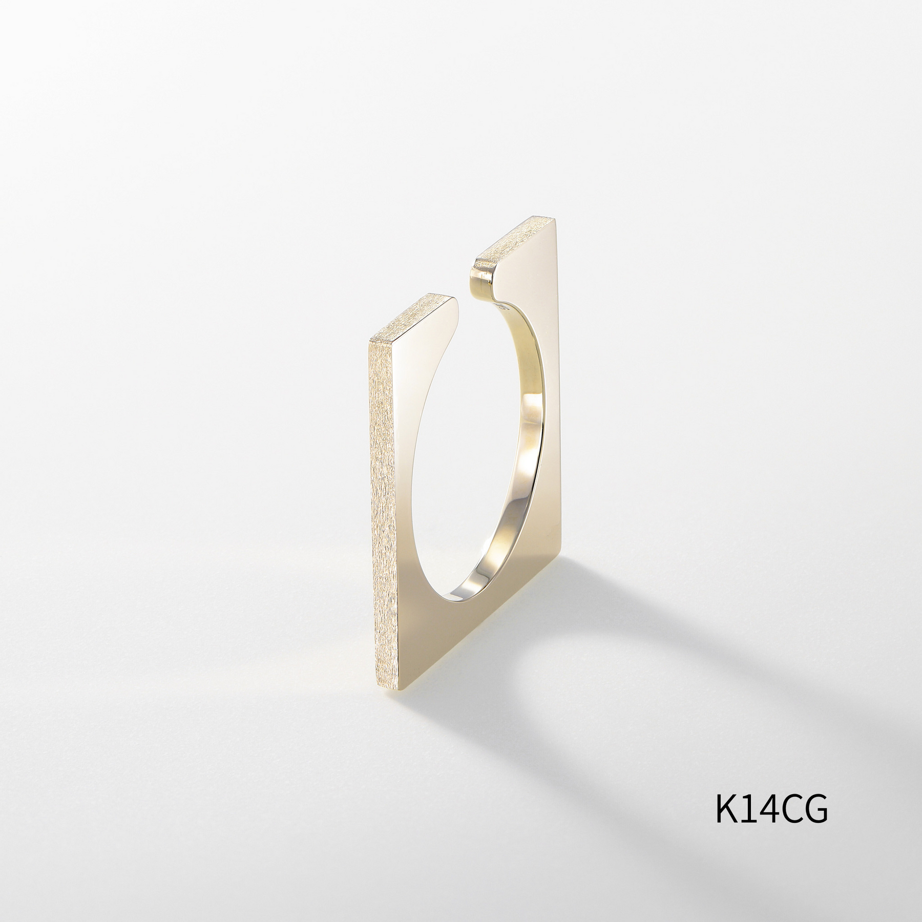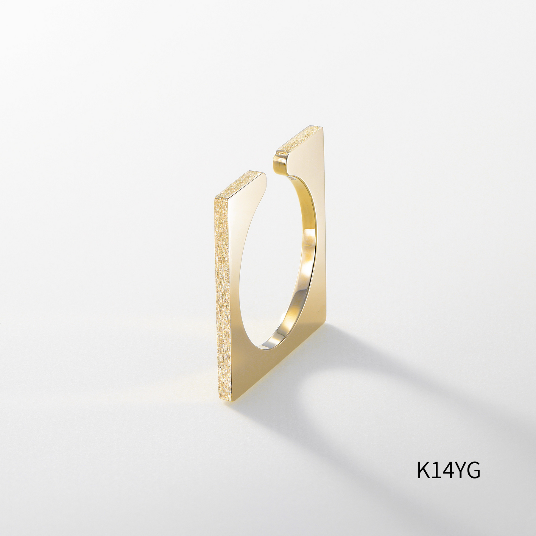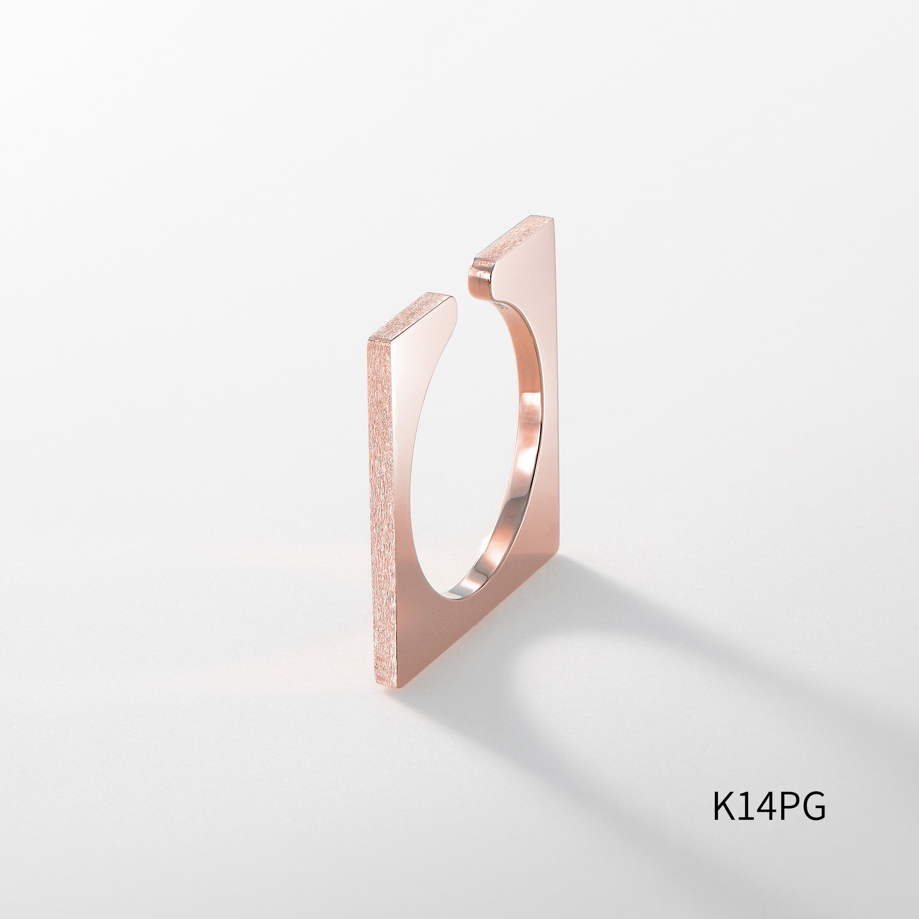 四角の中に丸く開いたmarushikakuのイヤカフ。