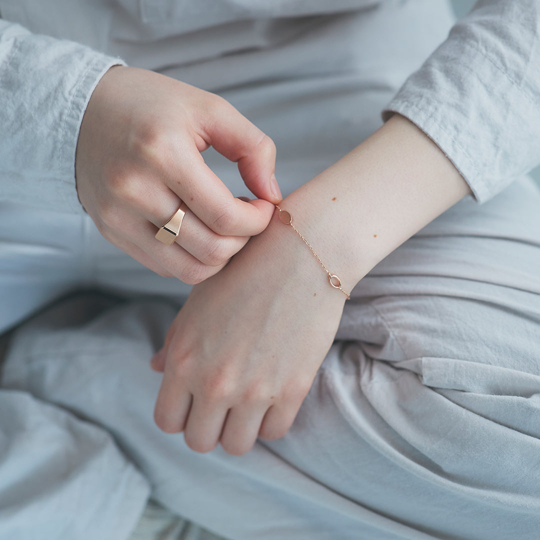 シンプルで日常に溶け込むデザインと、一流の職人たちによるこだわり抜かれたやわらかなカーブ、繊細な輝き、身体により添う着け心地を味わうことができる。