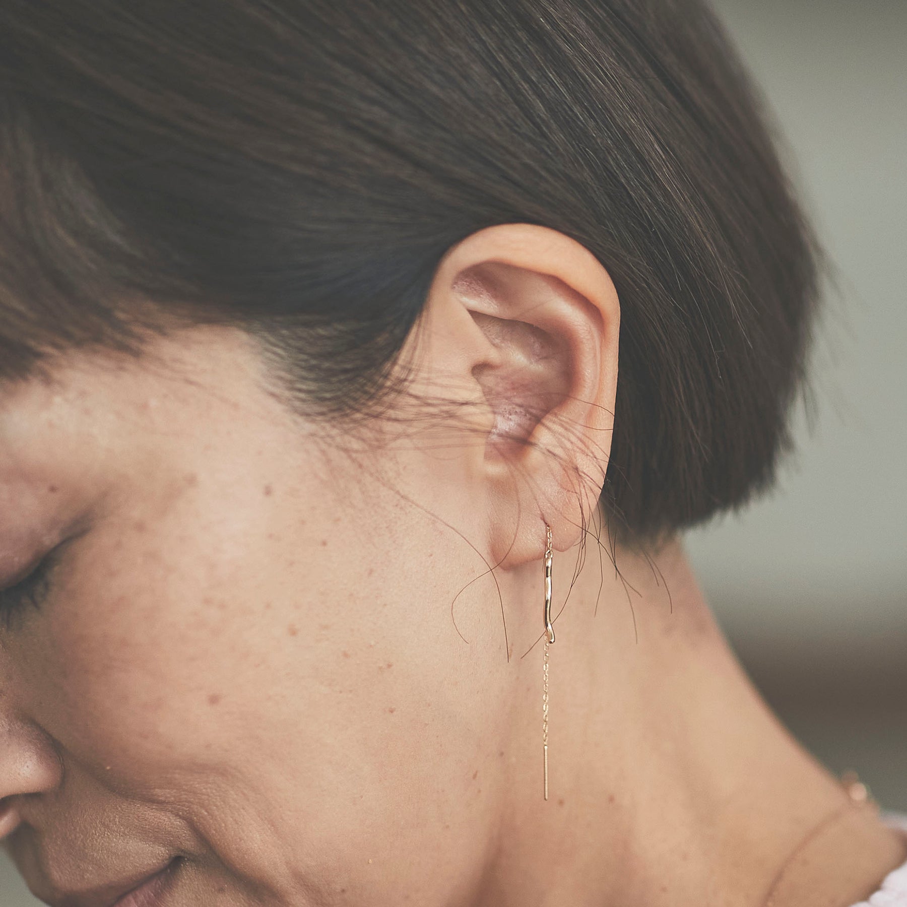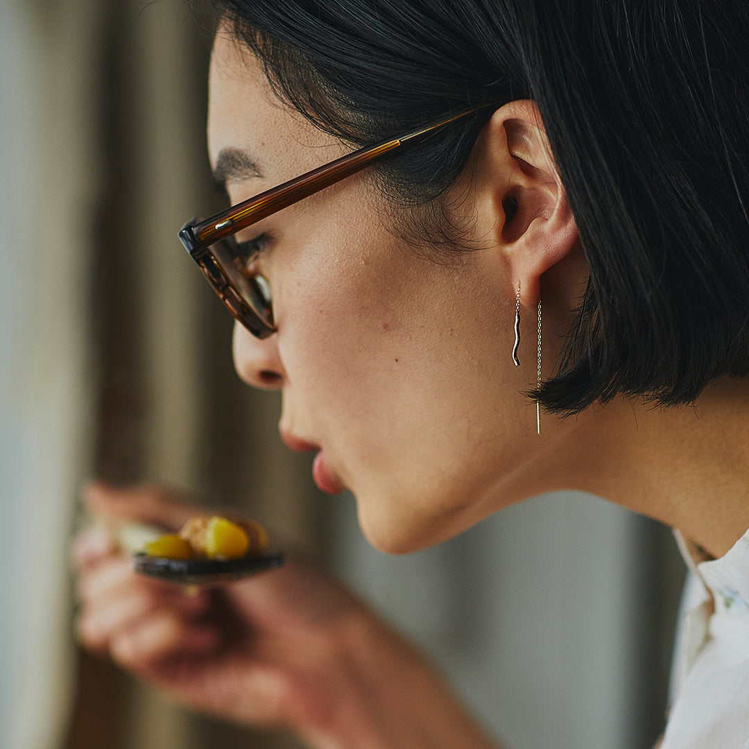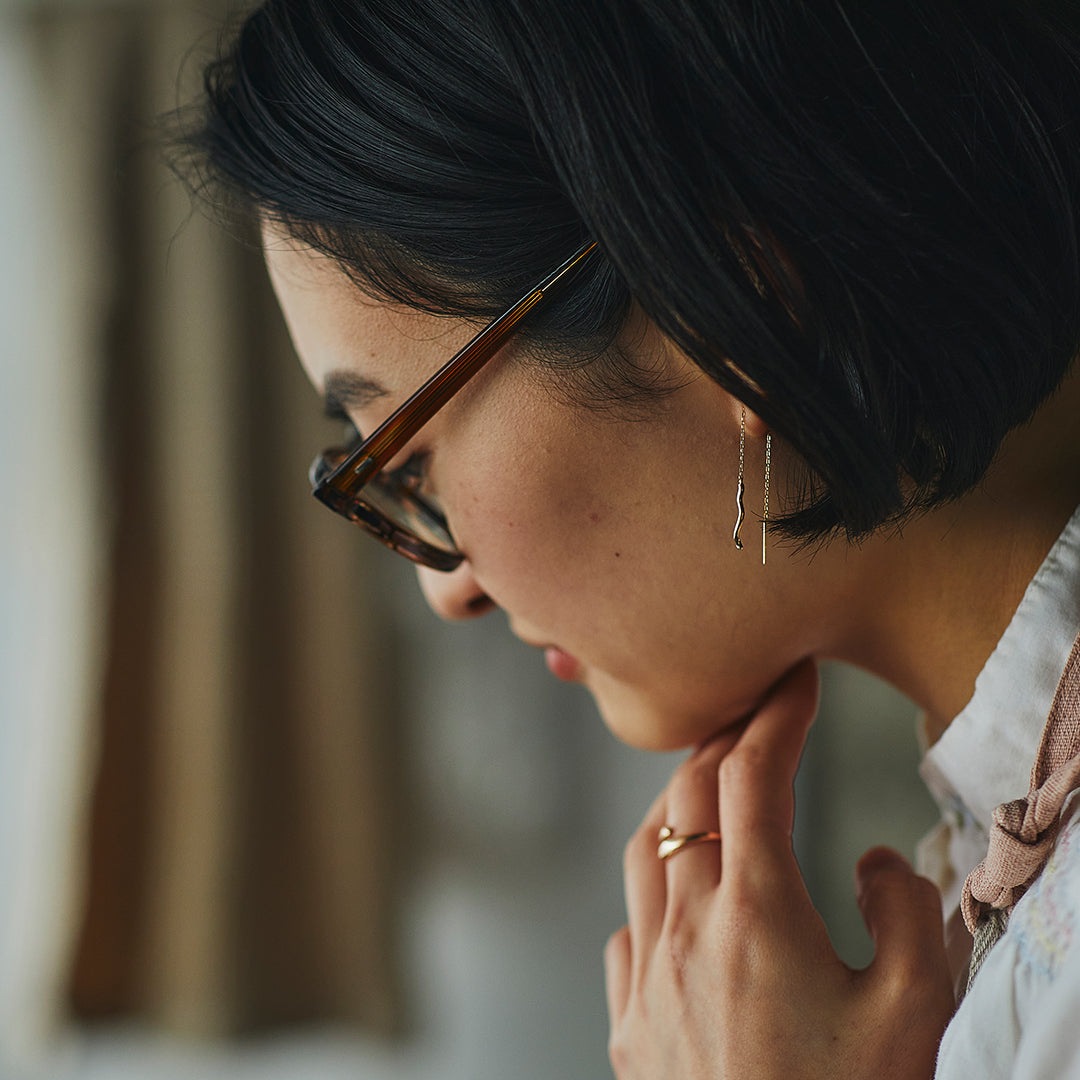 有機的なラインが美しく輝くアメリカンタイプのピアス。前と後ろの長さを変えることで、表情も変わります。自分らしいお気に入りの位置で楽しんで。