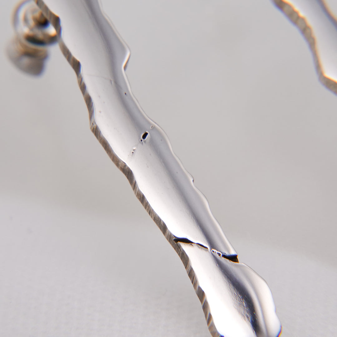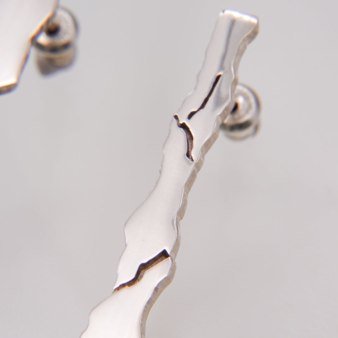 Crackのシリーズは「罅」に着想し、シルバーに意図的に描いた罅の線を、パズルのように組み合わせるような方法で制作しております。