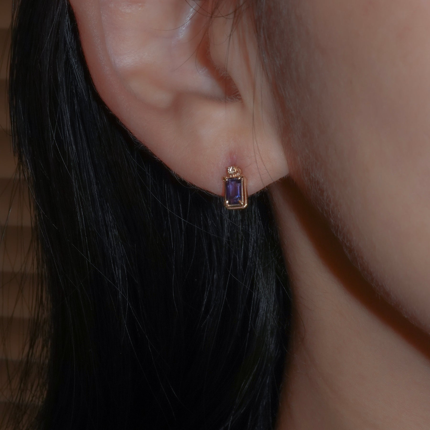 一粒ダイヤモンドのシンプルなスタッドピアス。同ブランドとのトップの組み合わせがおすすめ。