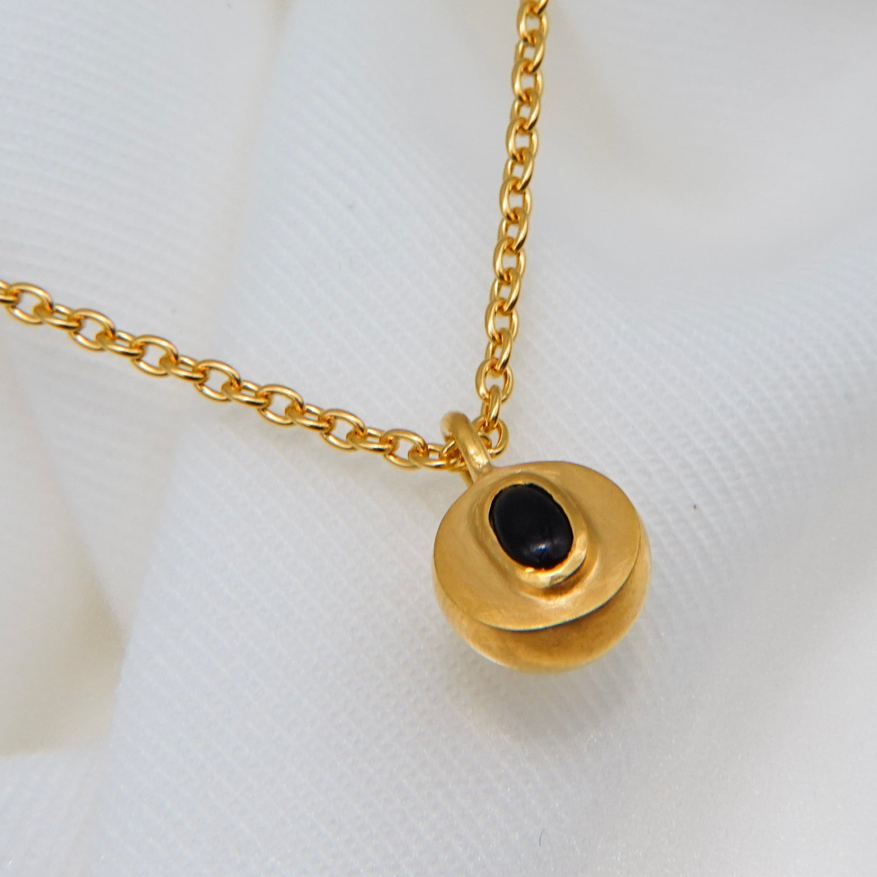 球体を切り落したようなユニークな形のトップを一部マットに仕上げ、ストーンをあしらったペンダントタイプのネックレス。