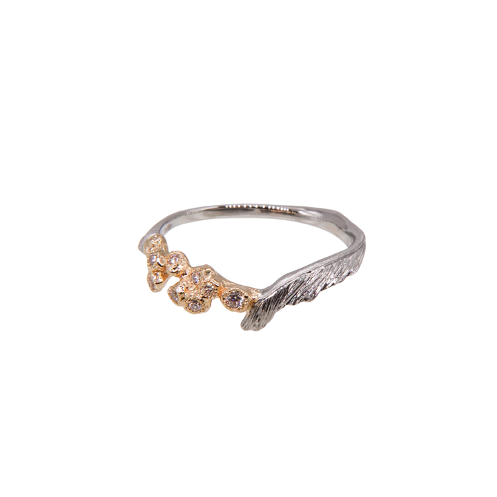 春の訪れを指先に感じさせる、ミモザをモチーフにしたリング。