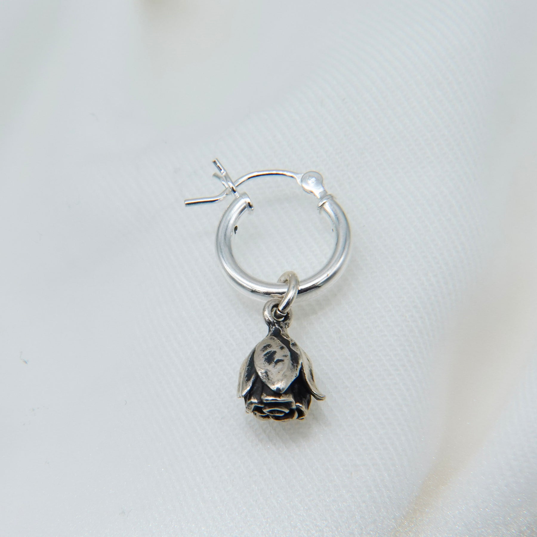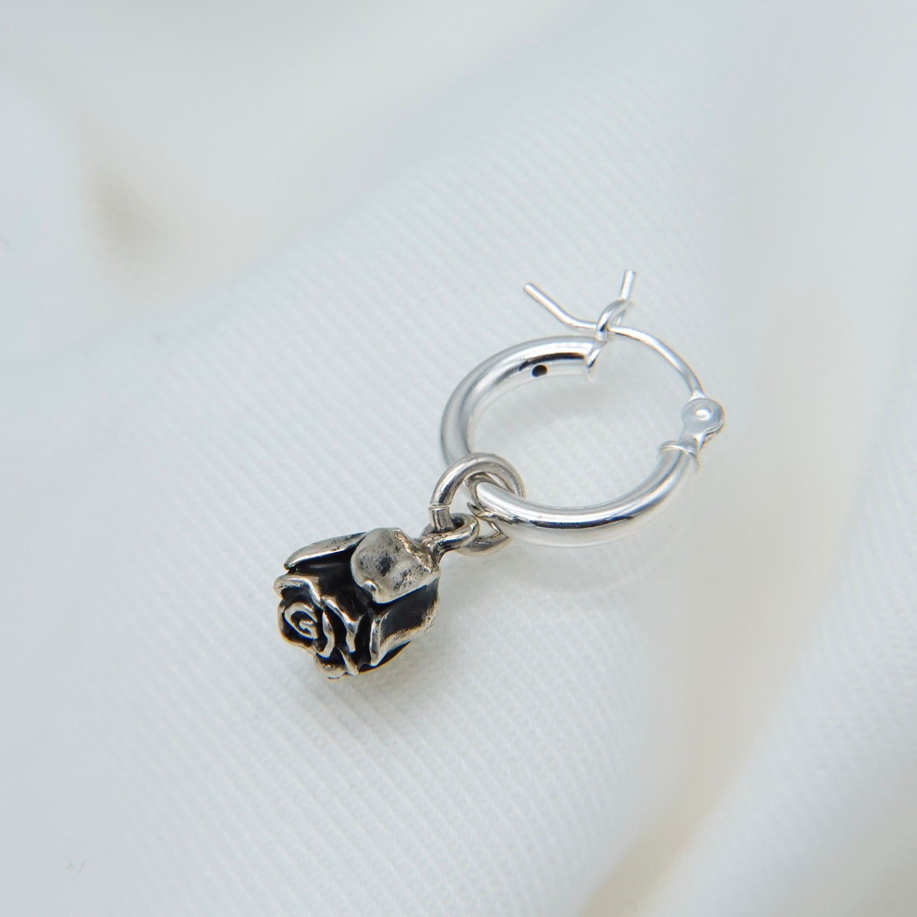 薔薇のチャームと、フープピアスがセットになっており、取り外しが可能です。