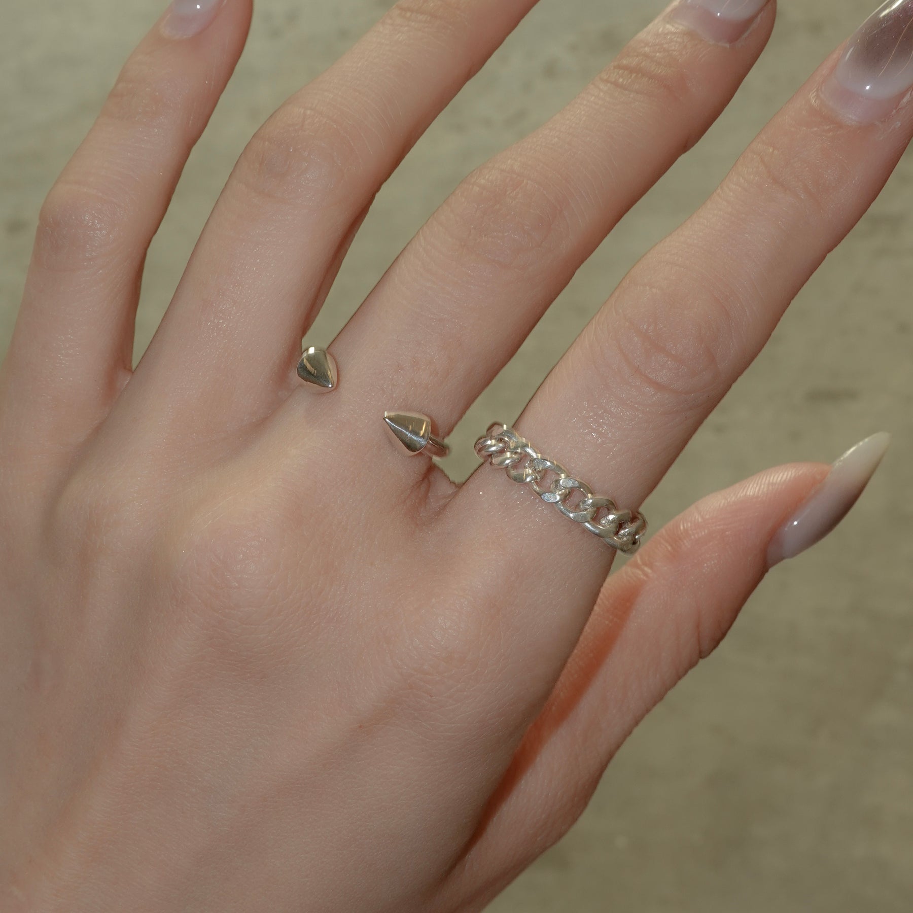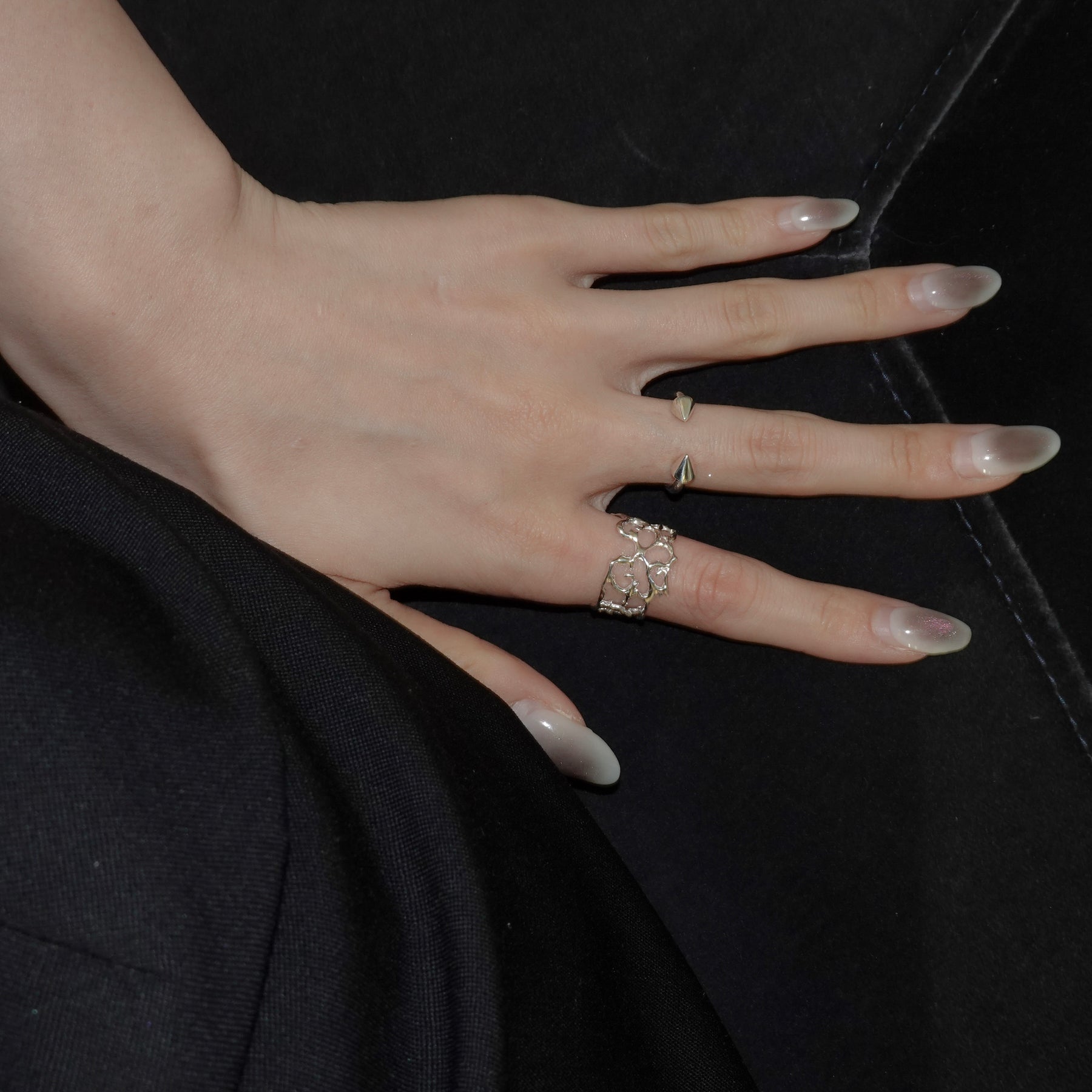 ボディピアスがモチーフになったリング。優しく力を加えて開閉しサイズ調整いただけます。
