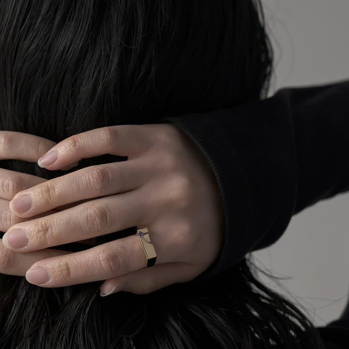 厳しい美しさの基準から、廃棄予定・デッドストックとなってしまった宝石を使用したアップサイクルジュエリーコレクション“Torso”。 宝石の傷や欠けからインスピレーションを得た“クラック”デザインは、ひとつひとつ異なる個性を表現して。 波打つラインが特徴的なシグネットリング。 直線と曲線の絶妙なバランスにこだわったデザインです。 【選べるカラーストーン】 スモーキークォーツ / オニキス / ブルームーンストーン / アクアマリン / アイオライト