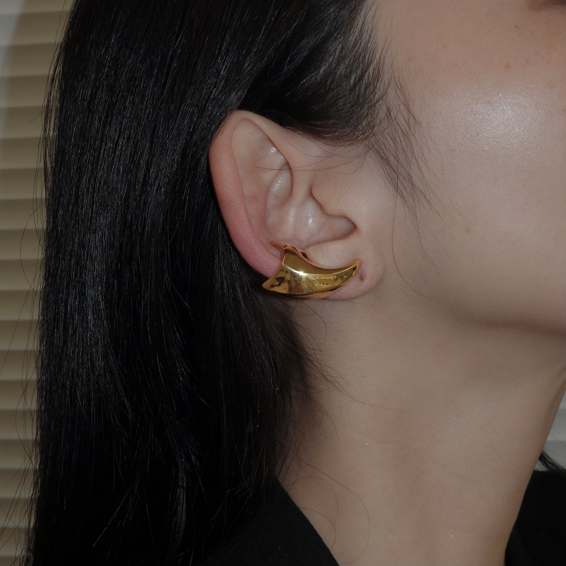 陰影と炎の揺らめきを、エレガントなトライバルモチーフに落とし込んだイヤカフ。