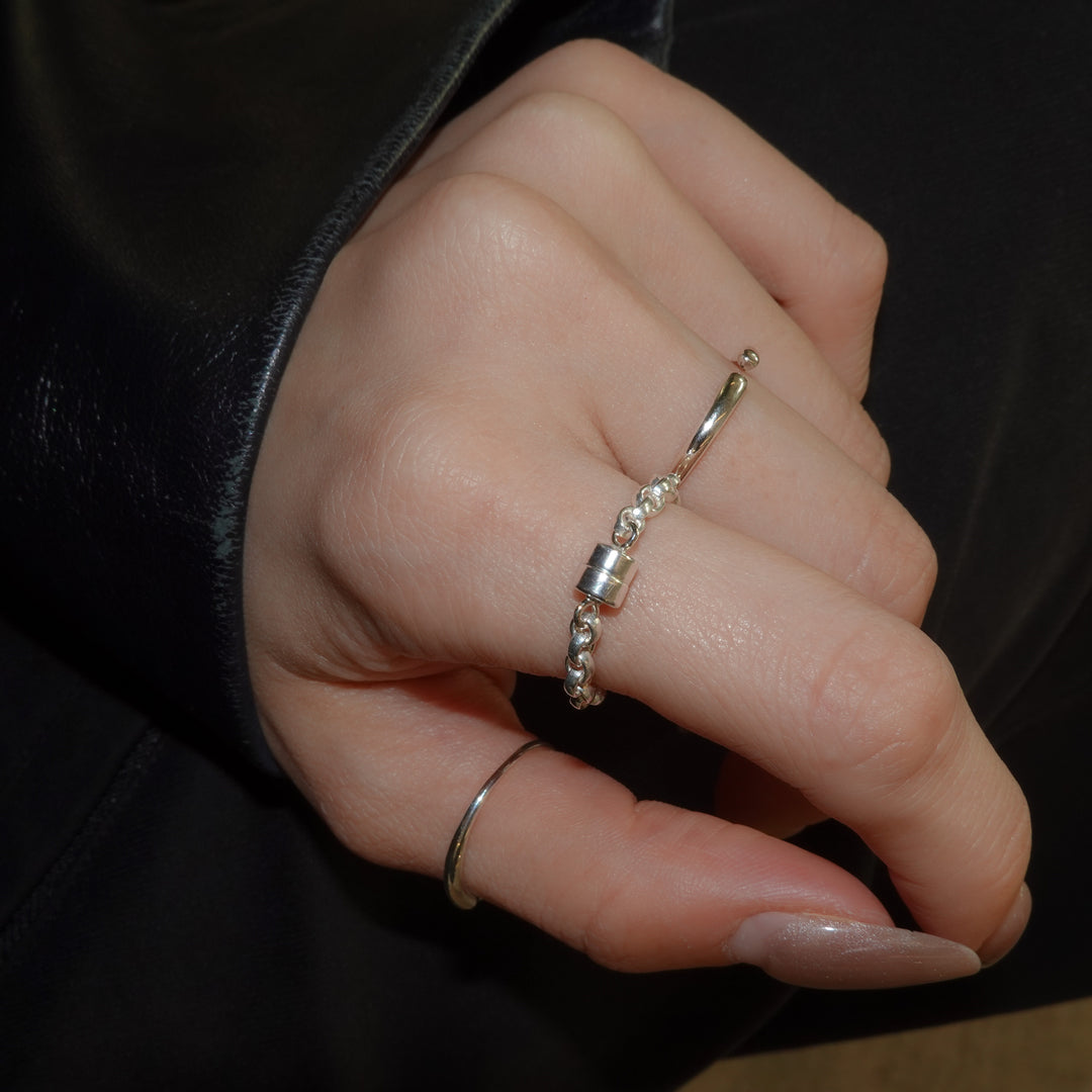 オーバルなチェーンのリング。トップにマグネットパーツを組み合わせたユニークなデザインです。