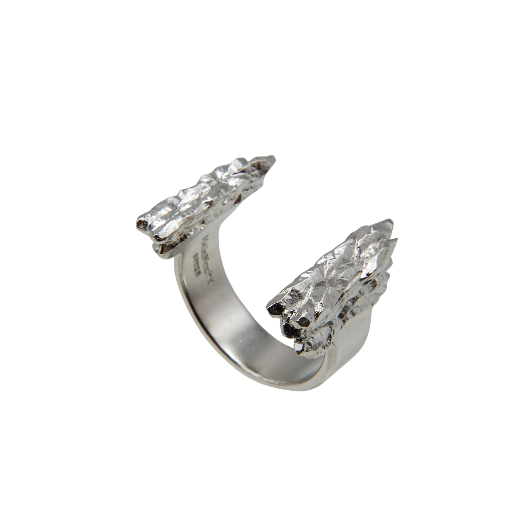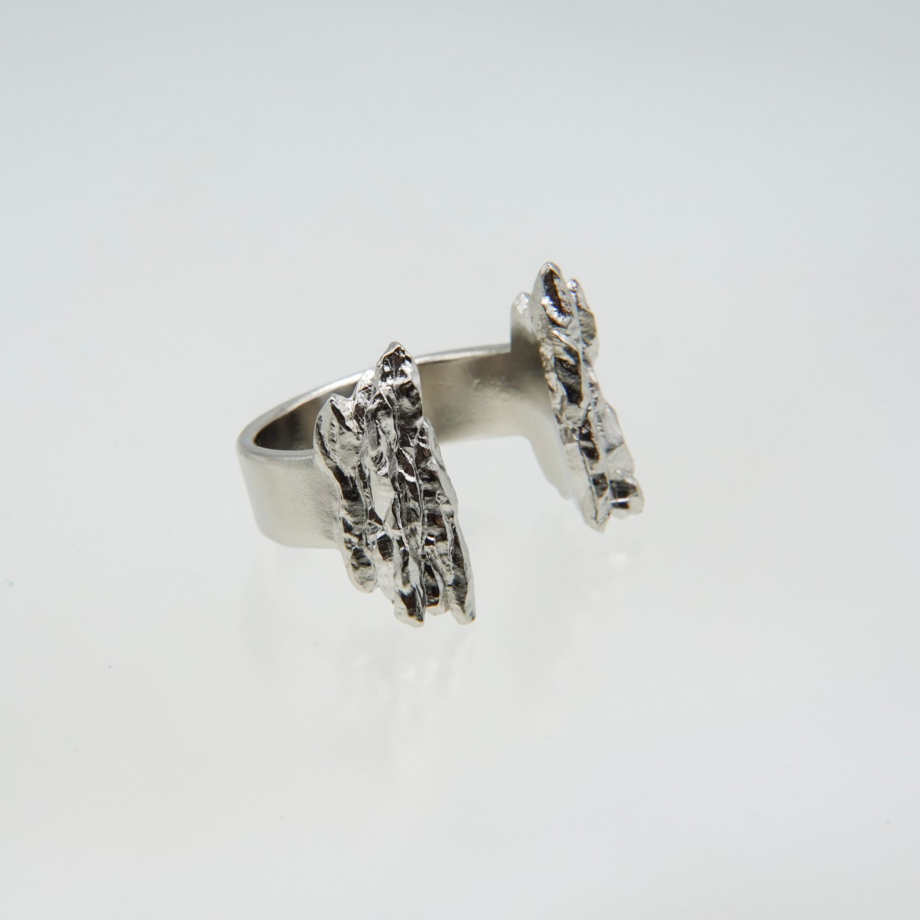 険しい複雑な岩肌が精巧に作られた、崖がモチーフのリング。尖っている方が上になります。