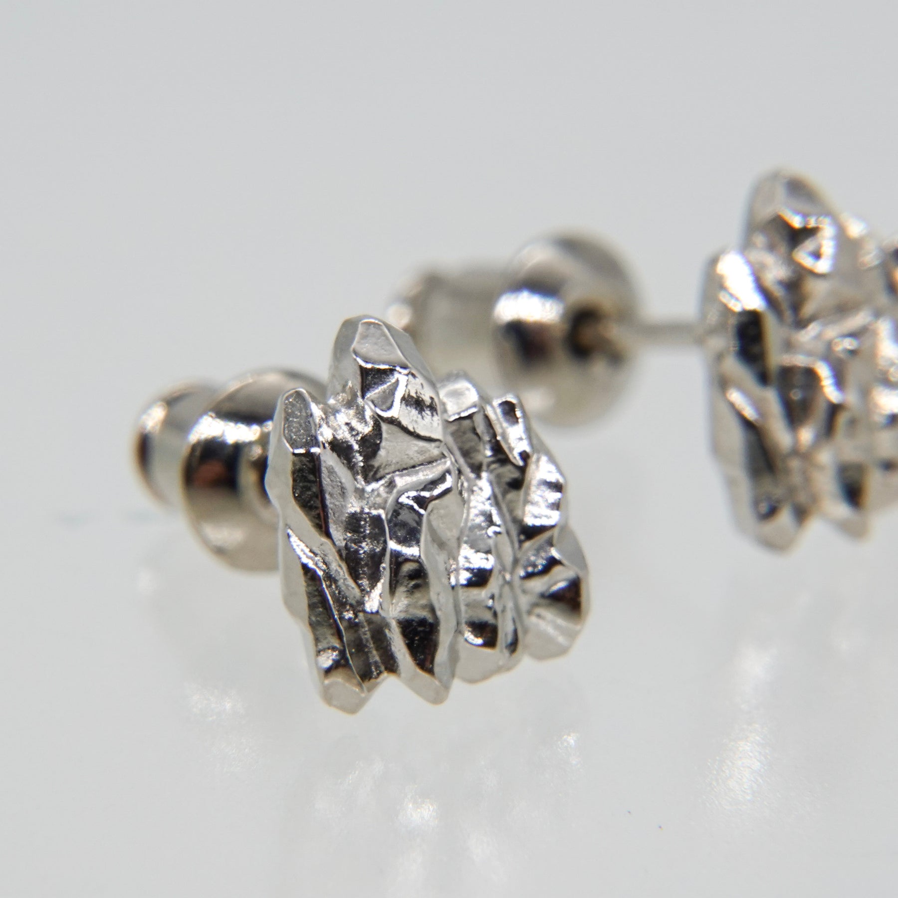 山をモチーフにしたピアス。耳元でキラキラと複雑に光を反射します。