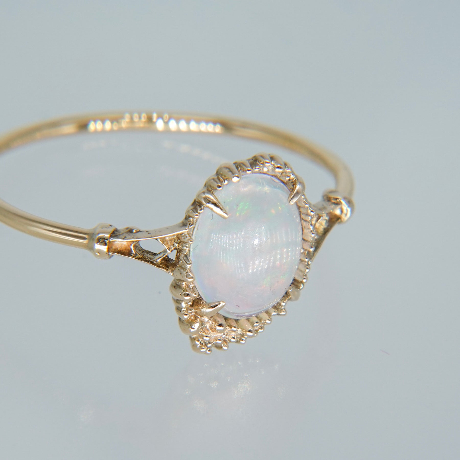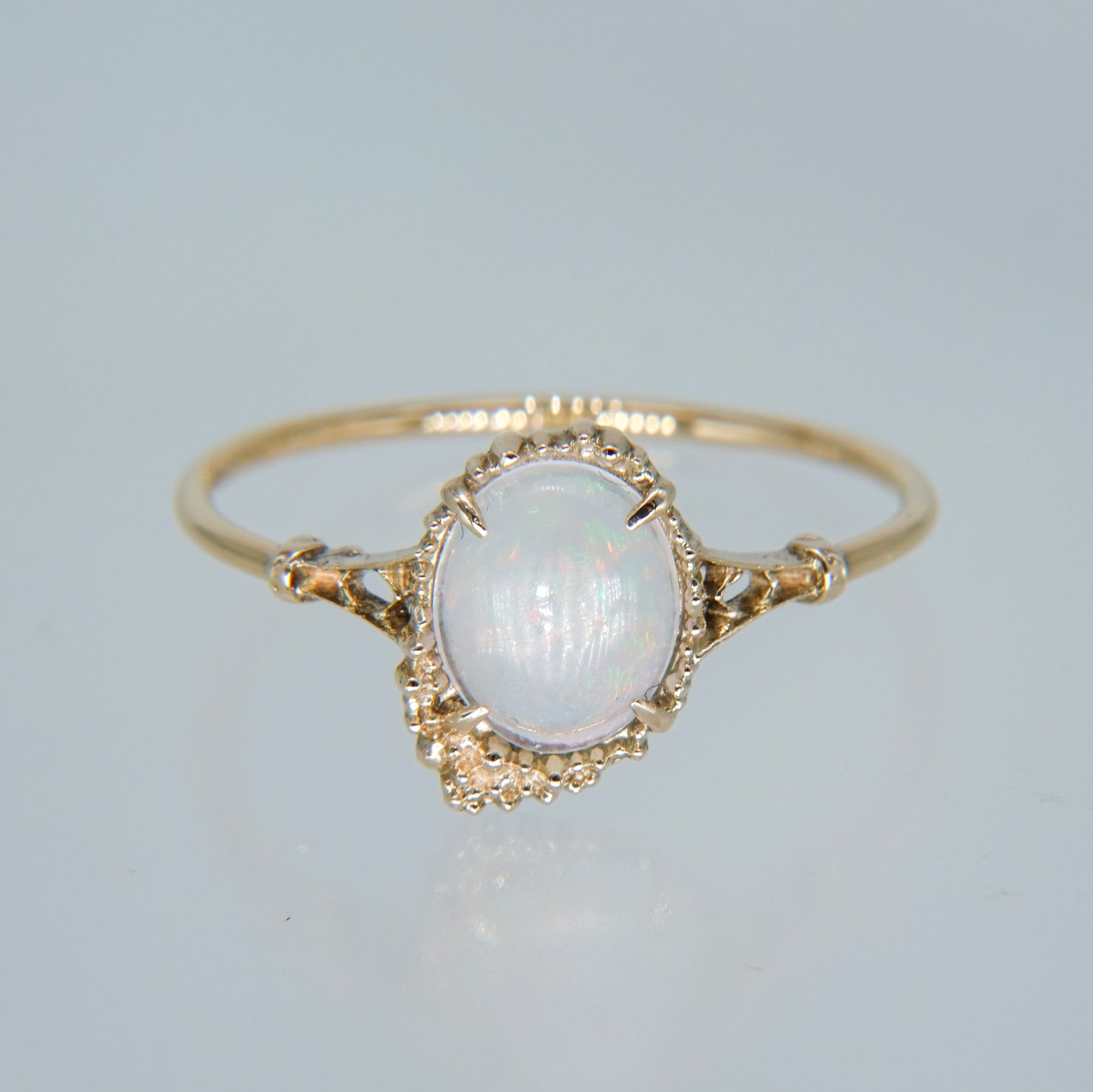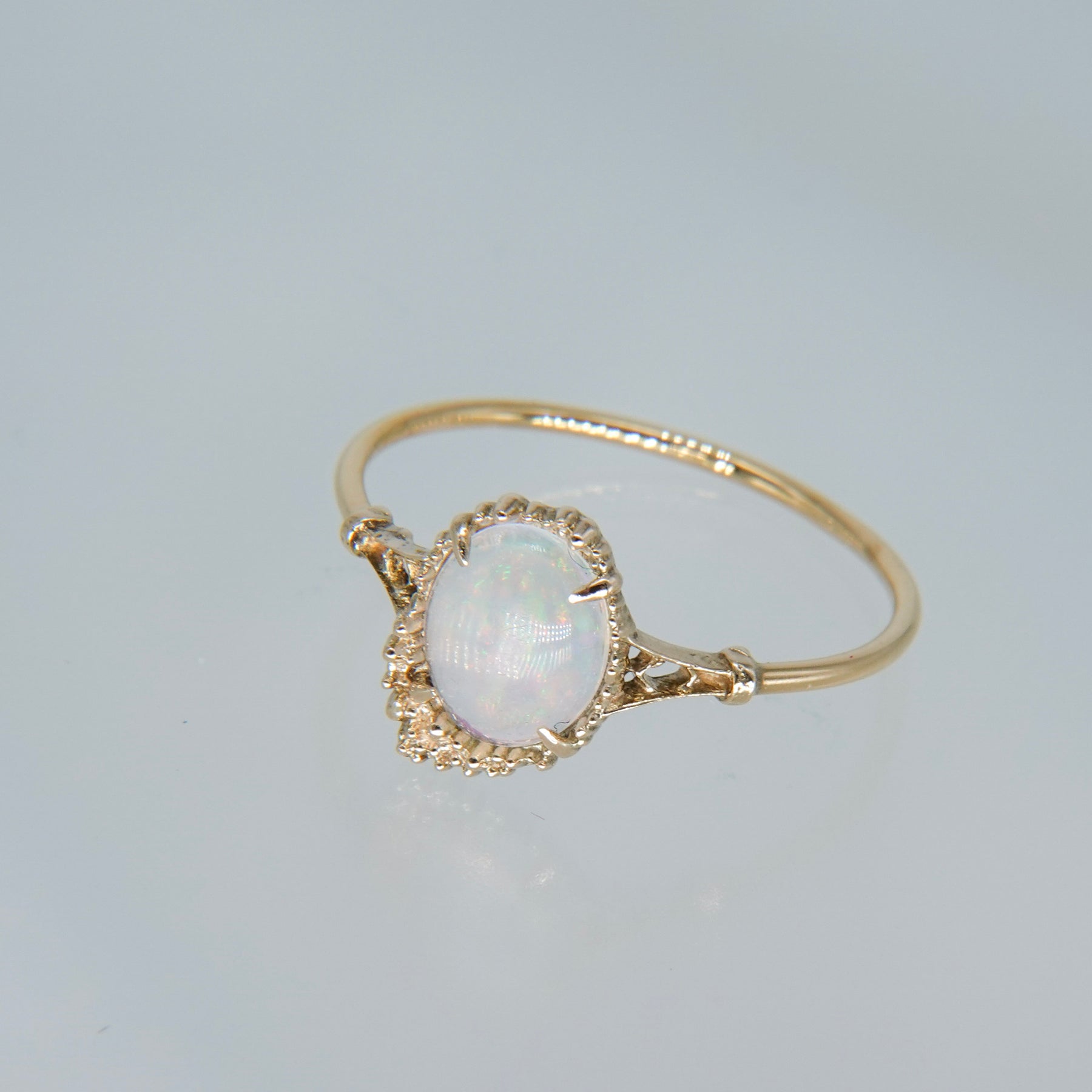 やわらかな乳白色の表情を持つウォーターオパールのリングです。