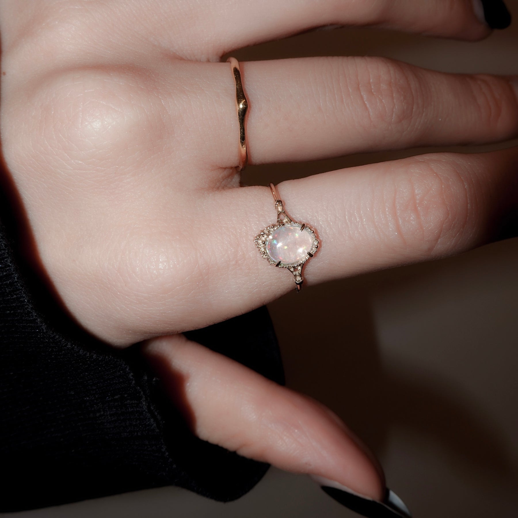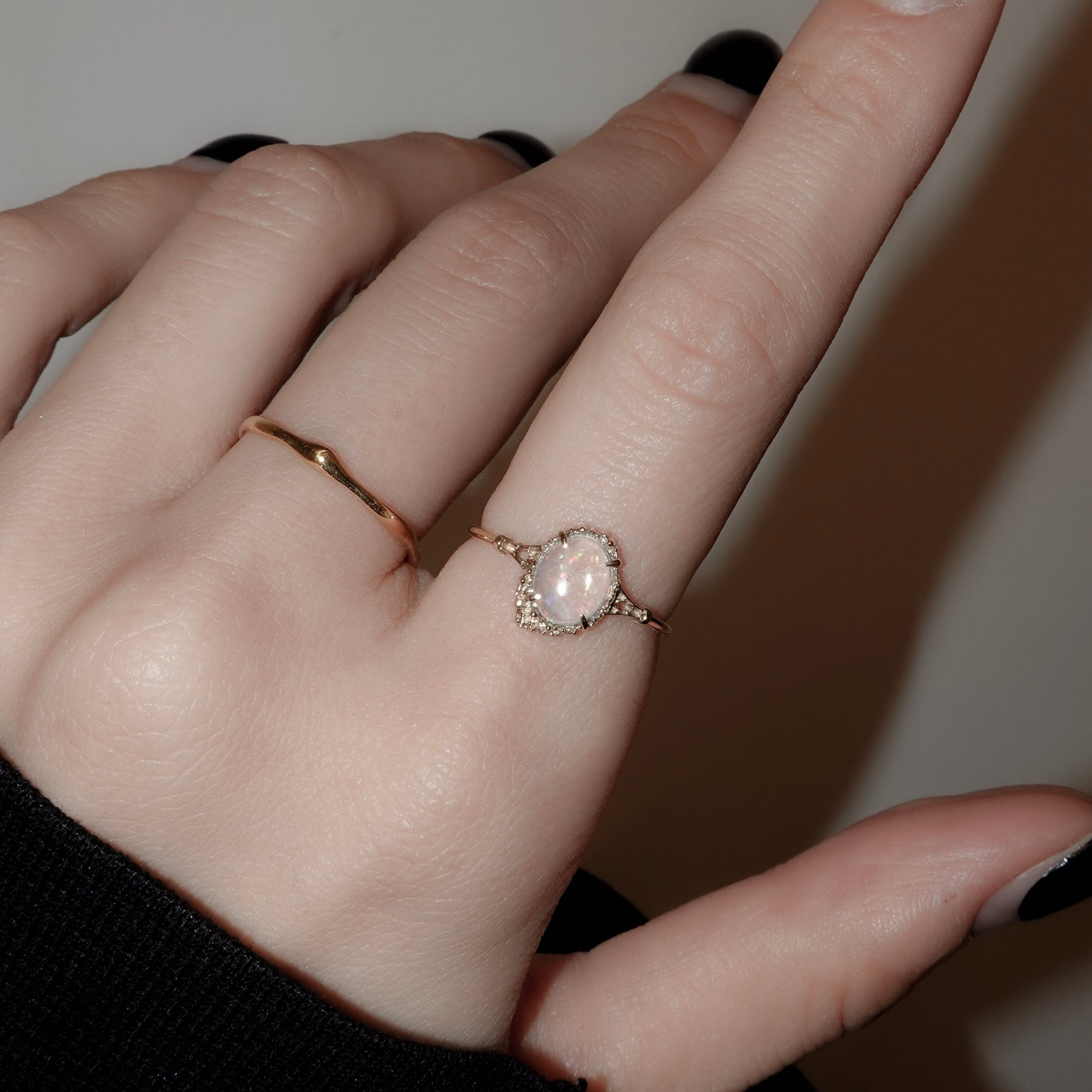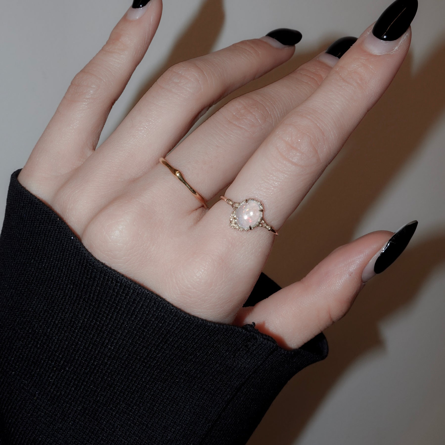 やわらかな乳白色の表情を持つウォーターオパールのリングです。