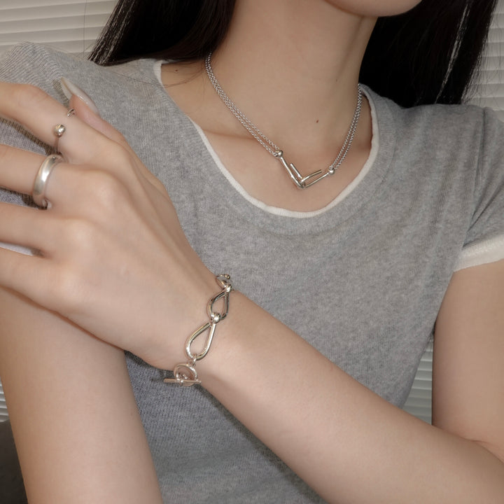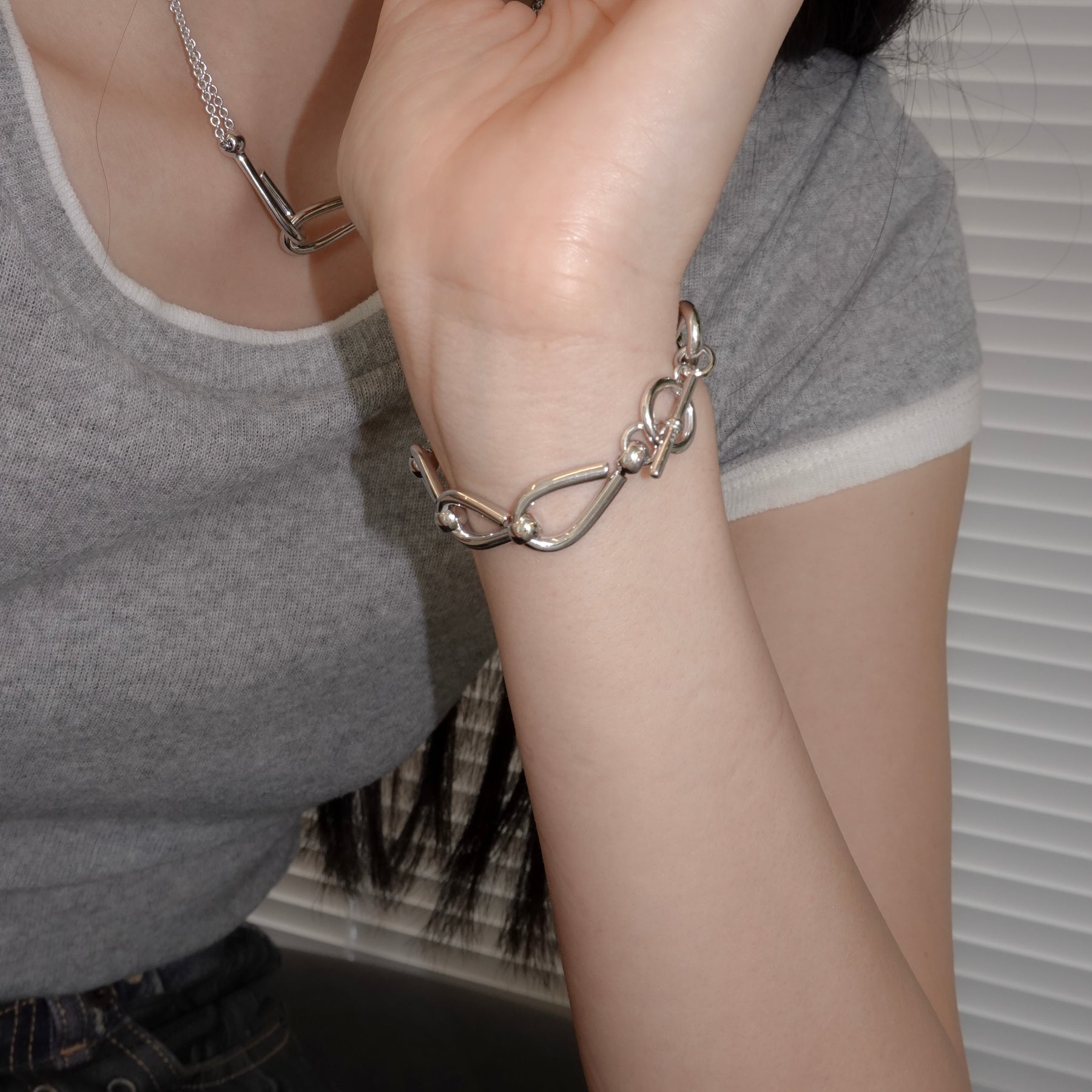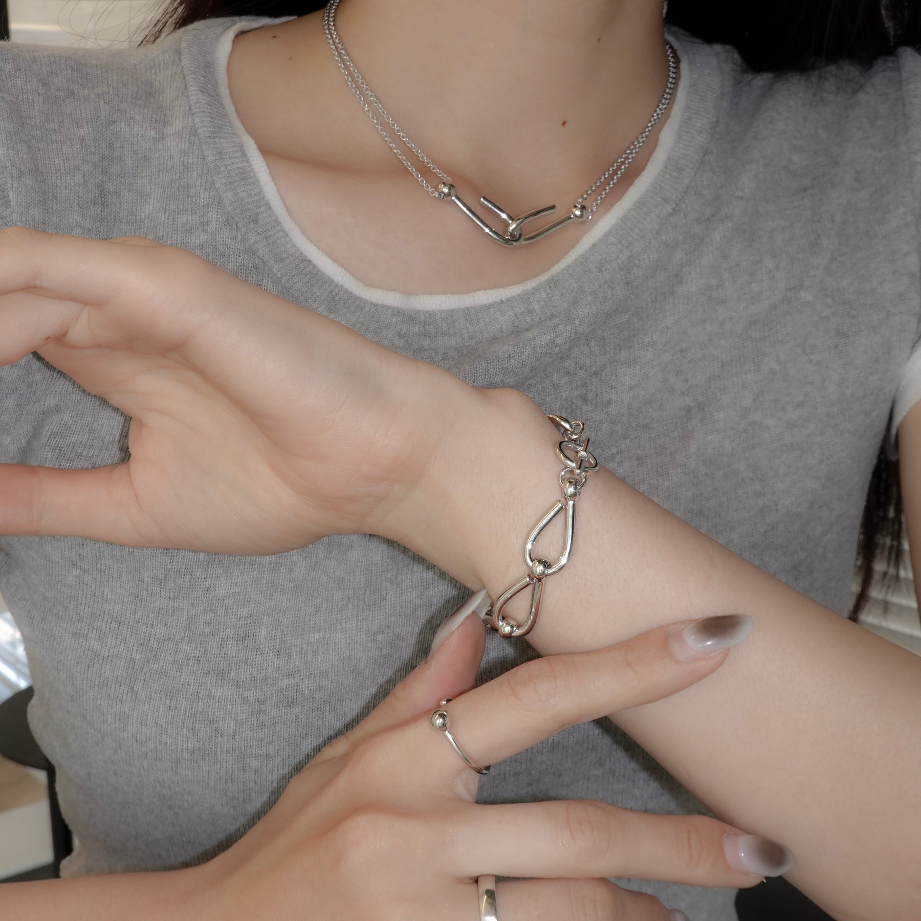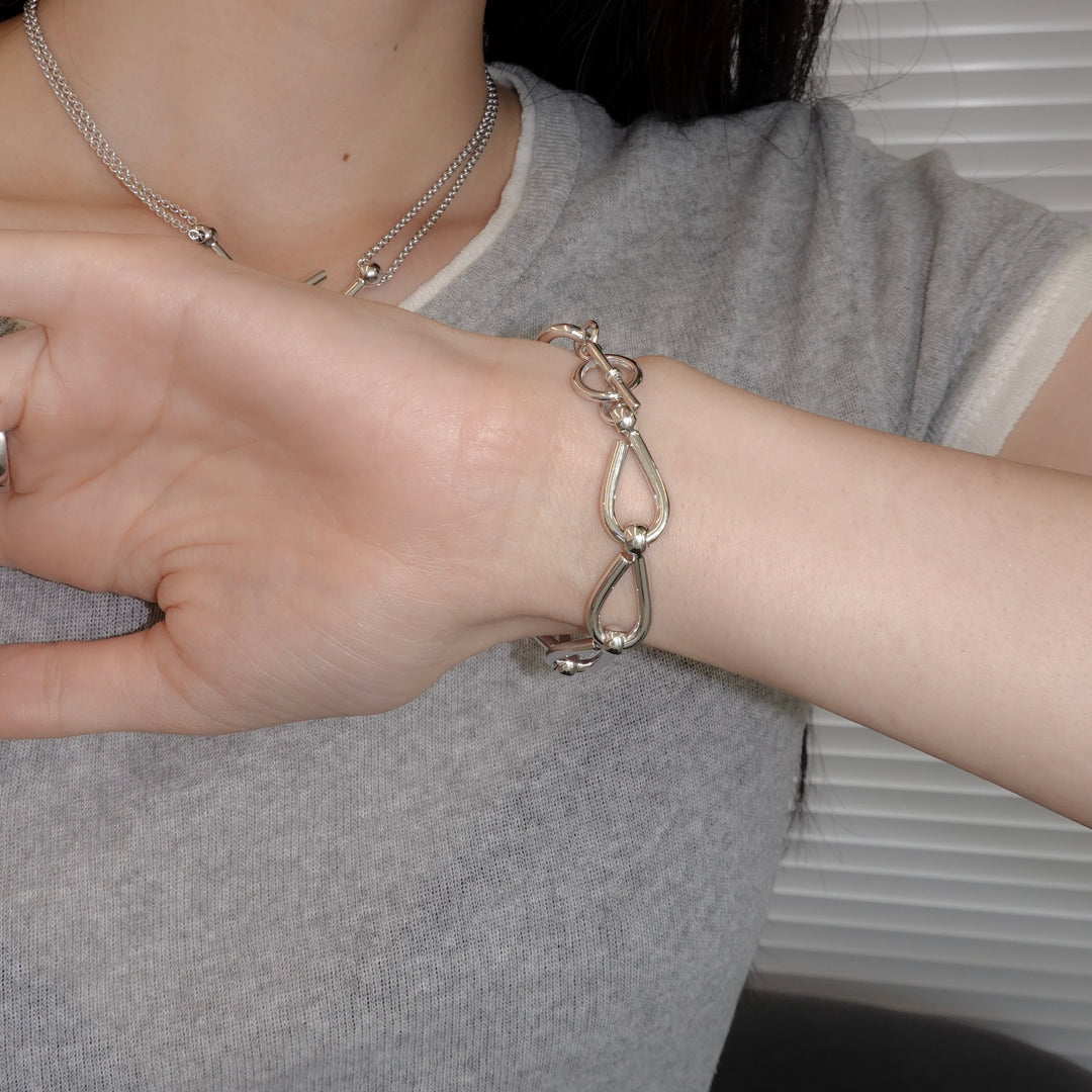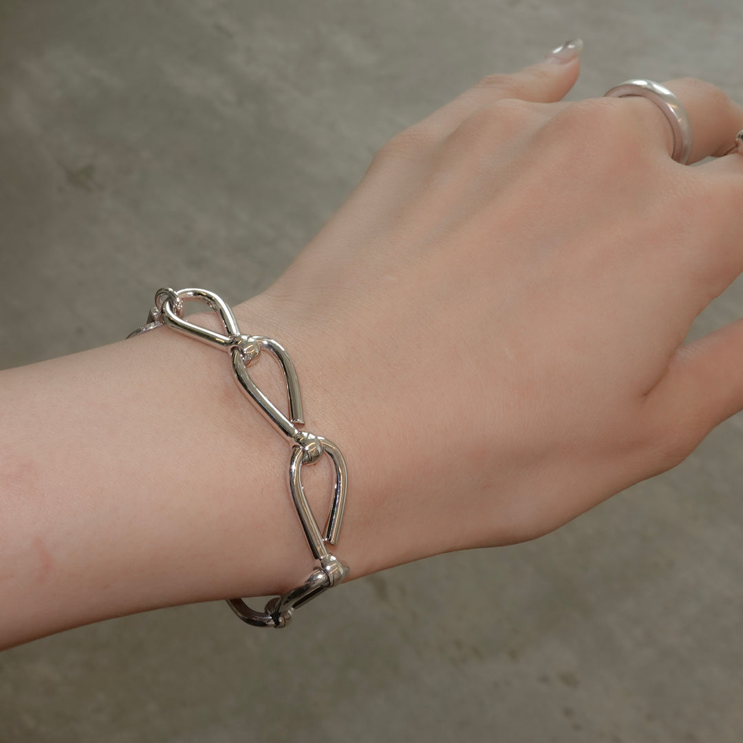 丸みのあるパーツが柔らかな印象のブレスレット。2サイズよりお選びいただけます。