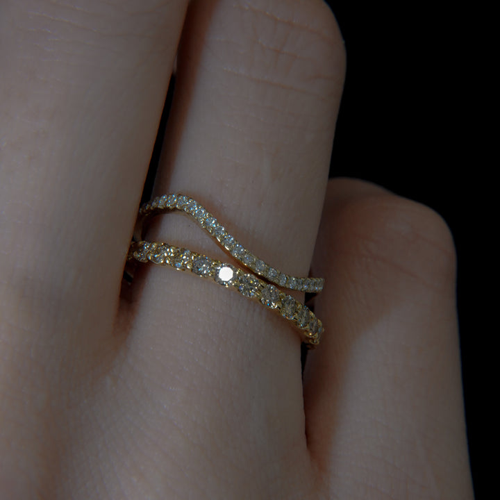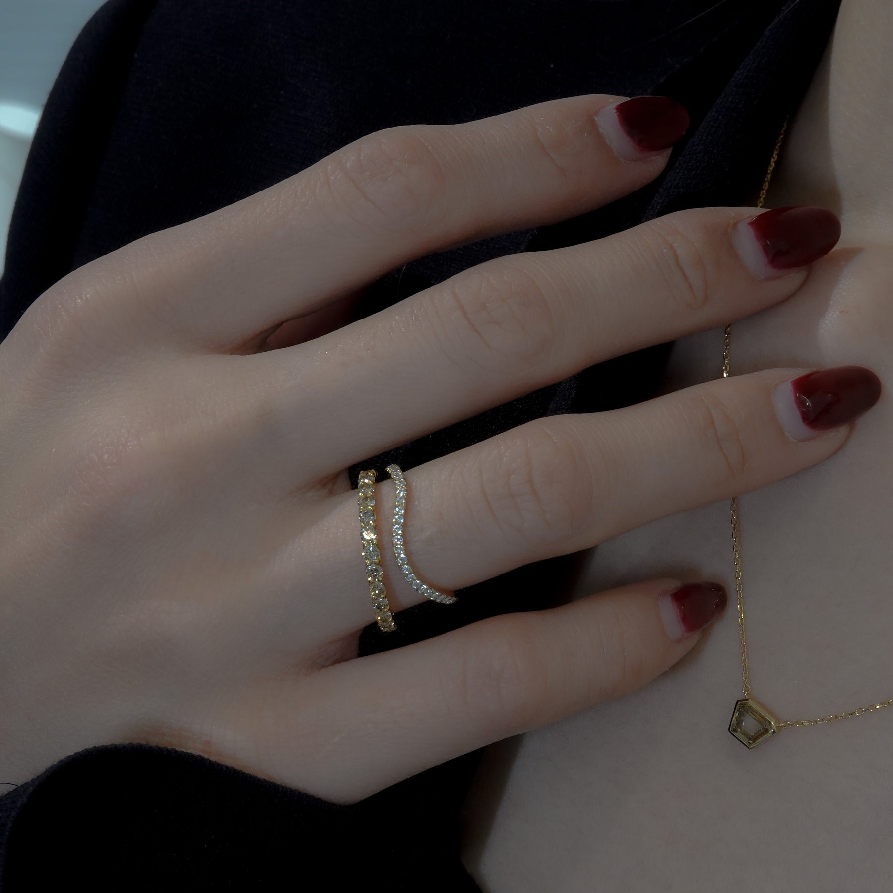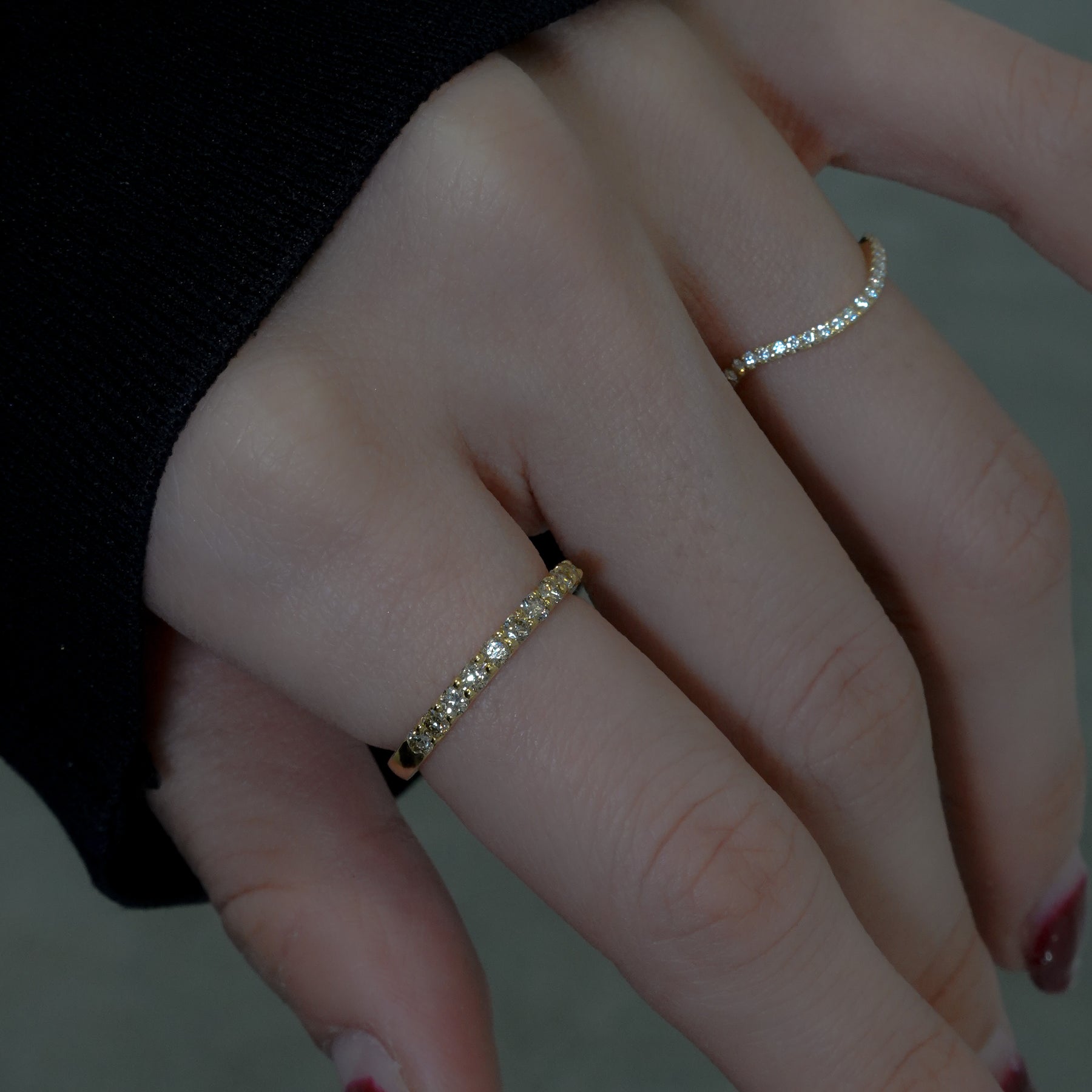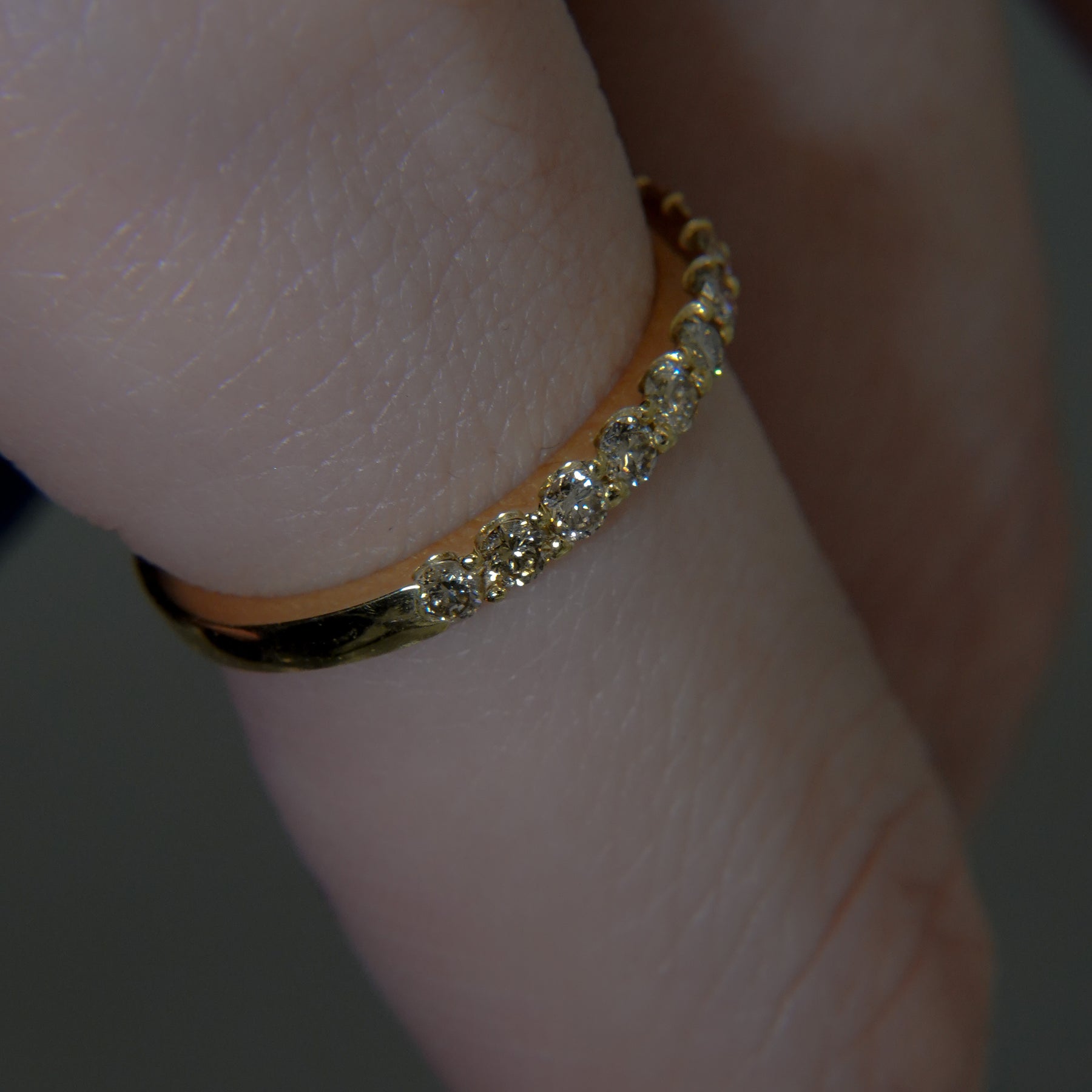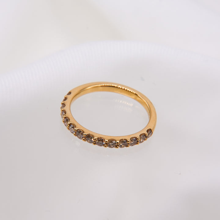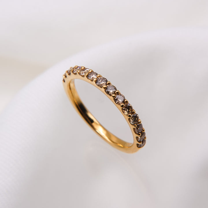 ブラウンダイヤを使用した落ち着きのあるエタニティリング。たっぷりと地金を使用し、付け心地にもこだわった一本。