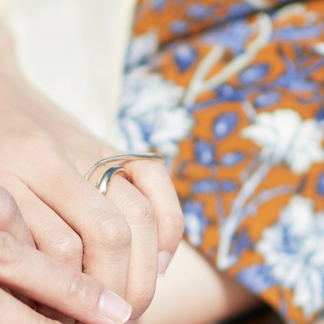 まるでゴールドの光を纏うような伸びやかなラインのリング。