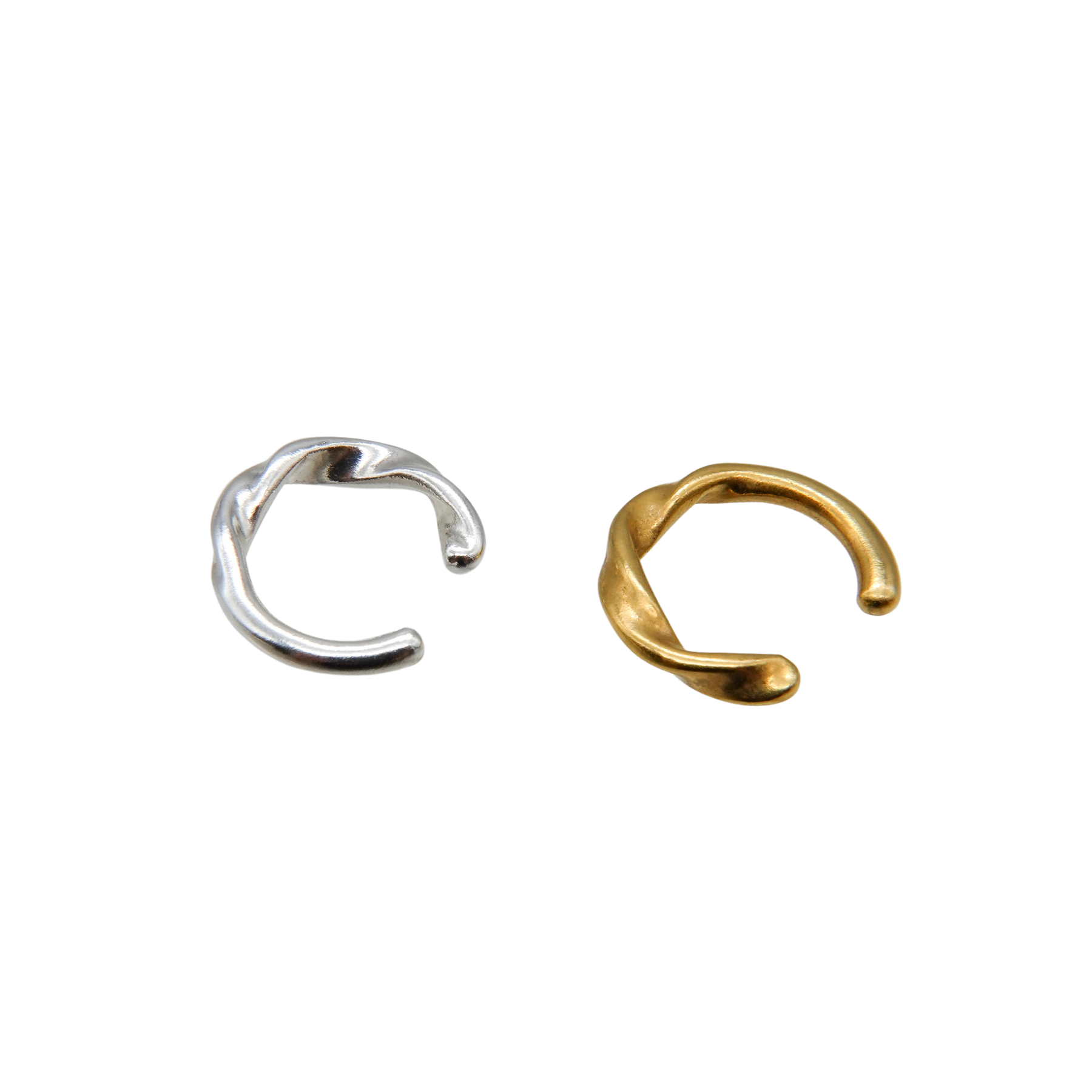 ツイストがワンポイントになった、ユニセックスで着用できるシンプルなイヤカフ。
