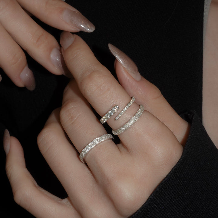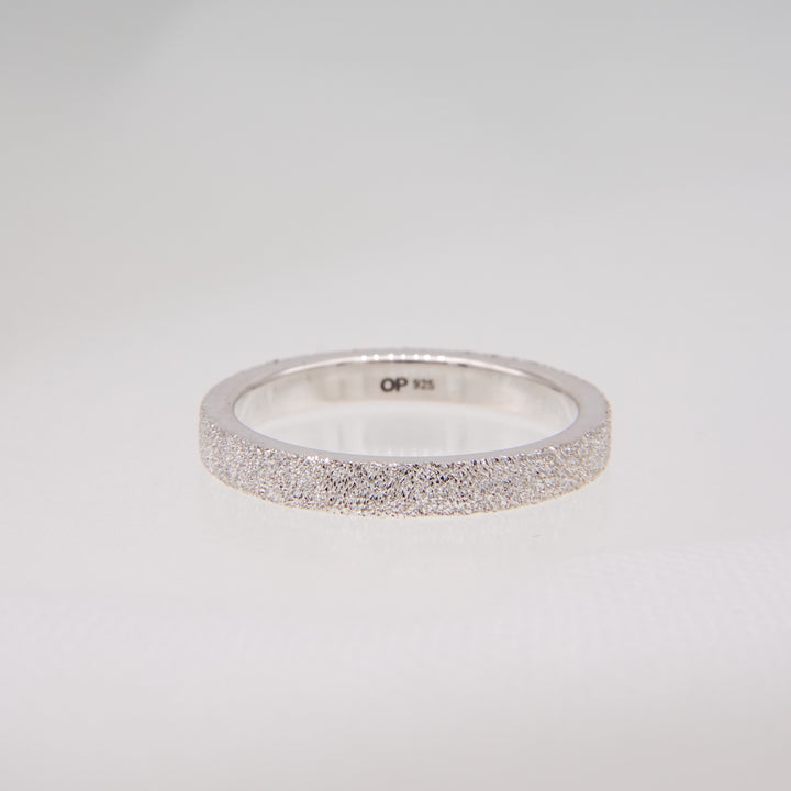 幅2.6mmと細身なアームながら、グラニートによる輝きにより存在感があり、1本でも重ねづけでも重宝するリングです。平打ちタイプでシャープな印象です。