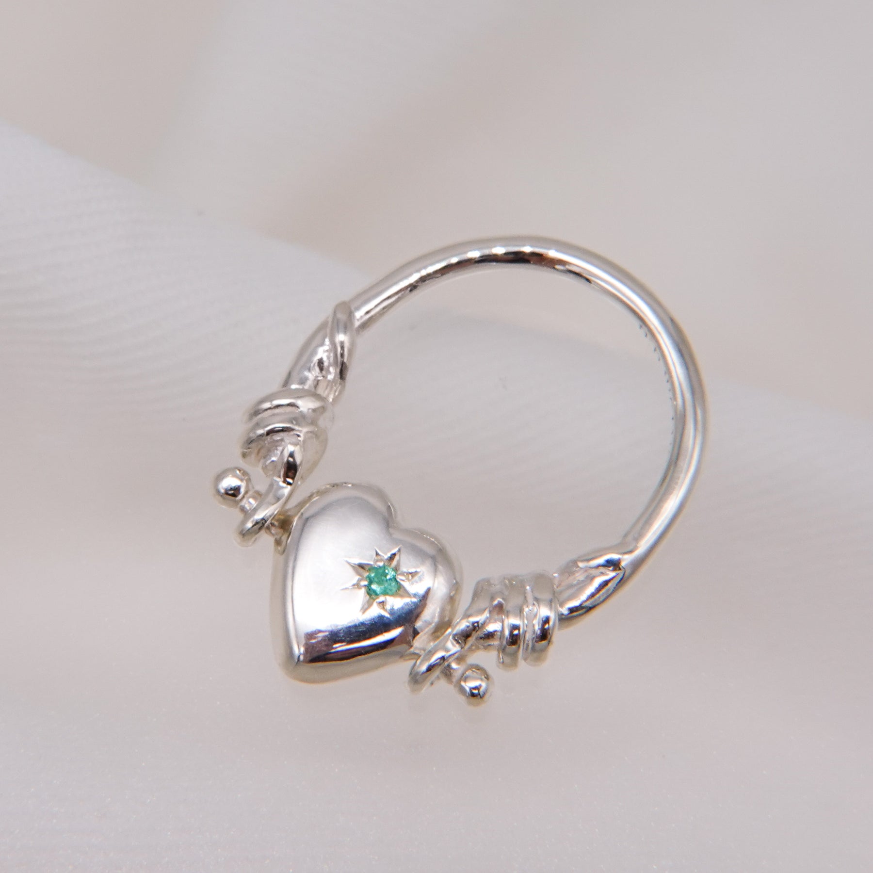 指先でくるっと回転させることで、2wayで楽しめるハートリング。 ハワイアン彫りの熟練職人が、一つひとつ手作業で丁寧に彫り上げた、繊細なハンドエングレービングの面と、厳選した天然石を「後光留め」と呼ばれる星型の石留め技法でセットした面、お好きな向きでご着用ください。