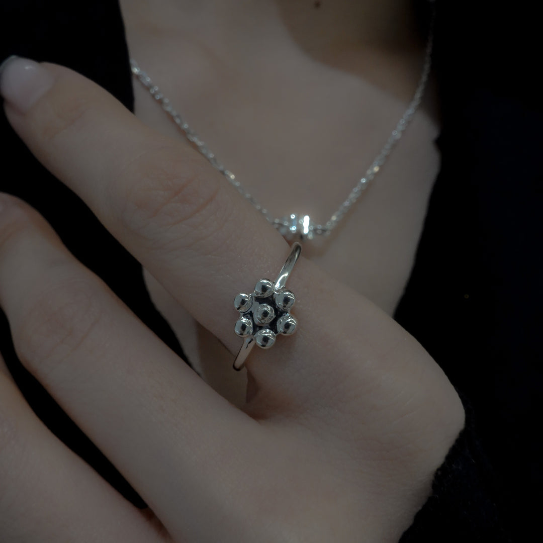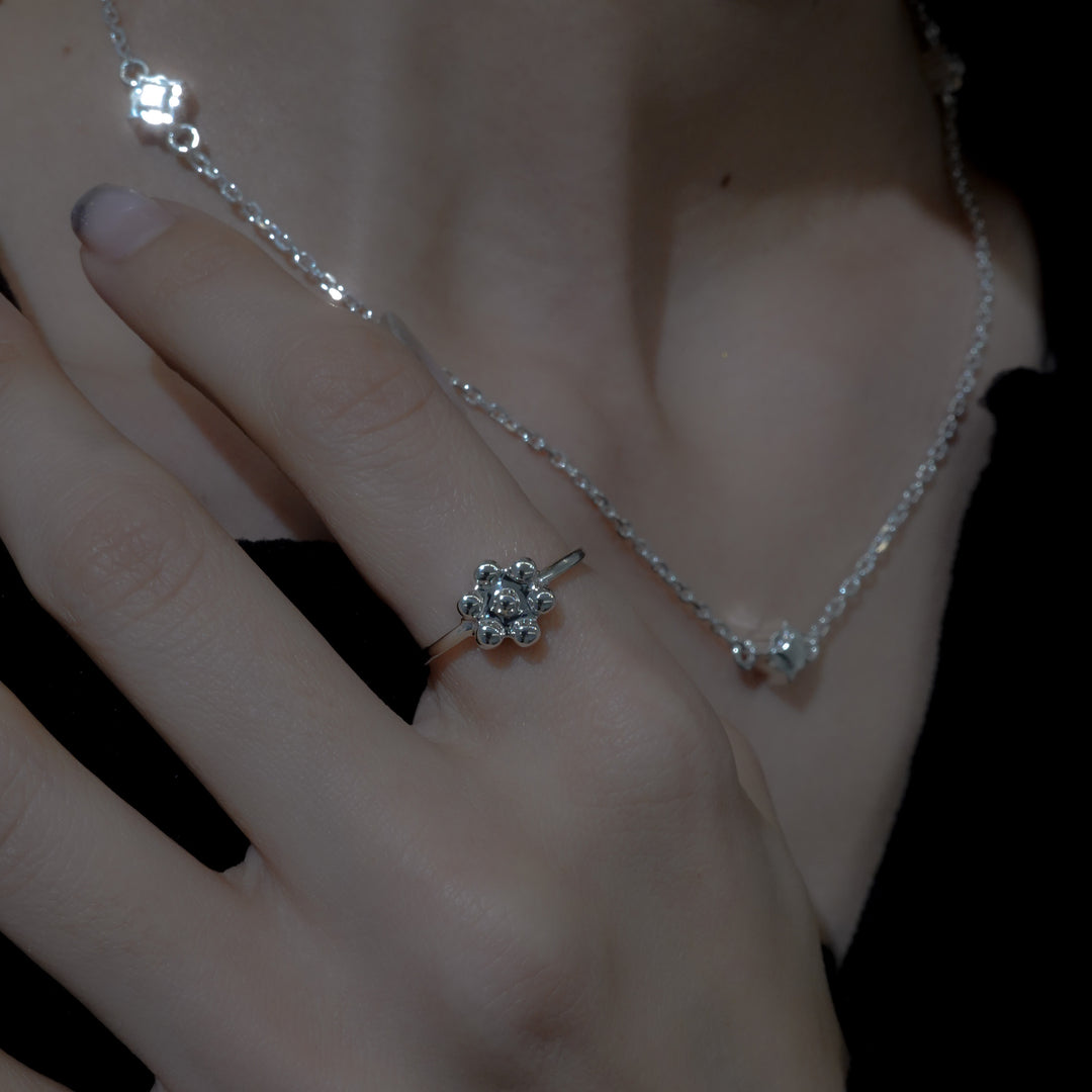 梅の花をモチーフにした、"エレガンス"をモダンなデザインに落とし込んだリング。