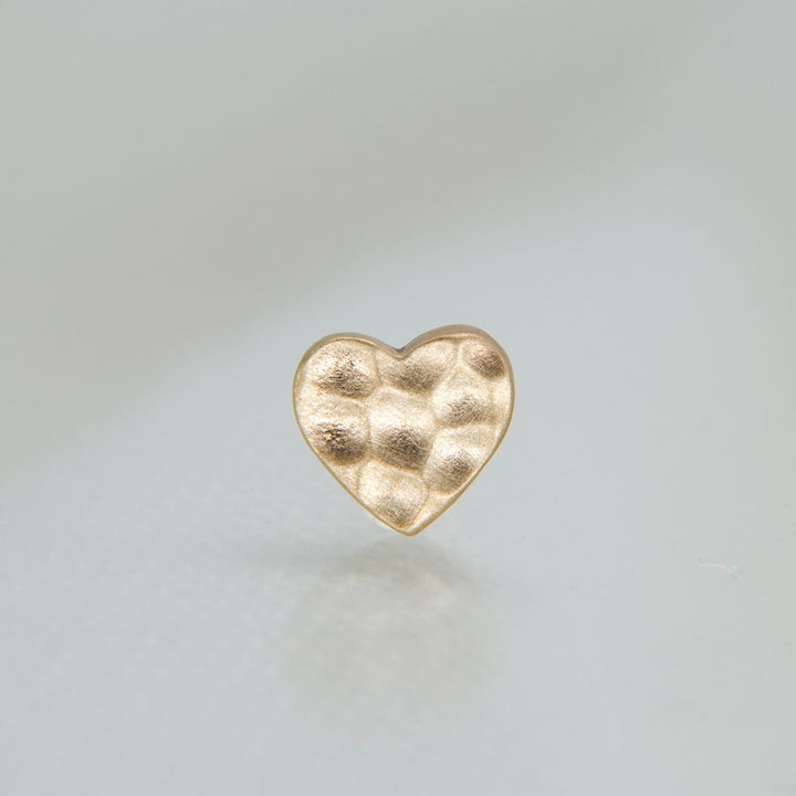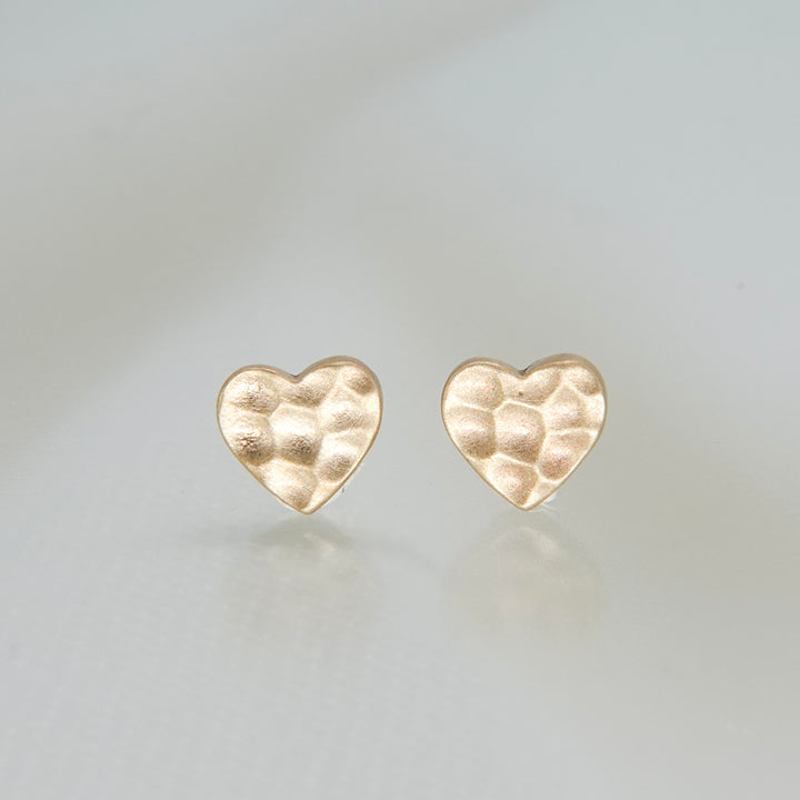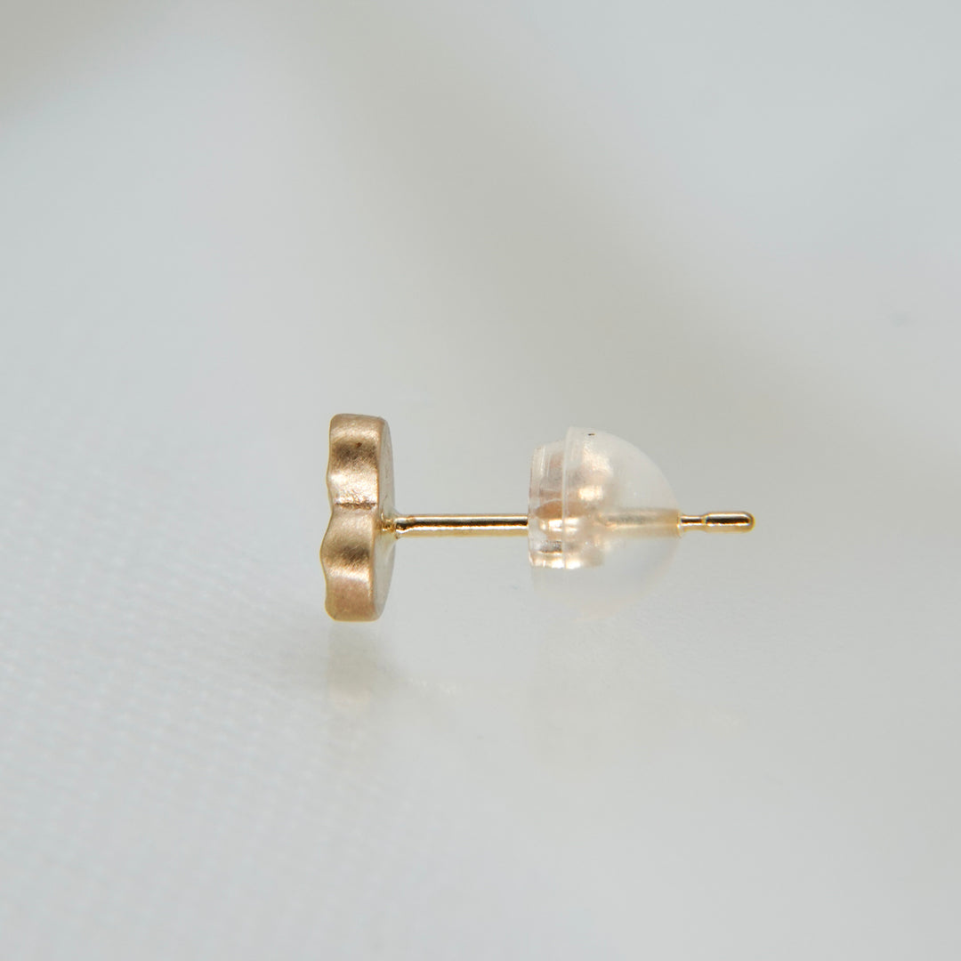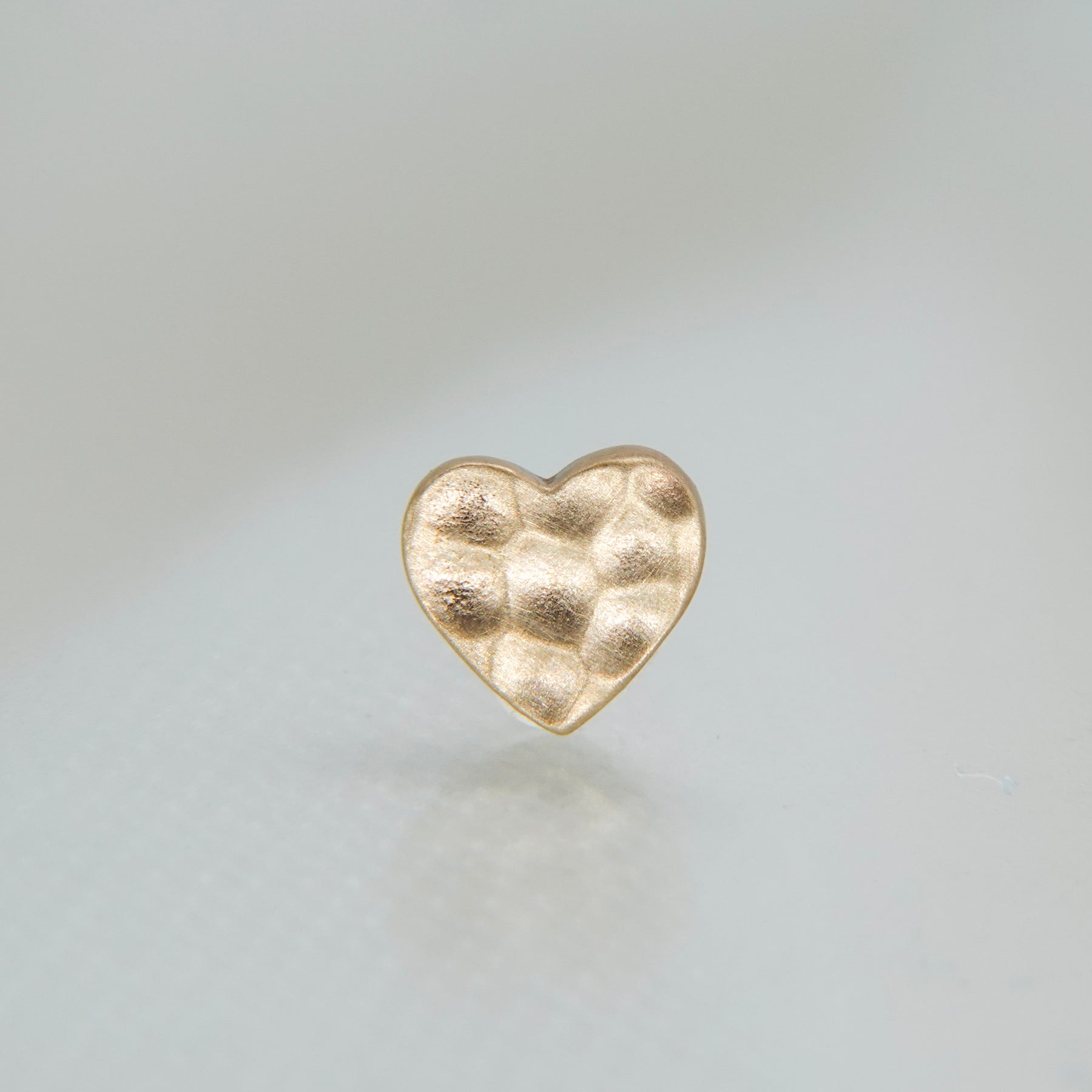 ハートモチーフのピアス。槌目模様をつけたつや消し仕上げで甘すぎないテイスト。