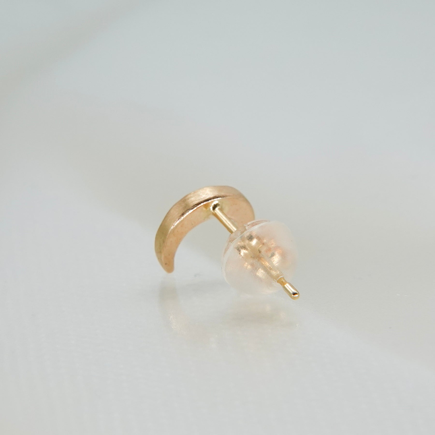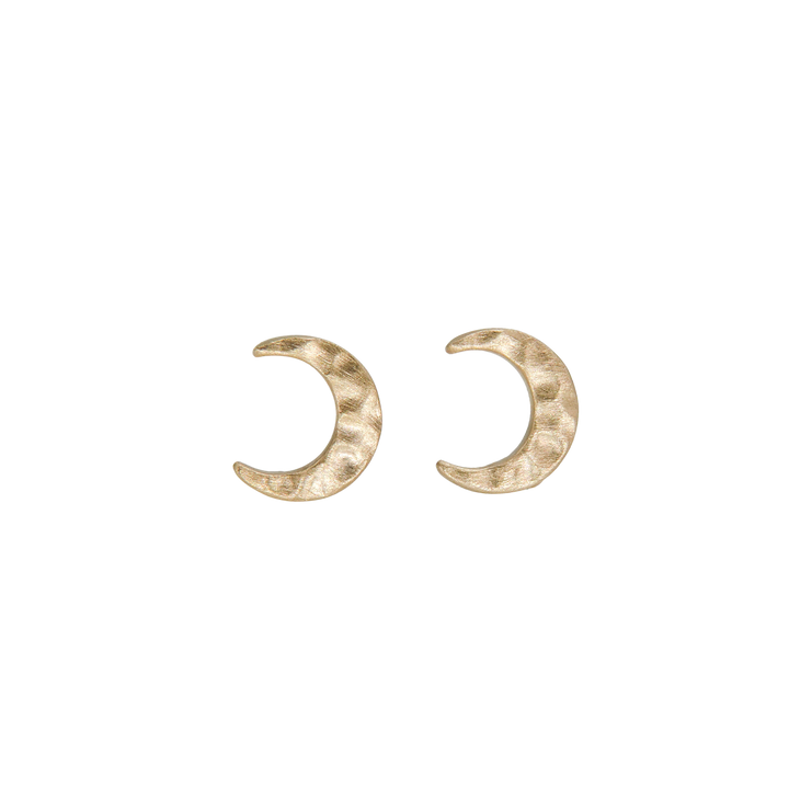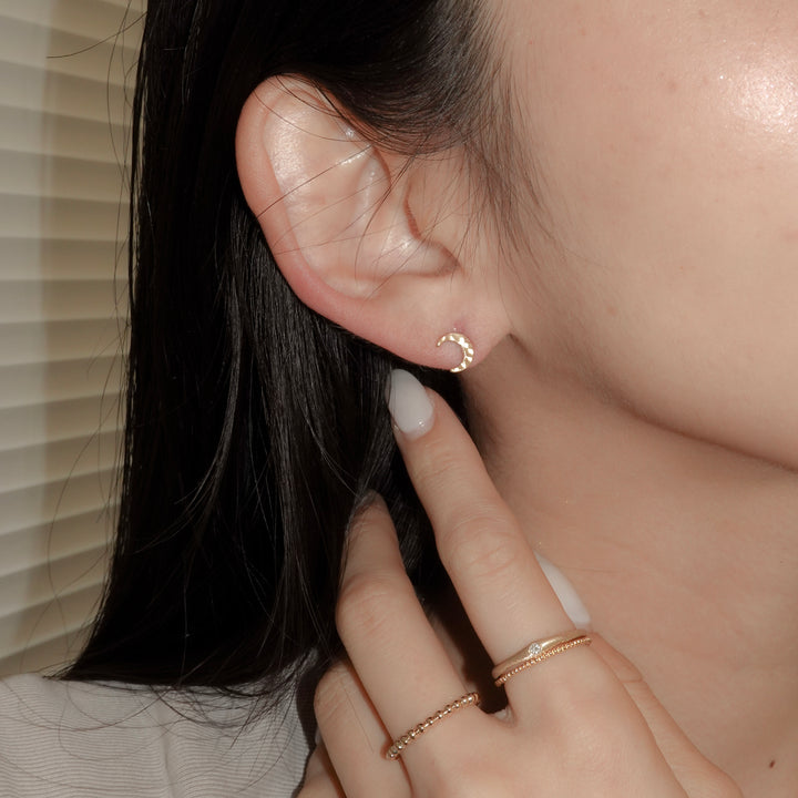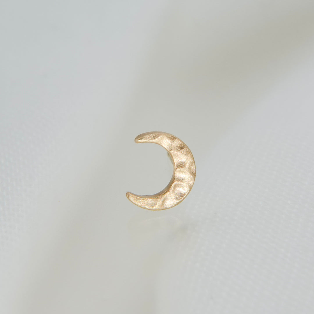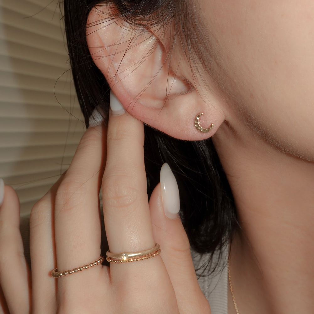 三日月モチーフのピアス。槌目模様をつけた、つや消し仕上げで甘すぎないテイスト。