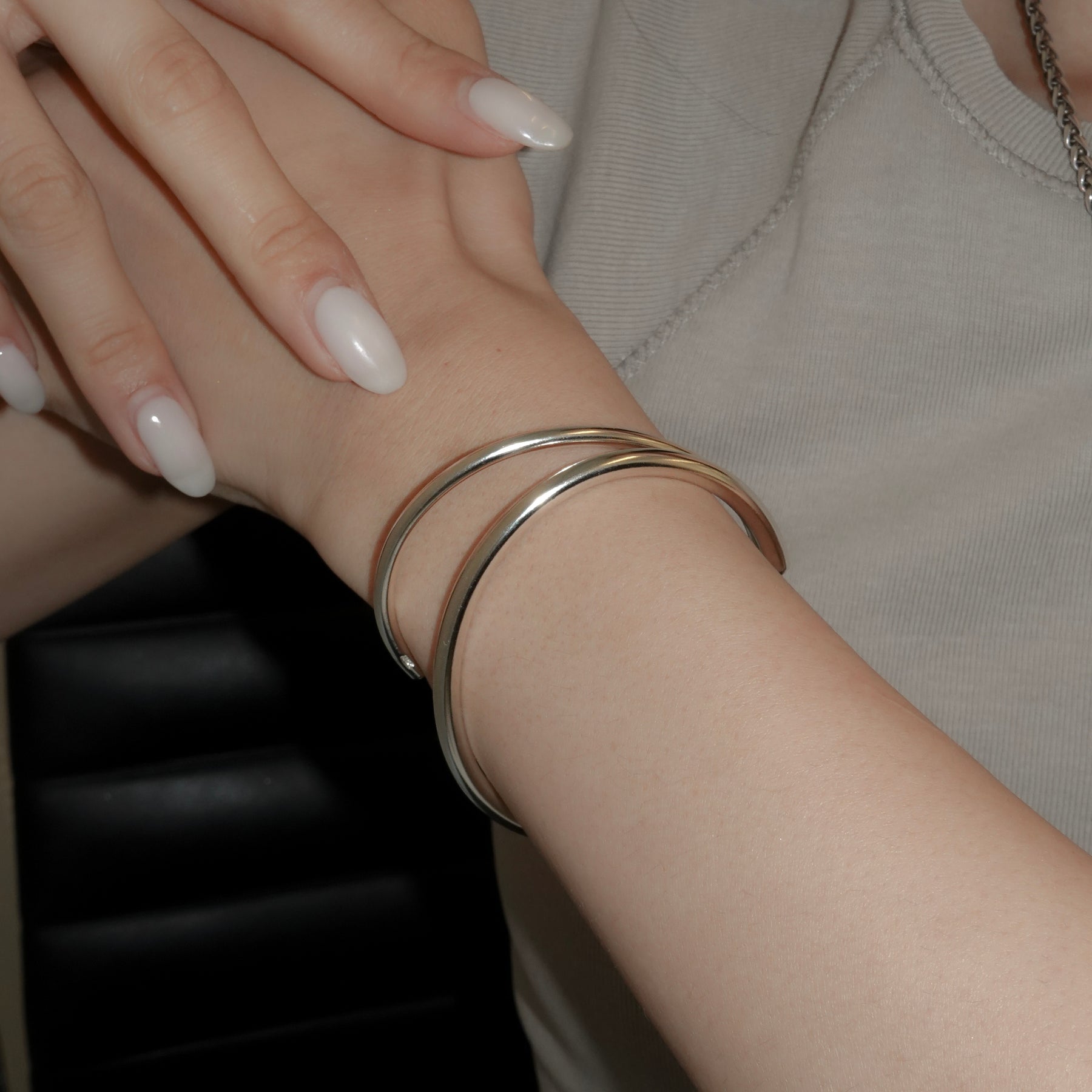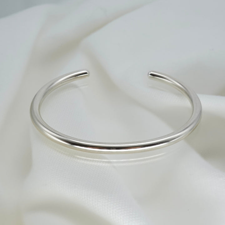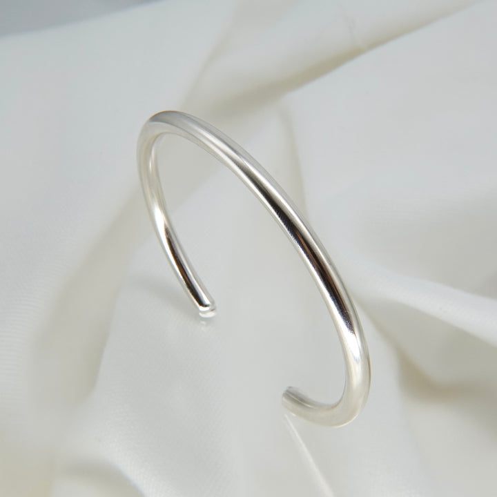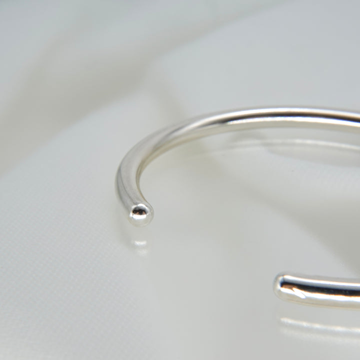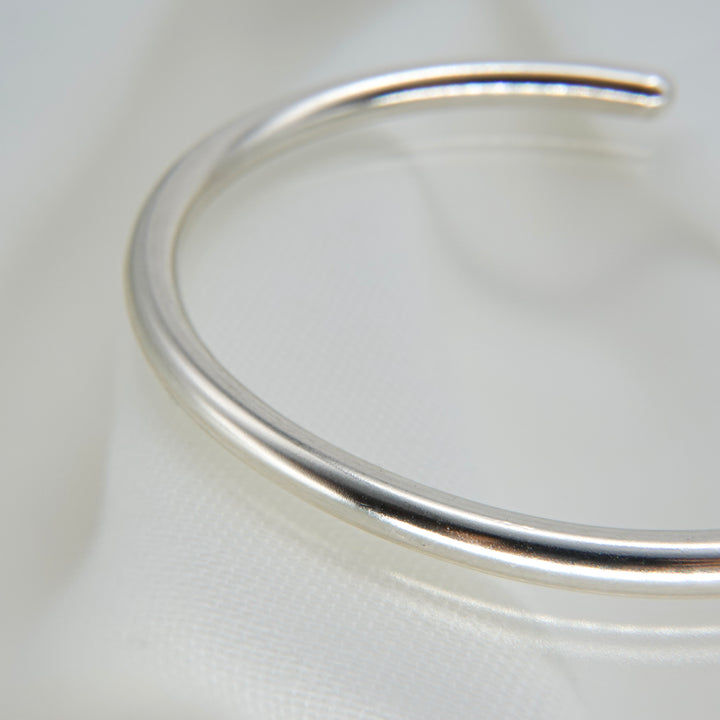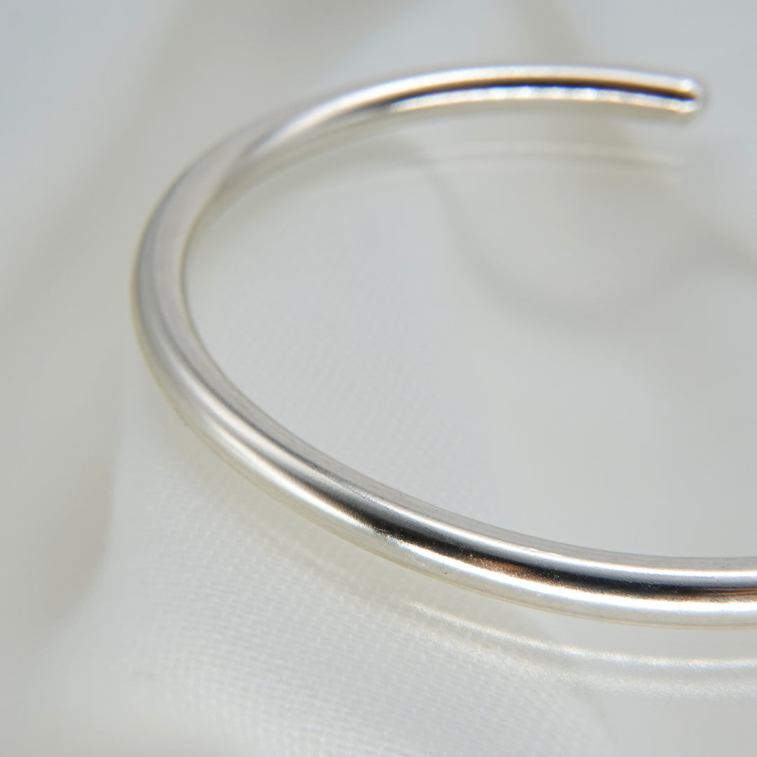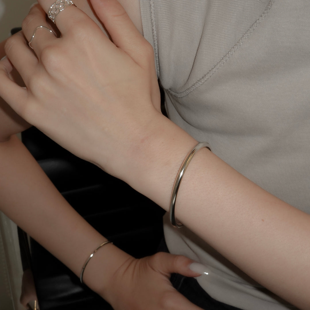 究極にシンプルな、4mmの丸線を曲げて作ったバングル。使い込むことで少しずつマットな質感になっていく経年変化をお楽しみください。