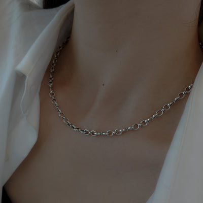 シンプルでいてしっかりと存在感のあるネックレス。1本でも重ね付けでもマルチに活躍する1本です。留める位置を変えて自由にスタイリングできます。