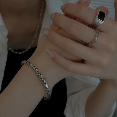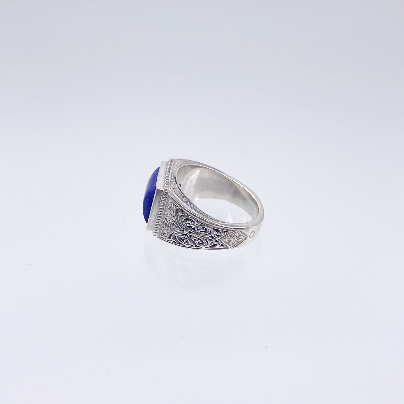 美しい透かし模様と印象的なストーンが見事にマッチしたシグネットリング。