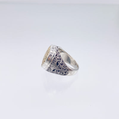 その名の通りMediterranean(地中海)を思わせるような美しい透かし模様。SV925とリングトップに18Kを組み合わせた、存在感のあるシグネットリング。