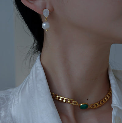 マーブル模様のチャームとティアドロップ型のストーンのコンビネーションがポップなピアス。